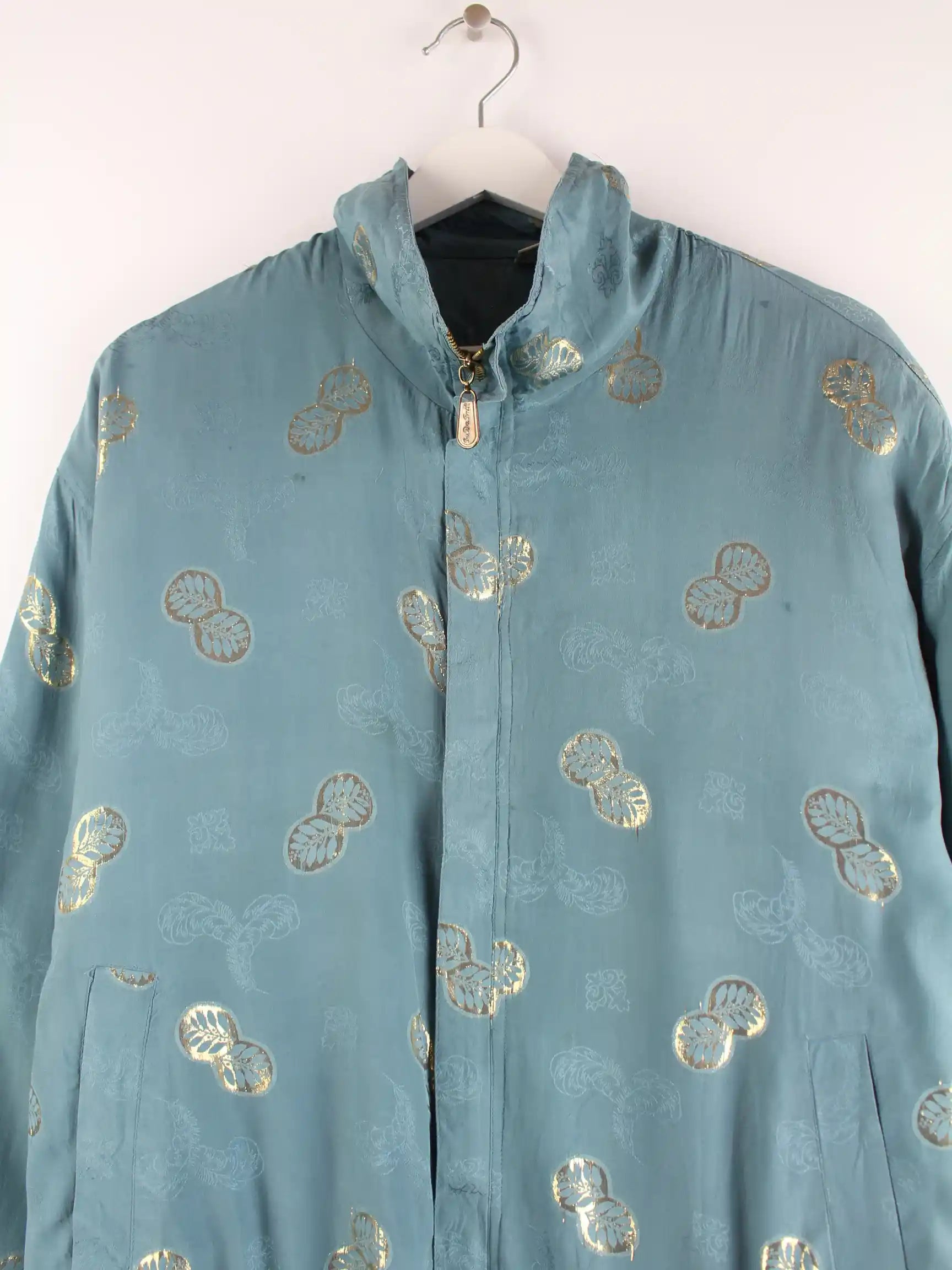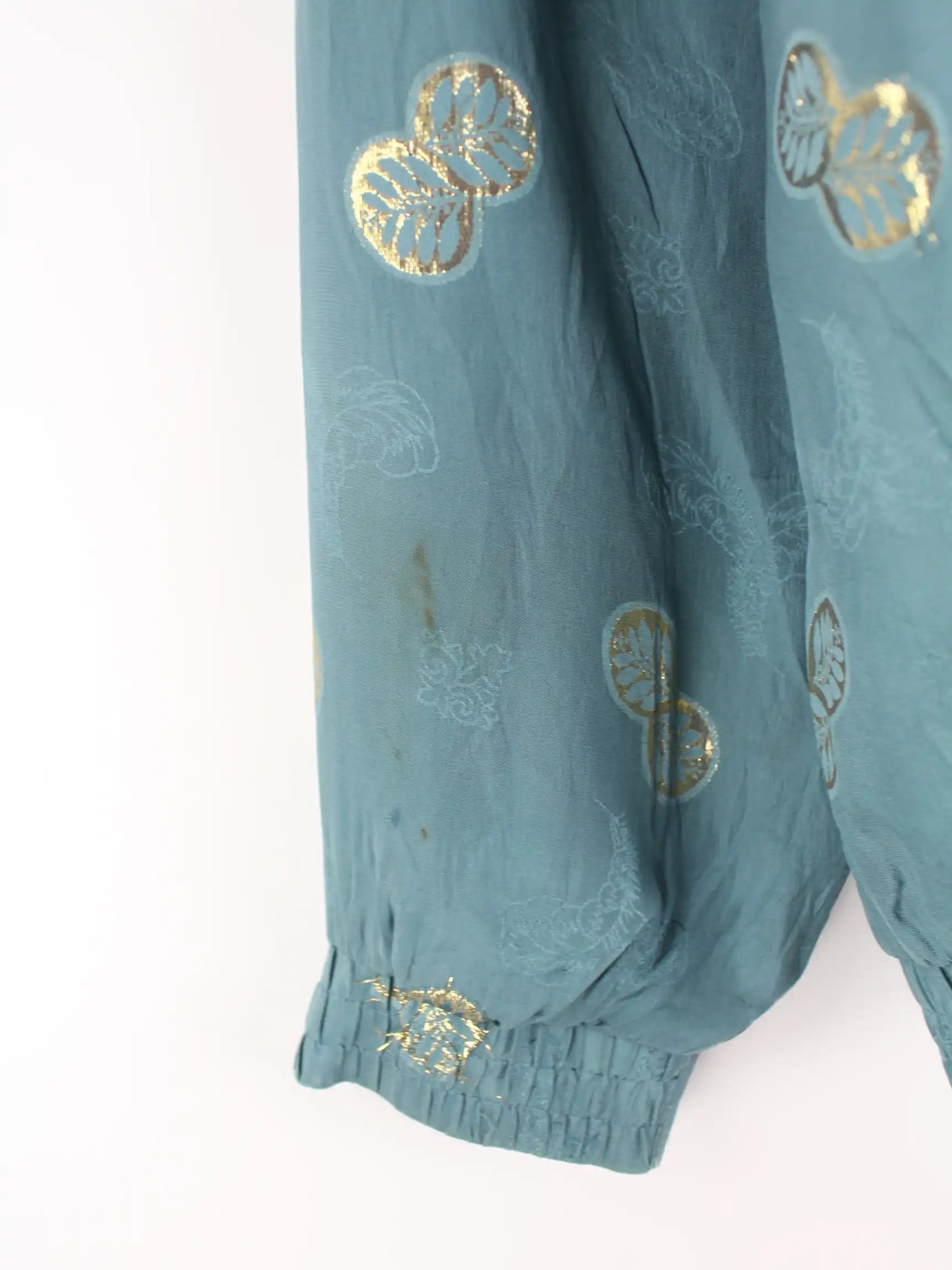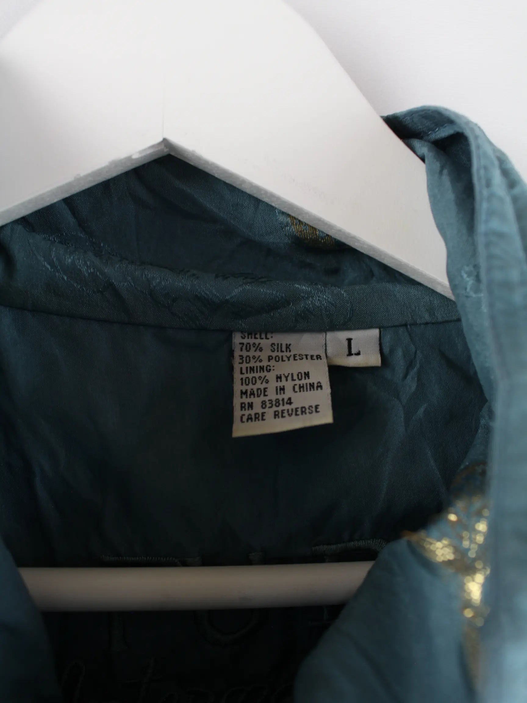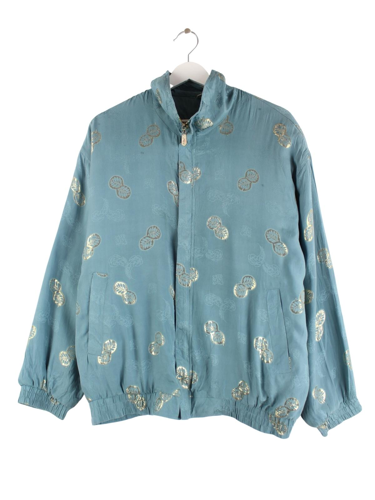 Vintage Damen 90s Crazy Pattern Seiden Trainingsjacke Grün L