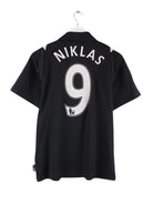 Schwarzes Trikot vom Brand Adidas in Größe S. Es ist aus Synthetik angefertigt und in gutem Zustand bei uns zu bekommen.