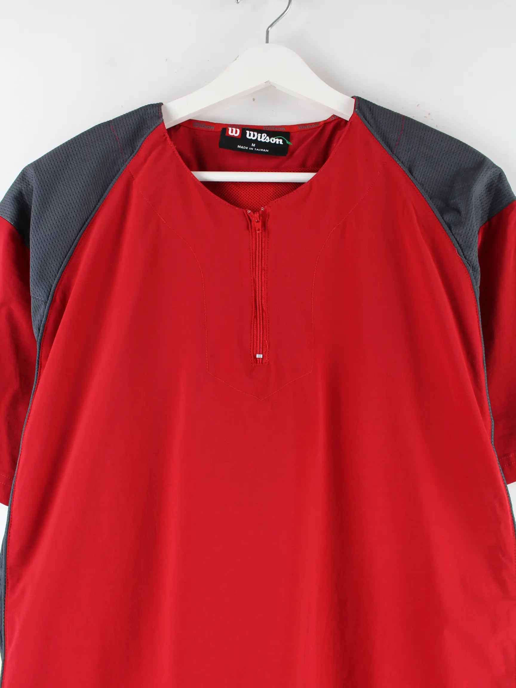 Trikot vom Label Wilson mit halbem Reißverschluß in Größe M. Es ist aus Synthetik und in Rot zu haben.