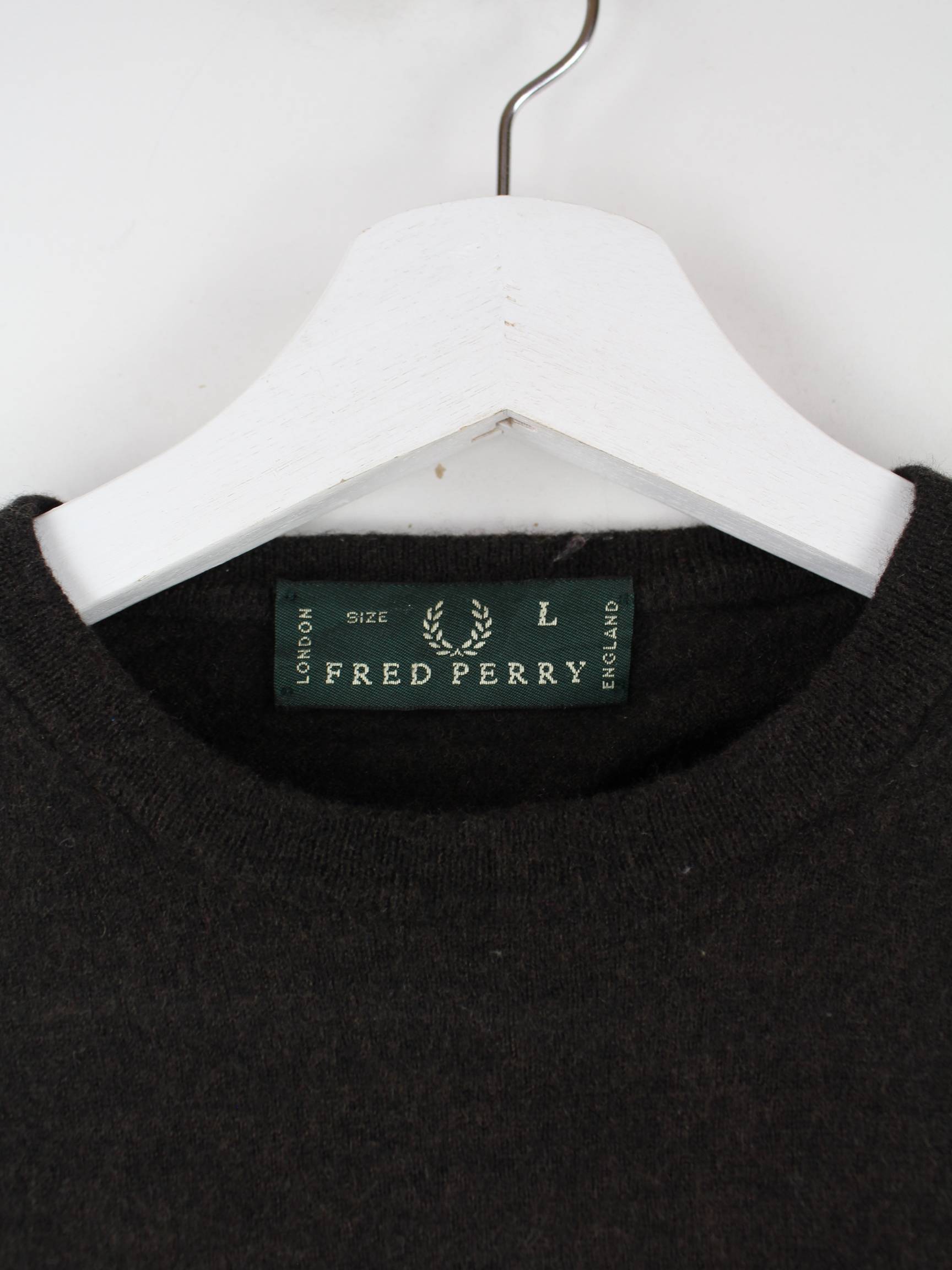 Fred Perry 90s Vintage 100% Wolle Pullover Braun L
