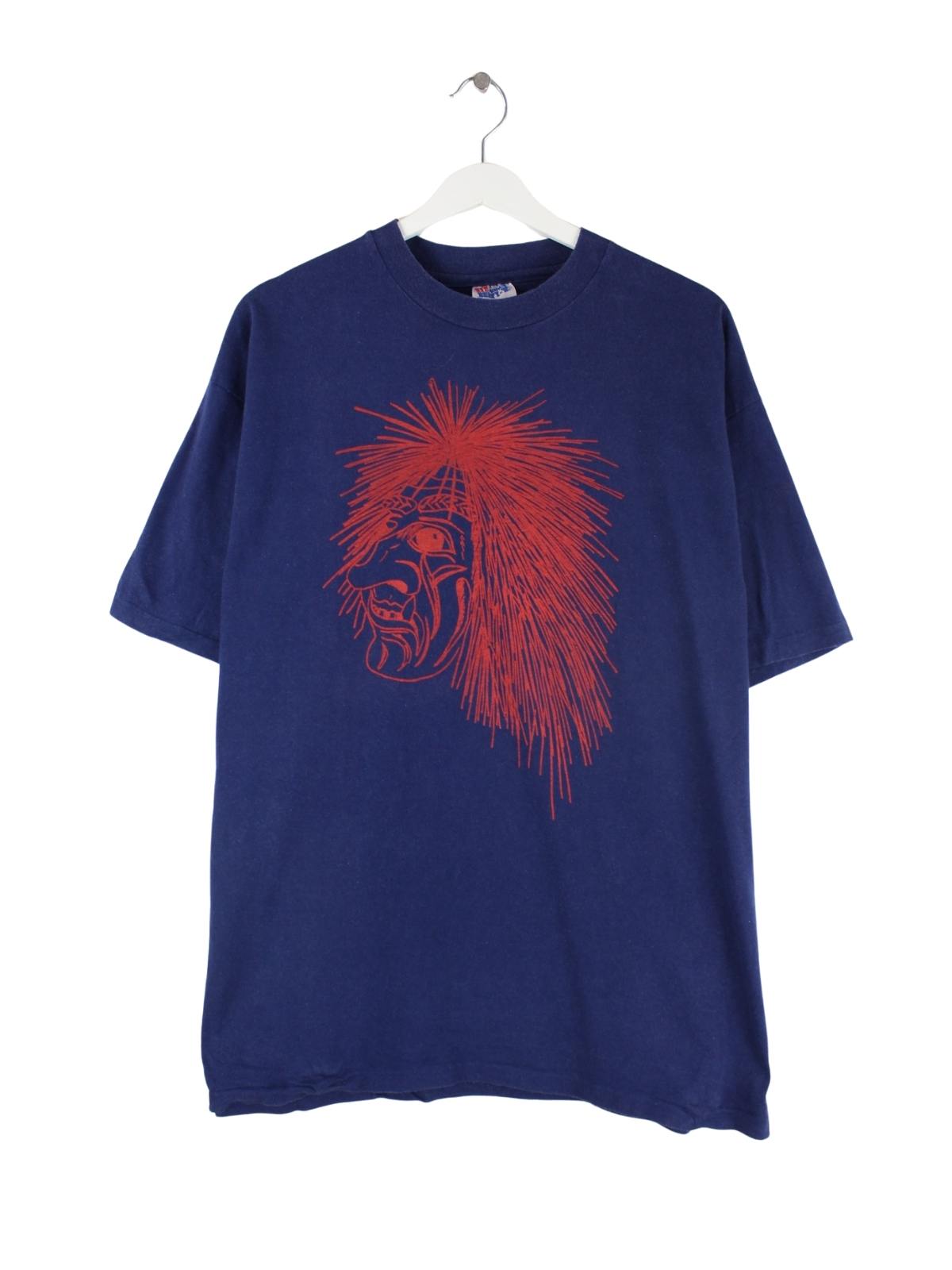 Hanes 90s Vintage Print Single Stitch T-Shirt Blau XL