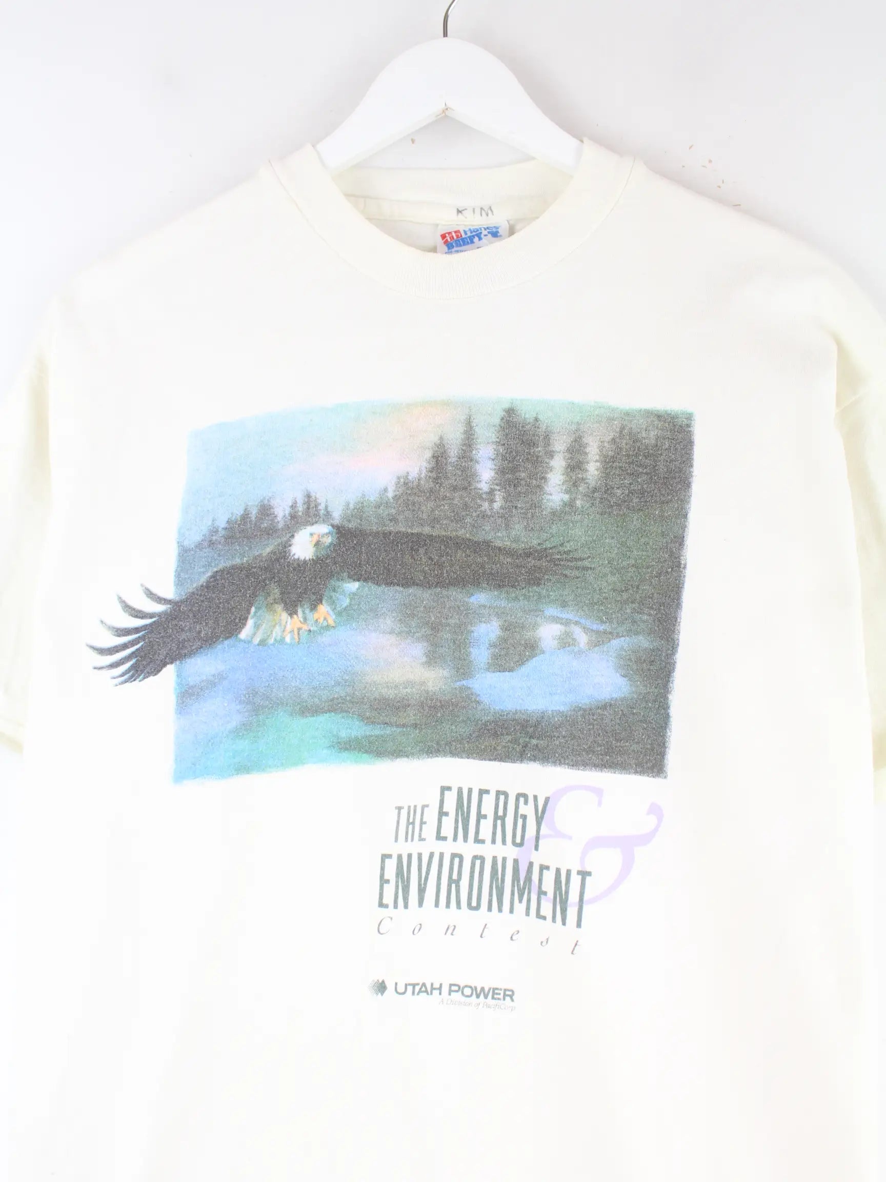 Hanes 90s Vintage Print Single Stitch T-Shirt Weiß L
