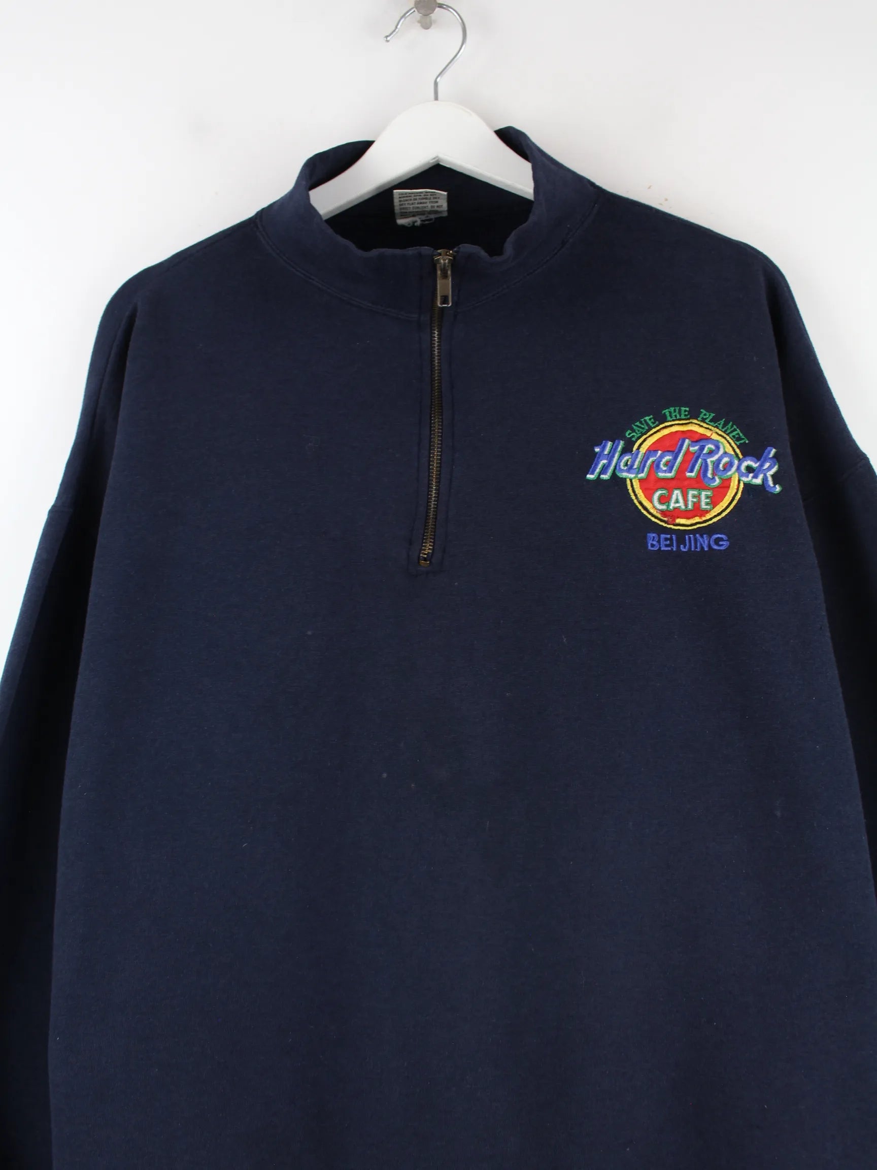 Hard Rock Cafe 90s Vintage Beijing Embroidered Half Zip Sweater Blau L