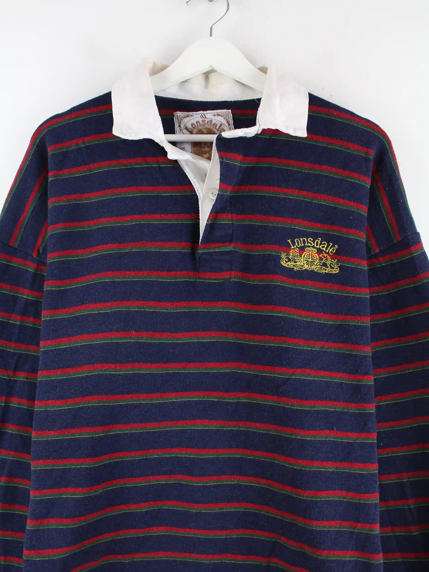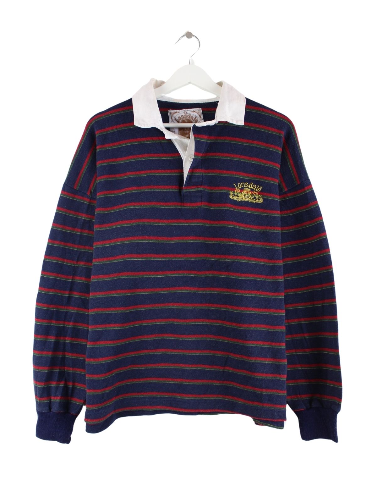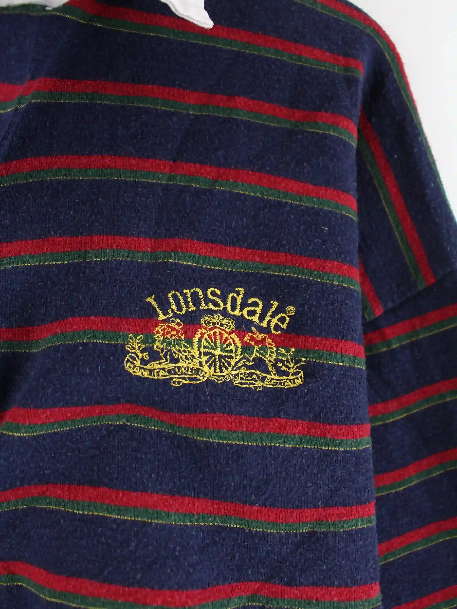 Lonsdale 80s Vintage Striped Langarm Polo Blau XL