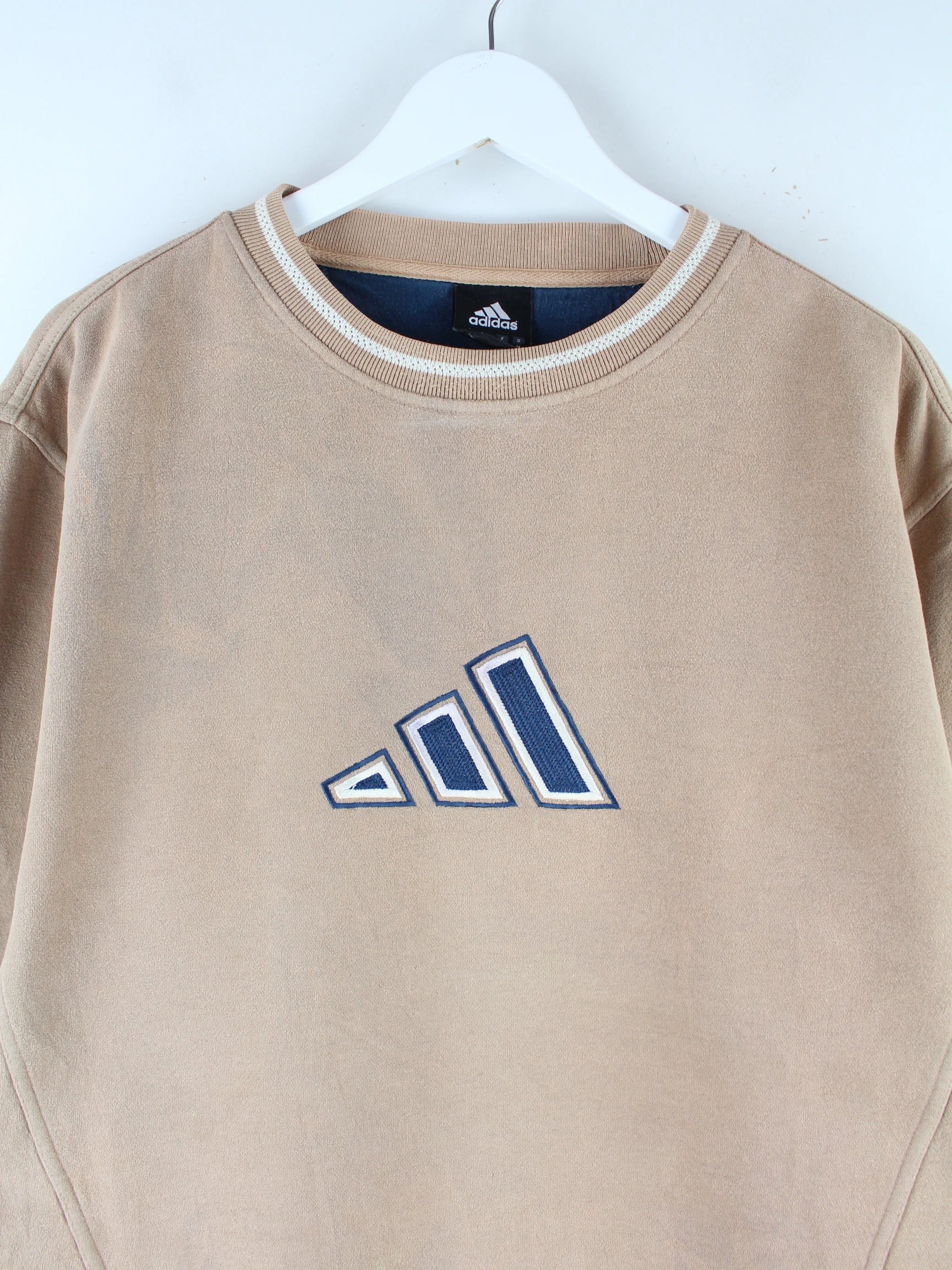 Sweater vom Label Adidas mit gesticktem Logo in Größe M. Er ist aus einer Baumwollmischung hergestellt und in Braun im Angebot.