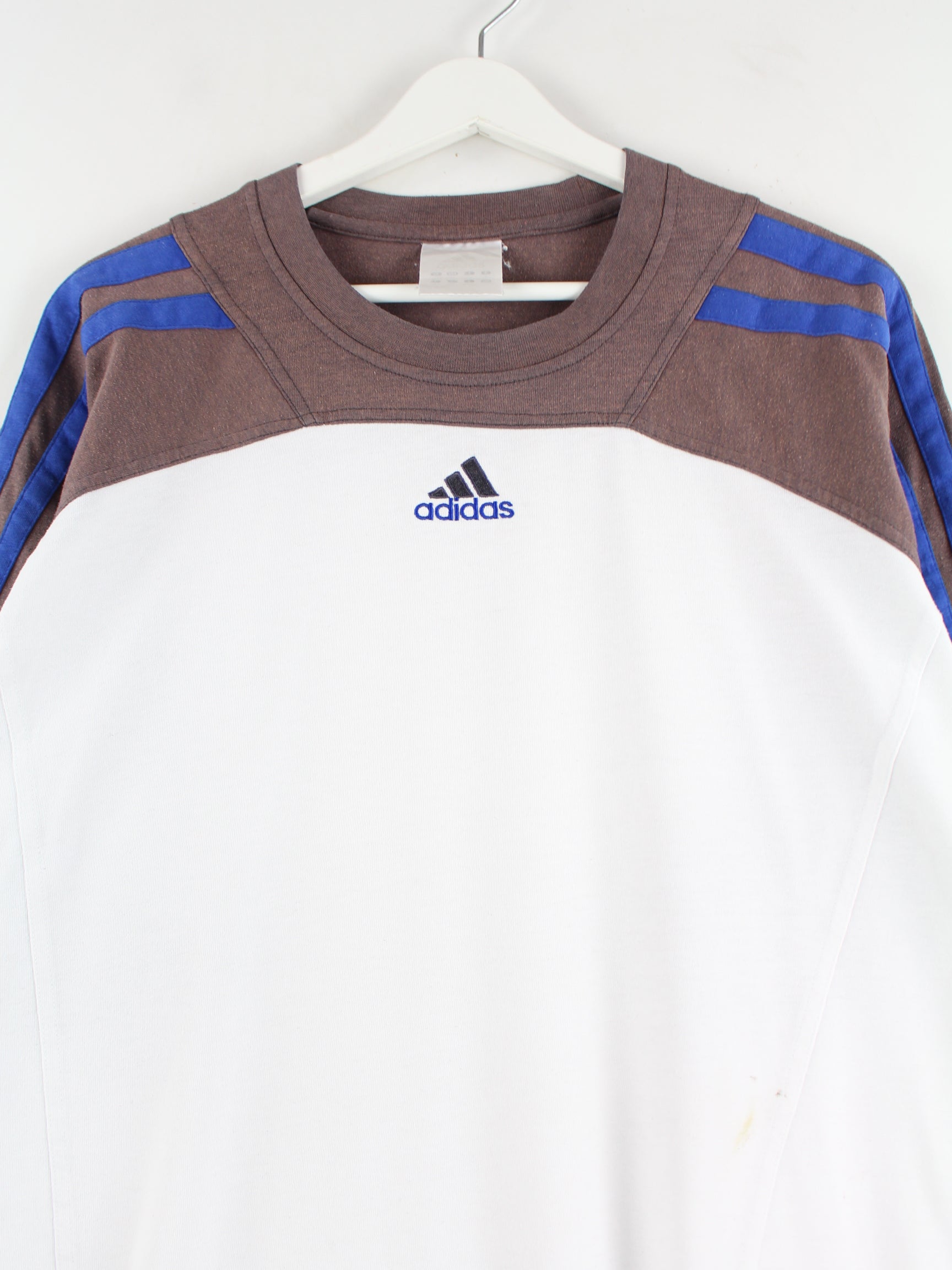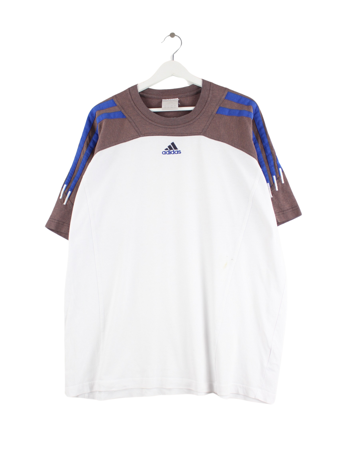 White T-shirt with Adidas embroidery in size XL. It is made from a cotton blend. We would describe the condition as 'fine' (see pictures).