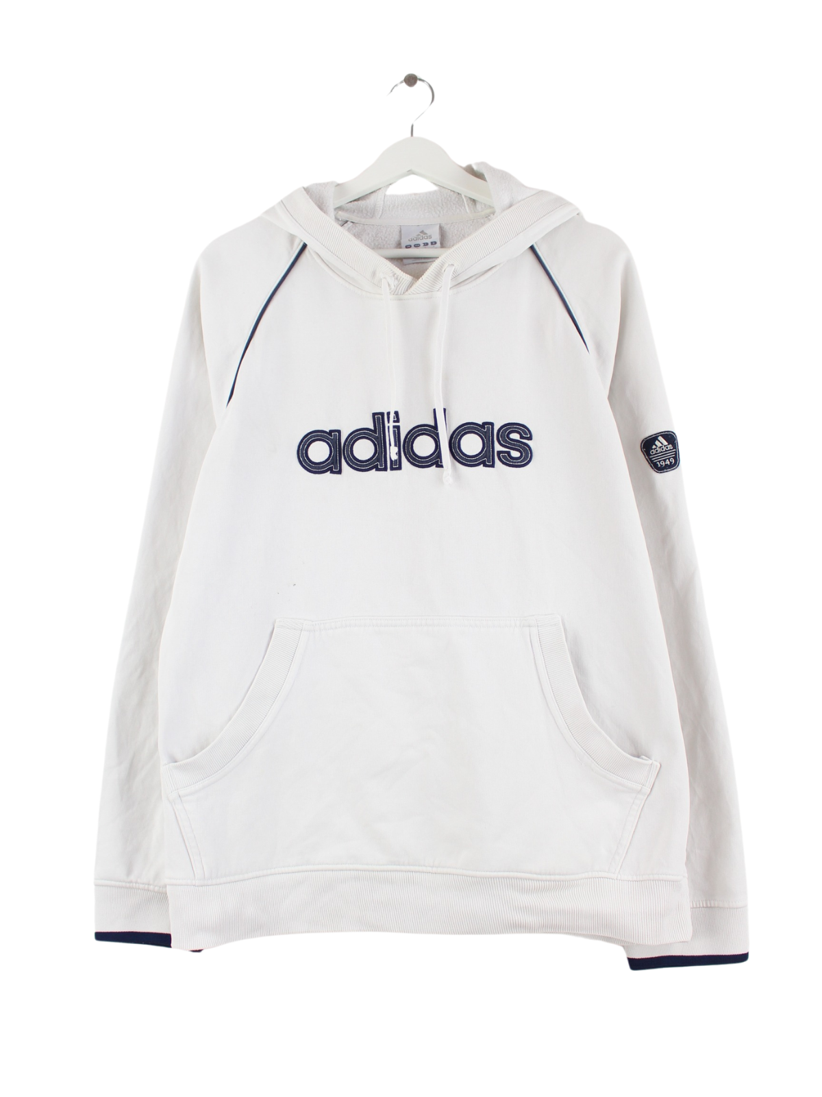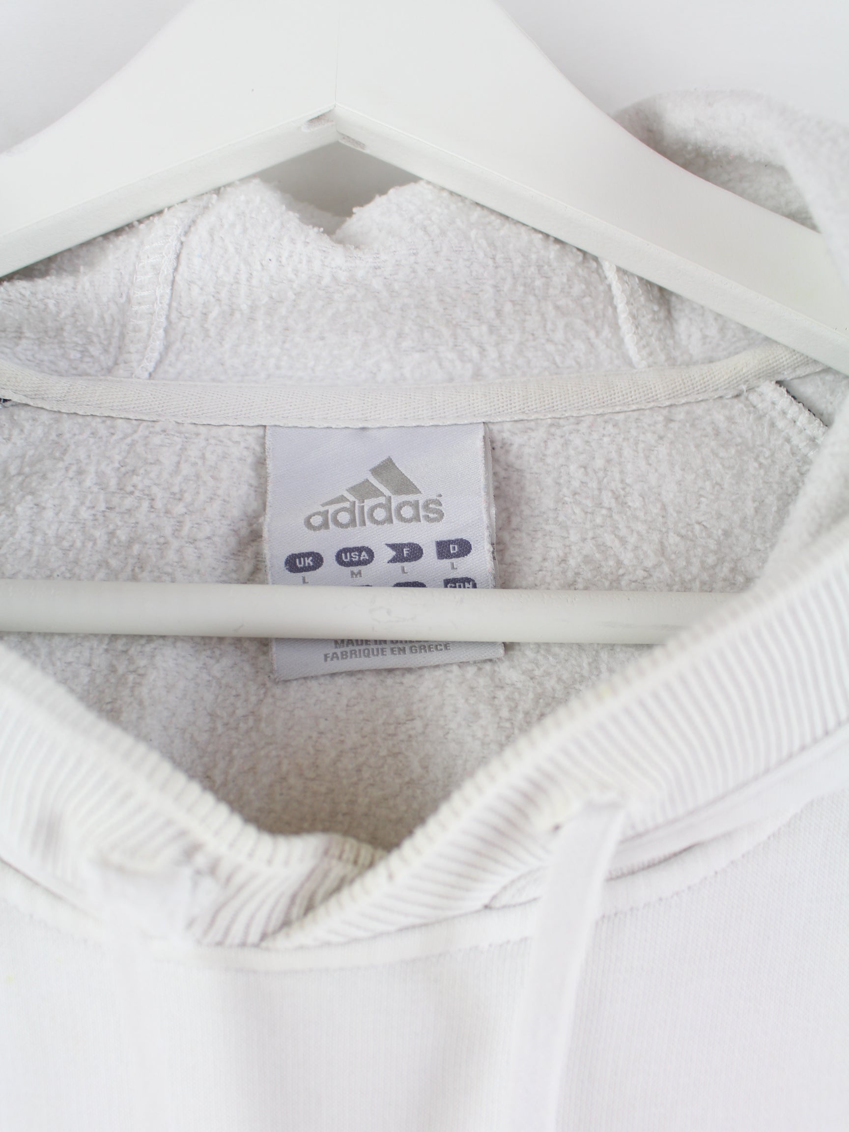 White hoodie with embroidery from the Adidas label in size M. It is made of a cotton blend and is in stock in good condition.