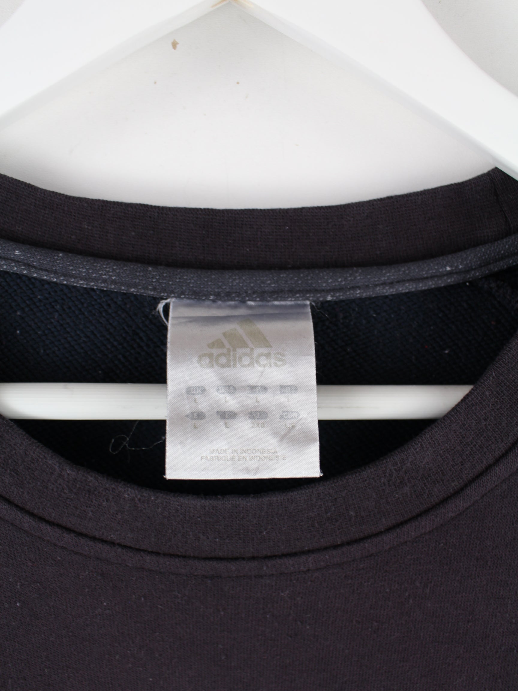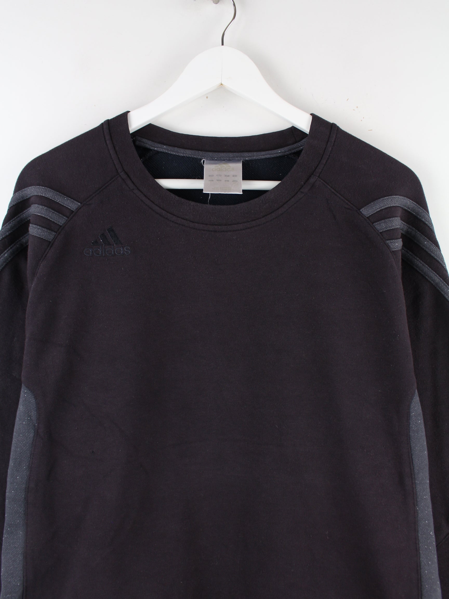 Sweater der Marke Adidas in Größe L. Er ist aus einer Baumwollmischung hergestellt und in Schwarz im Bestand.