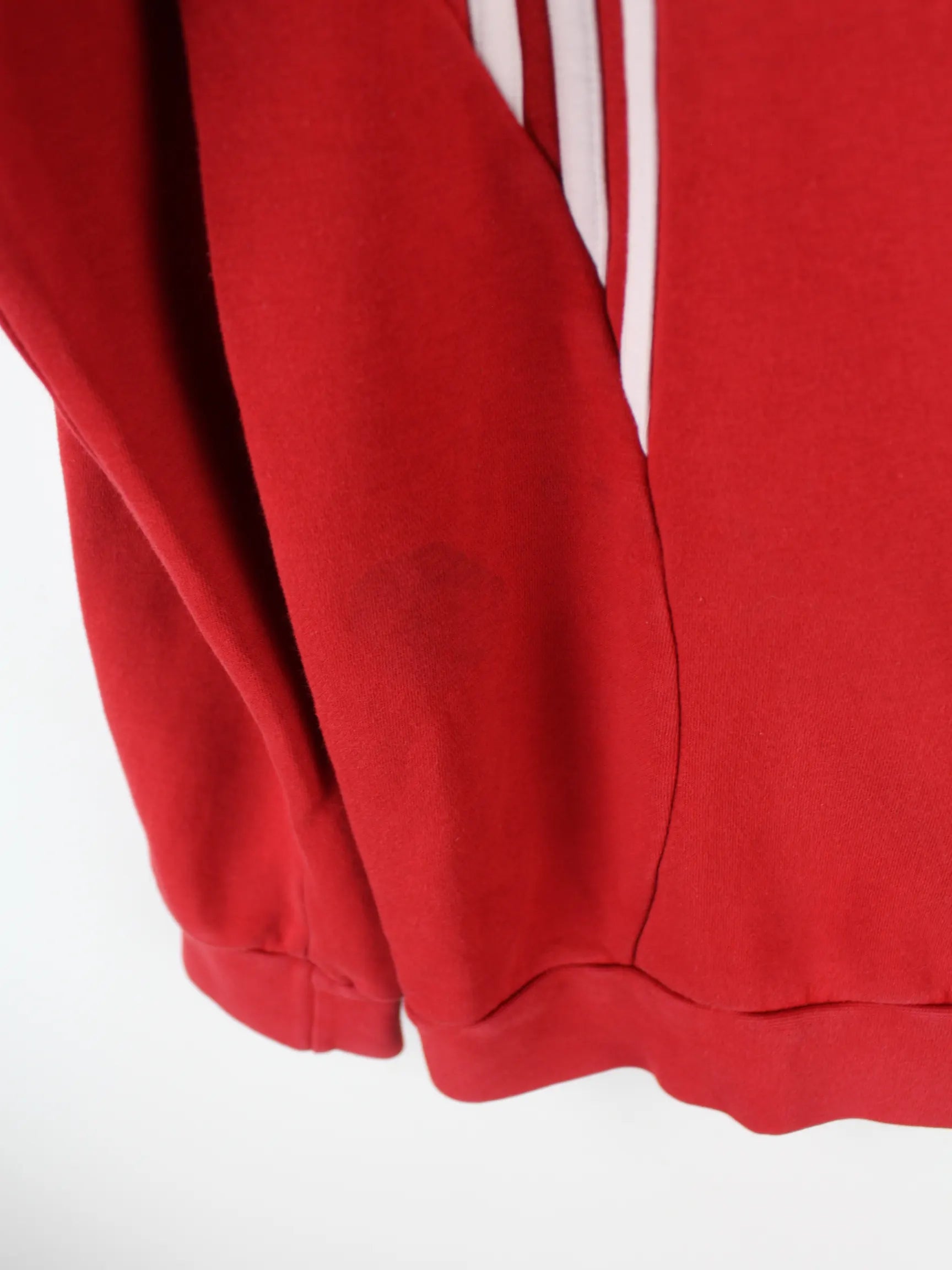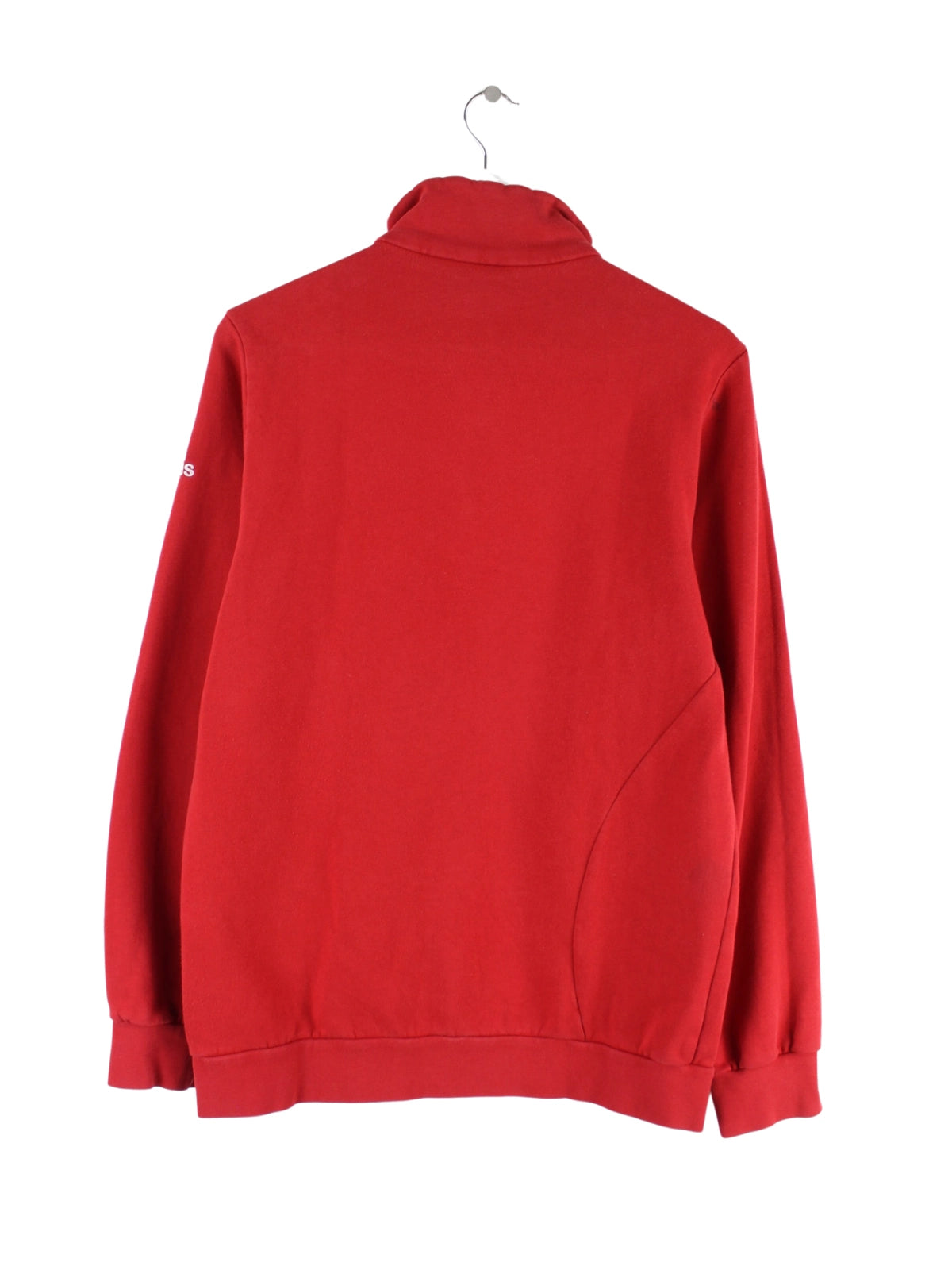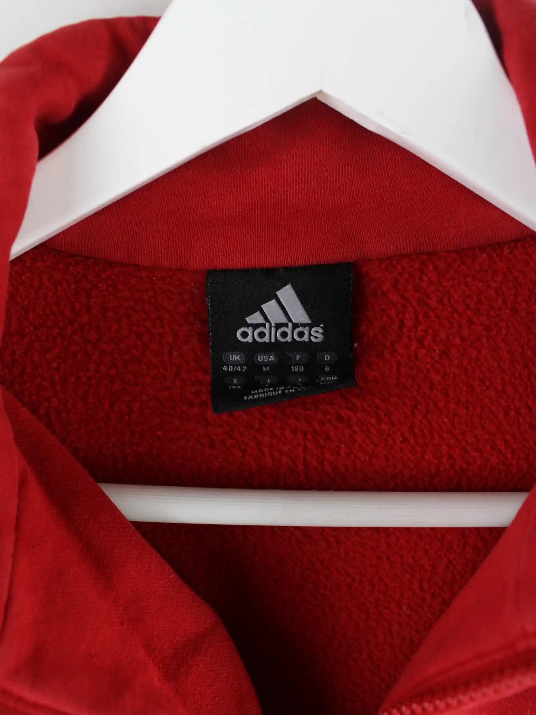 Sweater der Marke Adidas mit half Zip in Größe M. Er ist aus einer Baumwollmischung und in Rot auf Lager.