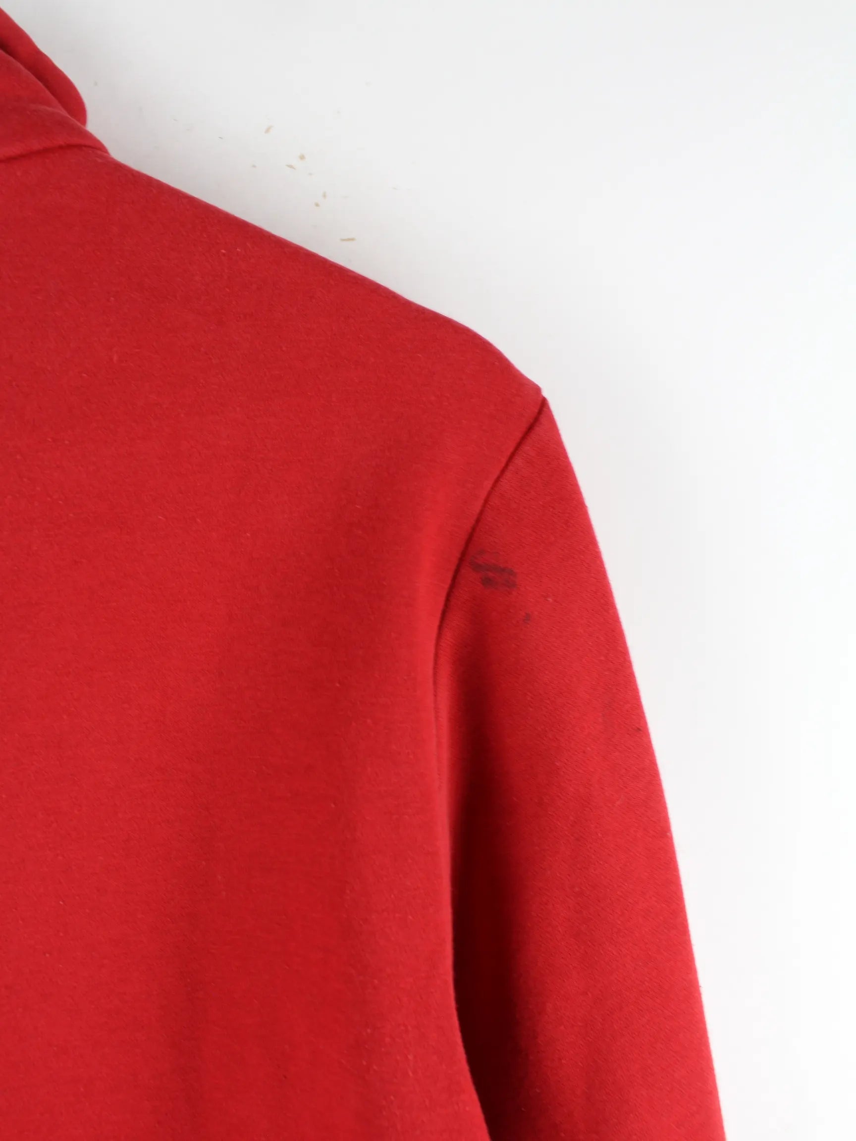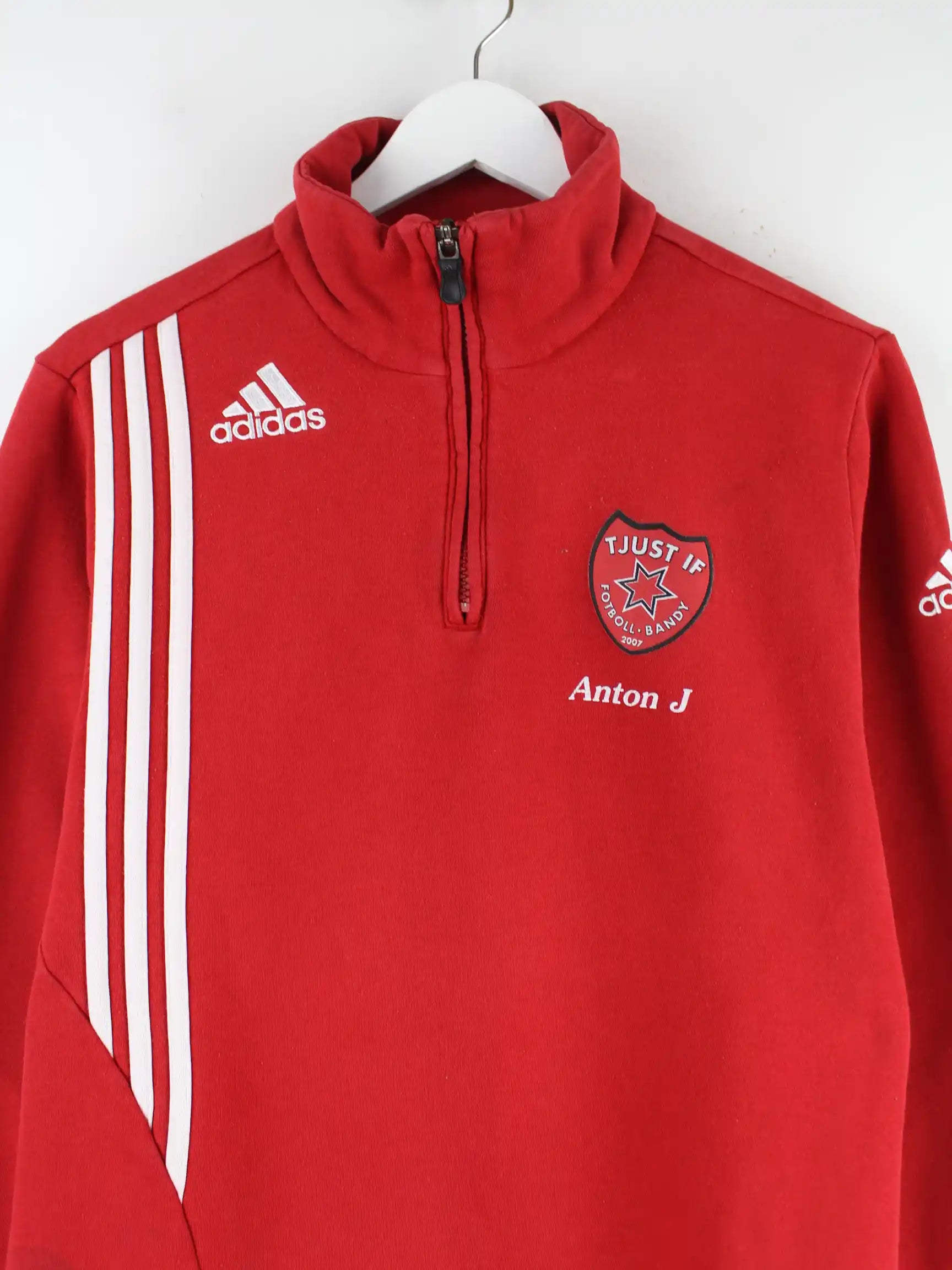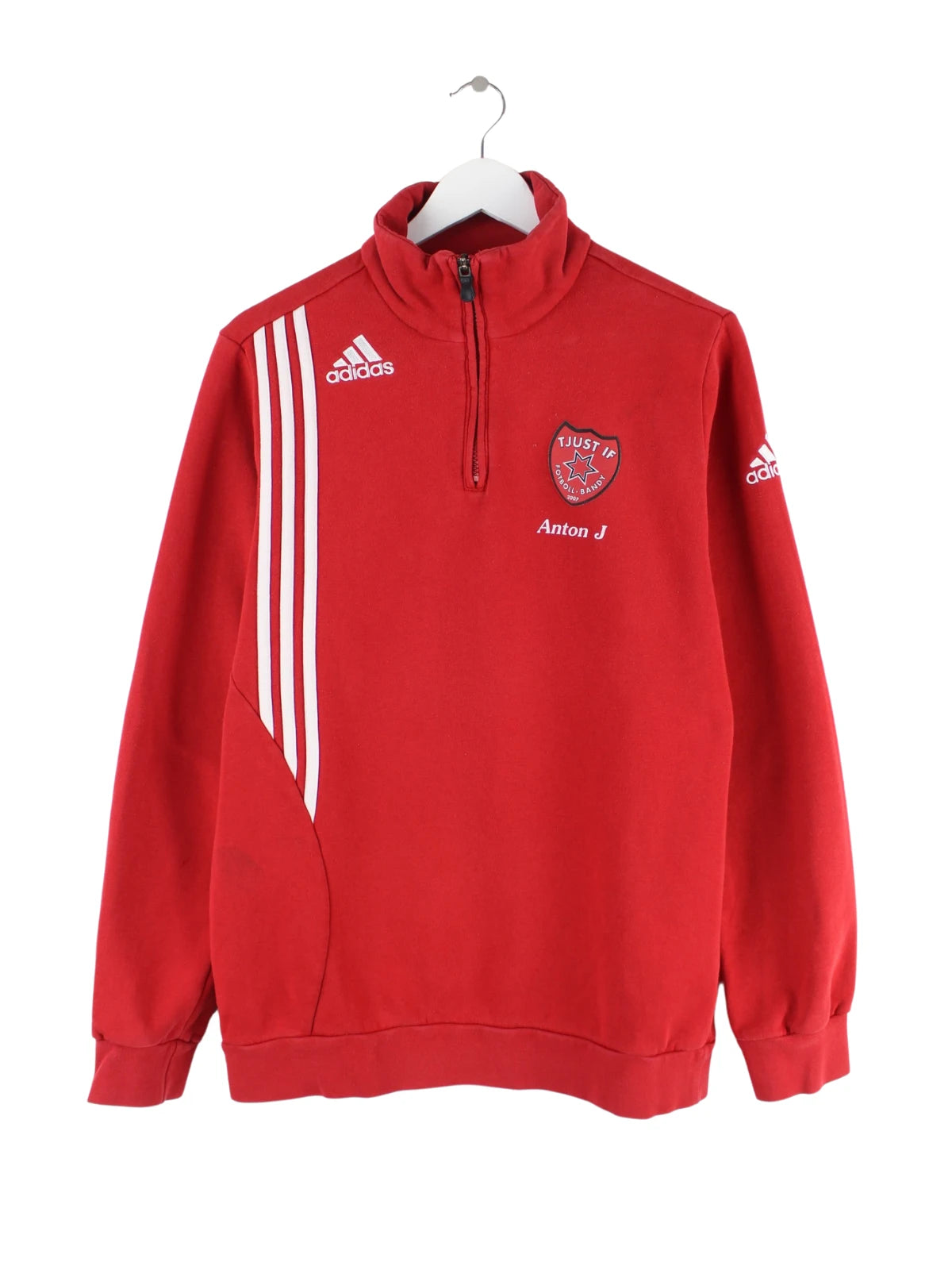 Sweater der Marke Adidas mit half Zip in Größe M. Er ist aus einer Baumwollmischung und in Rot auf Lager.
