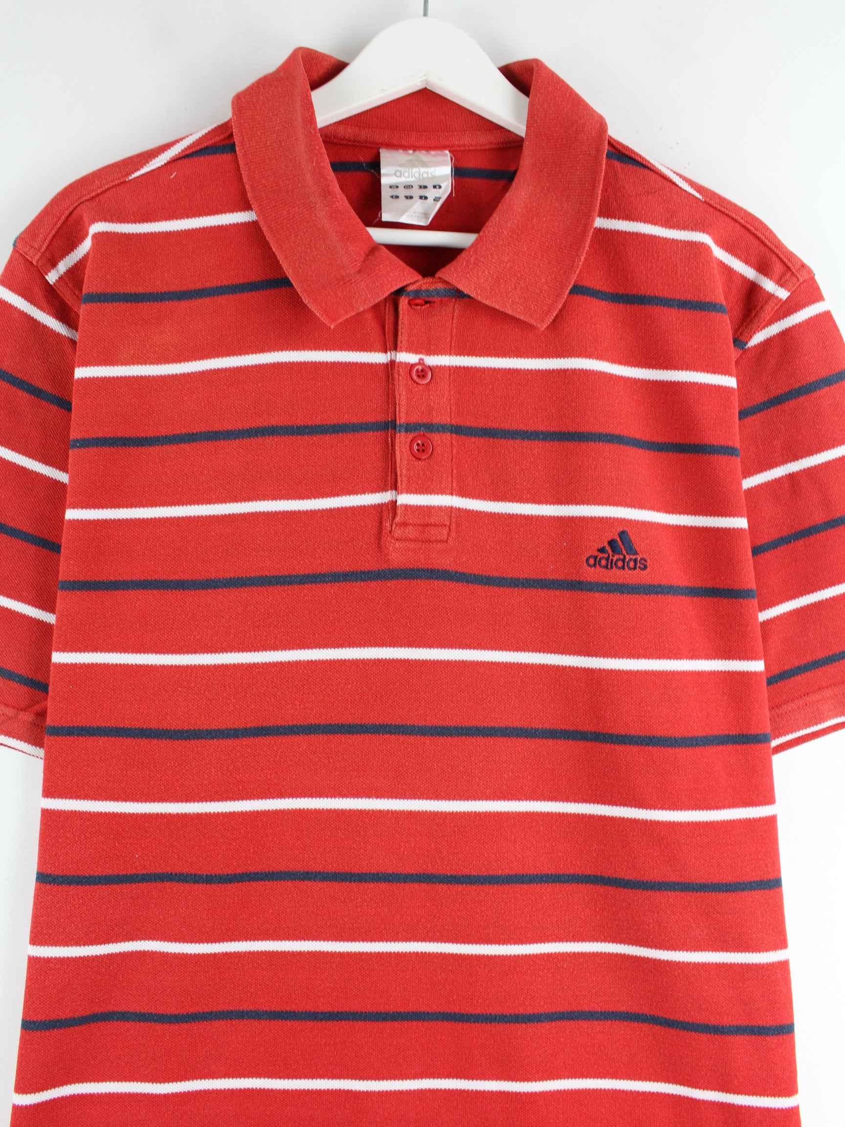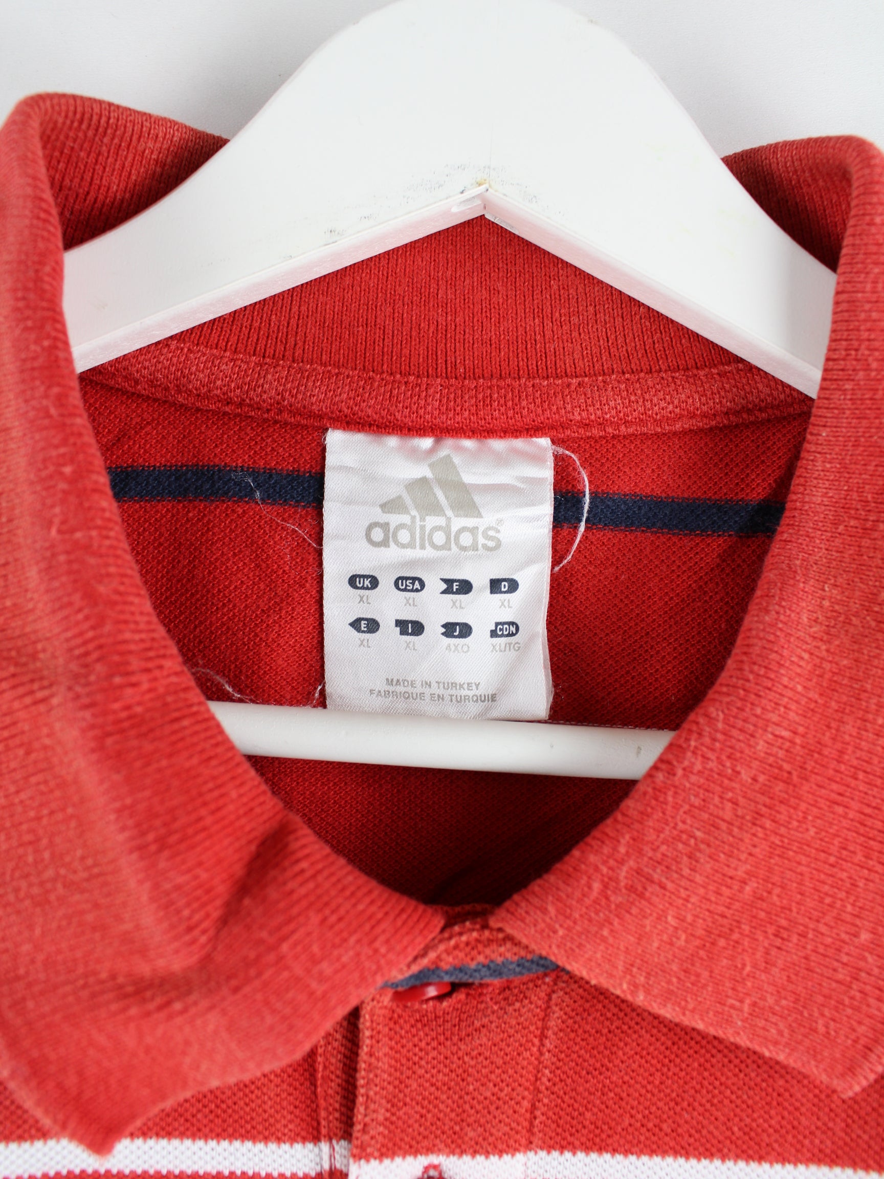 Poloshirt des Labels Adidas in Größe XL. Es ist aus Baumwolle und in Rot zu haben.