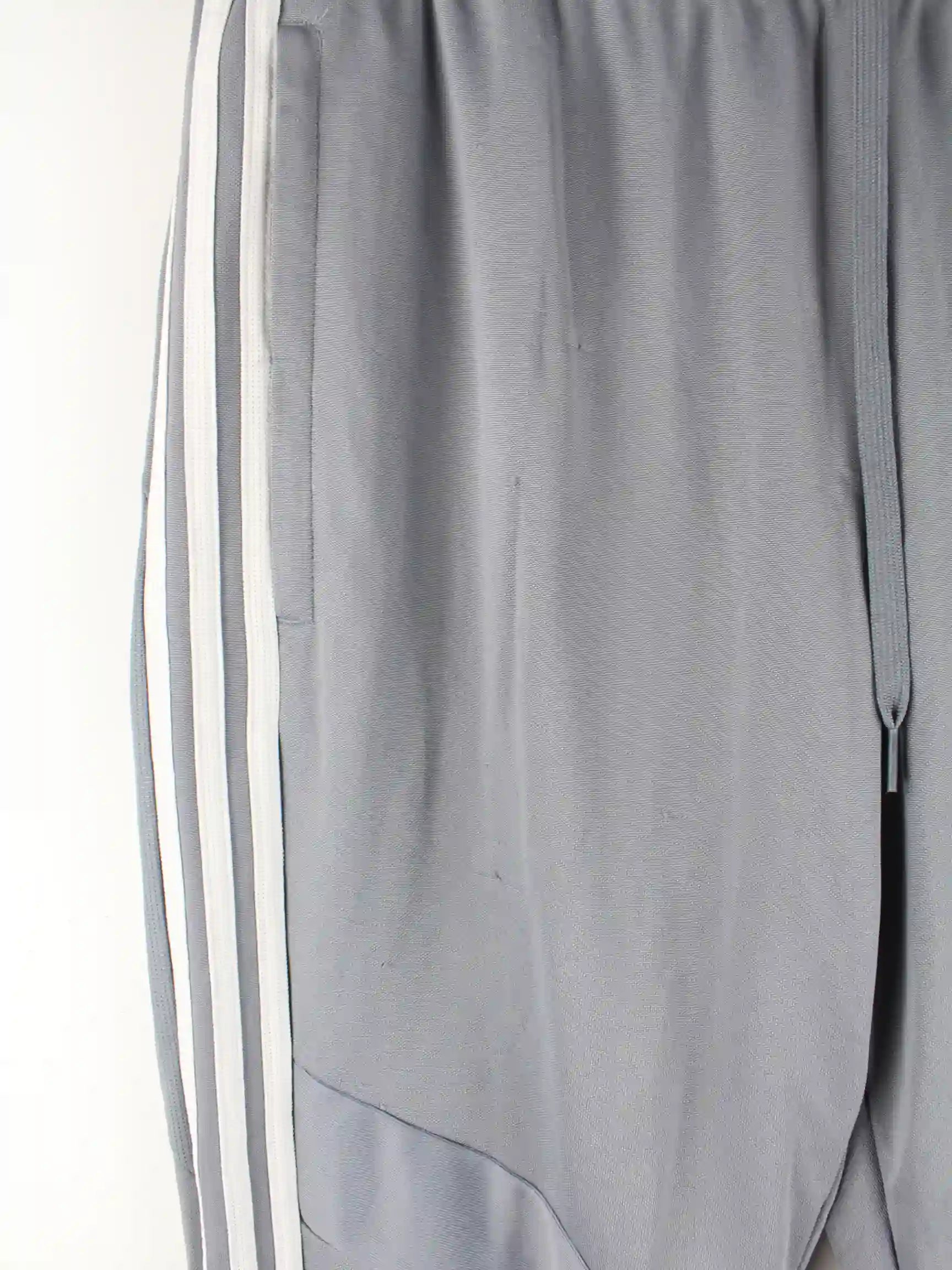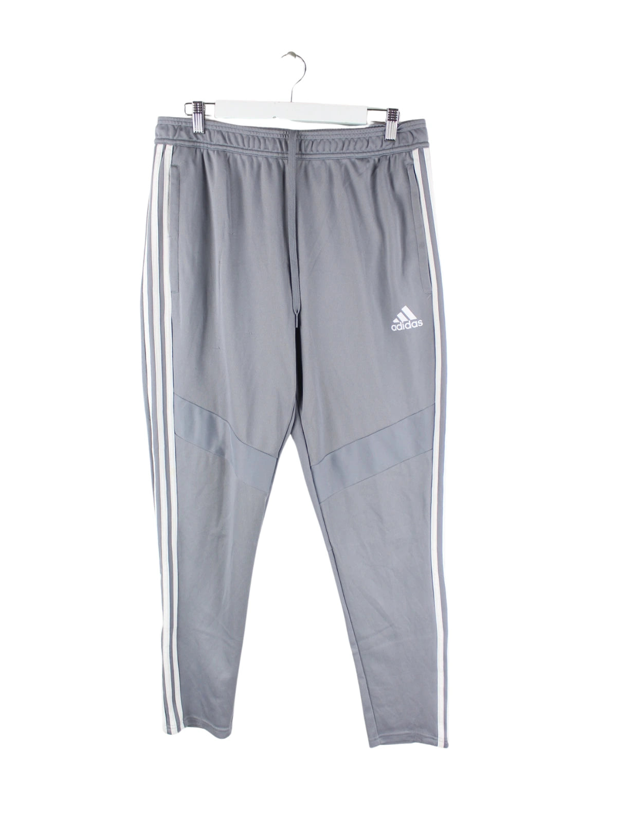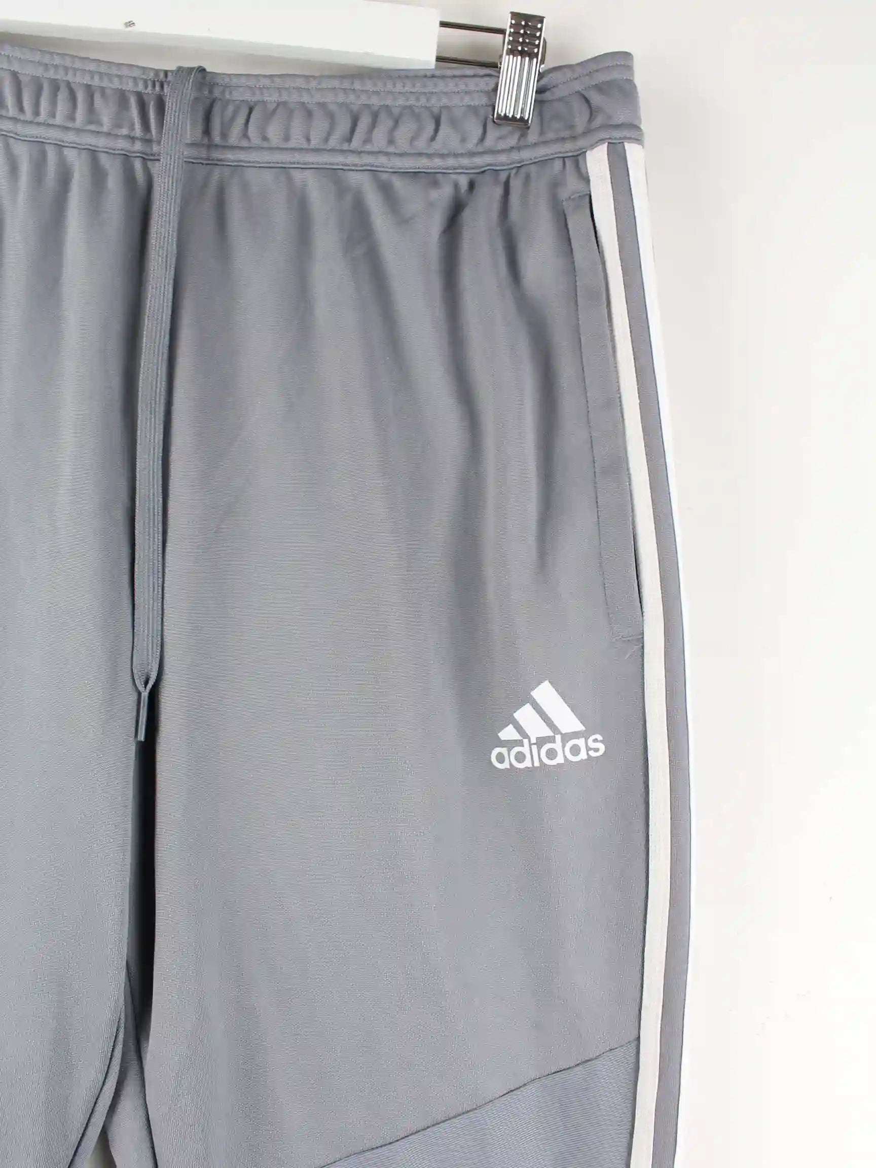 Track Pants aus dem Hause Adidas in Größe L. Sie sind aus Synthetik gemacht und in Grau in Stock.