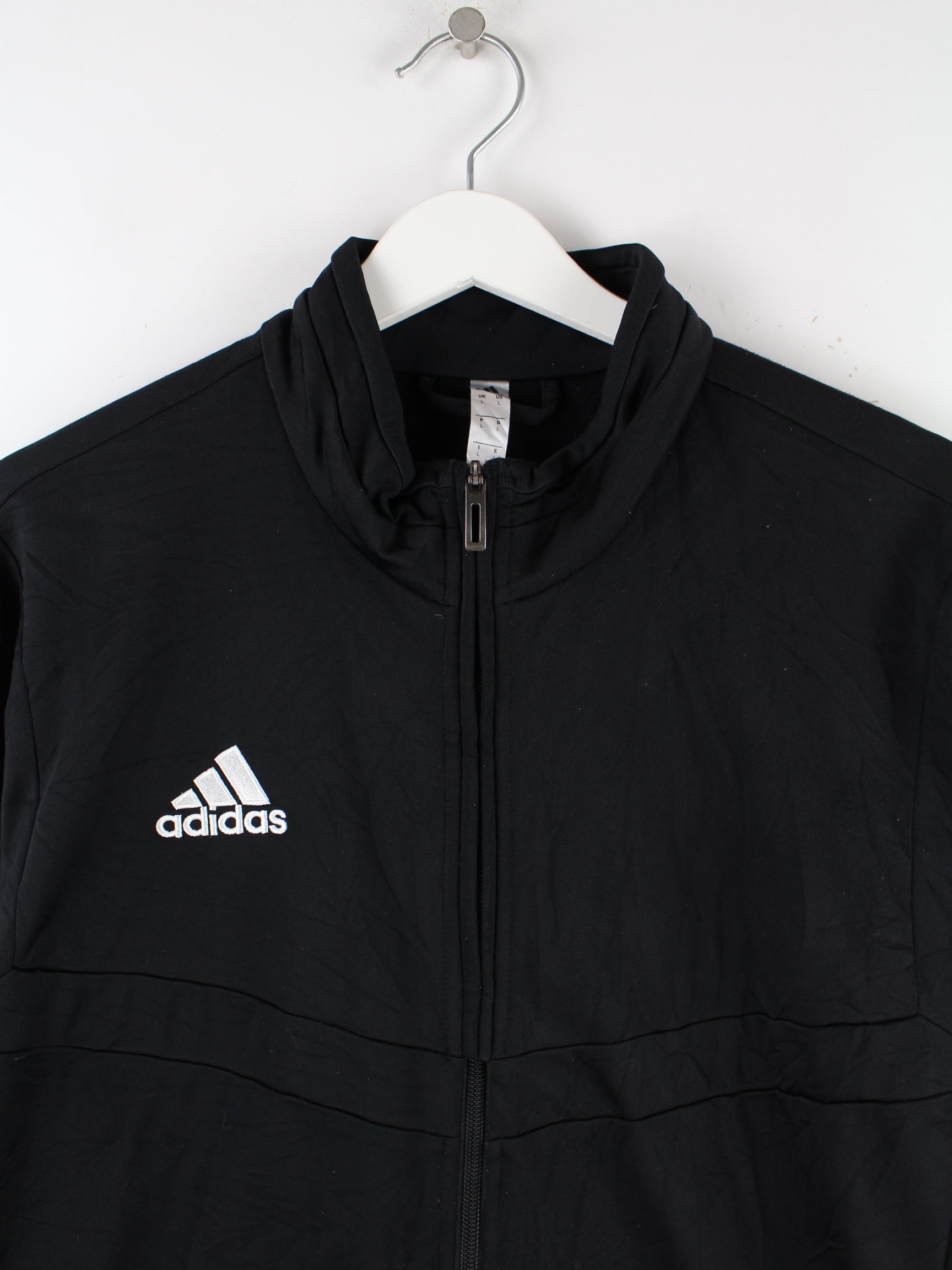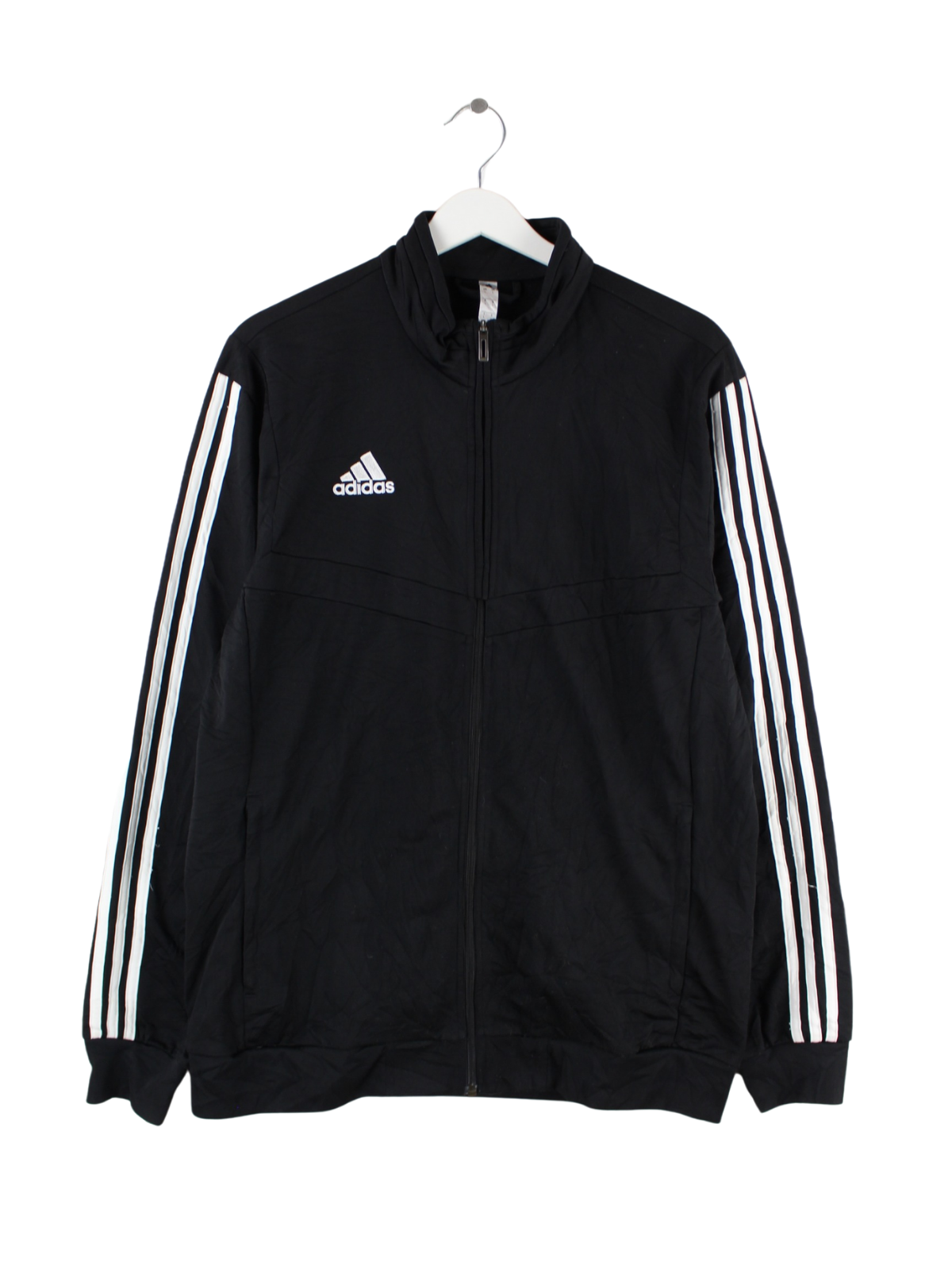 Trainingsjacke von Adidas in Größe L. Sie ist aus Synthetik und in Schwarz bei uns zu bekommen.