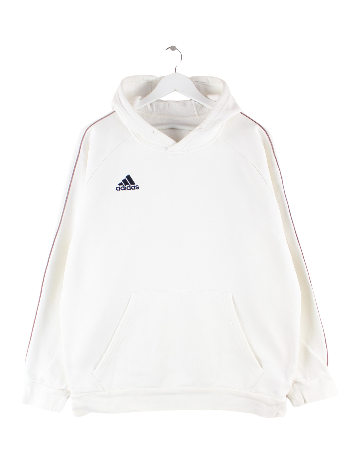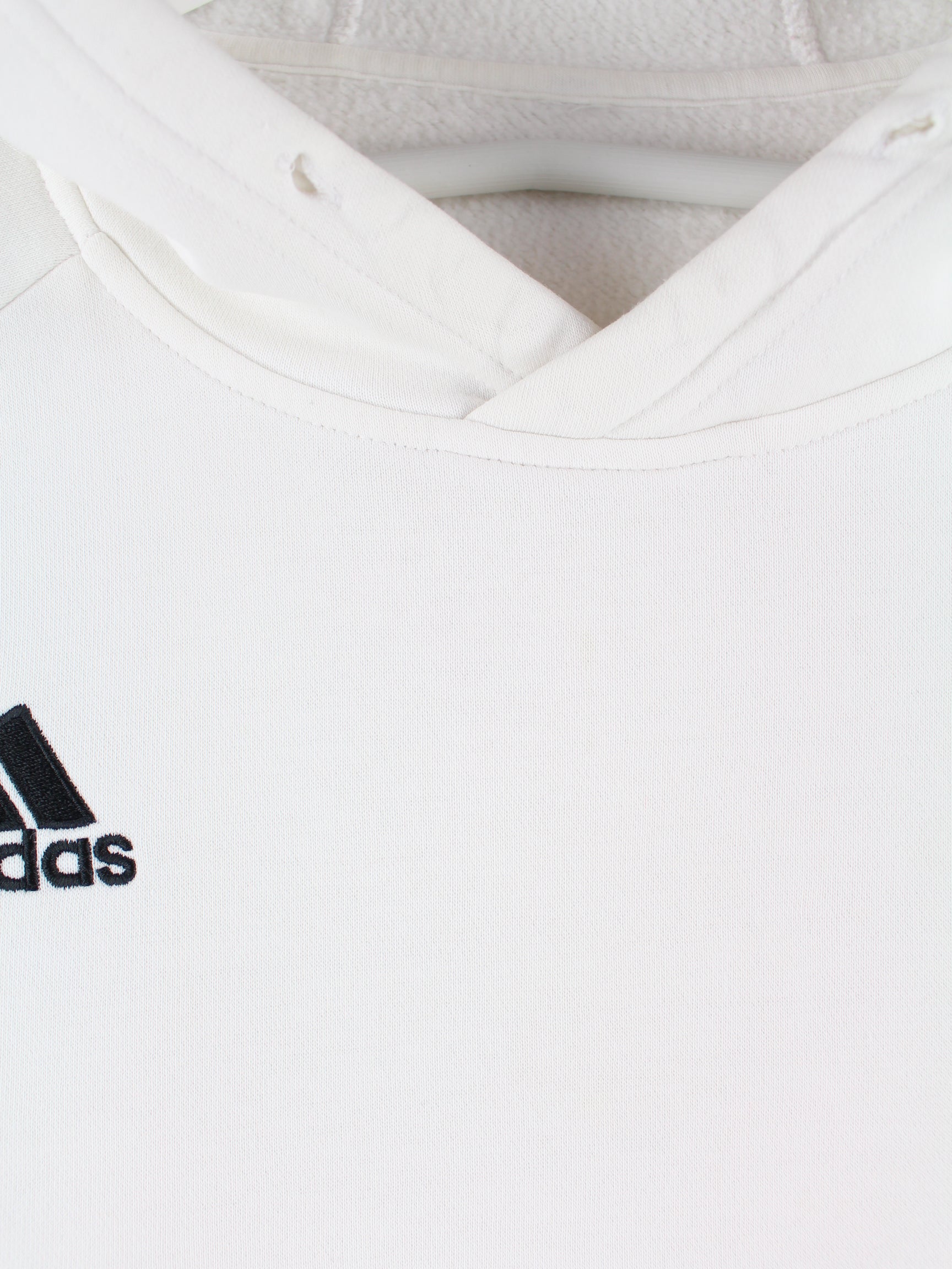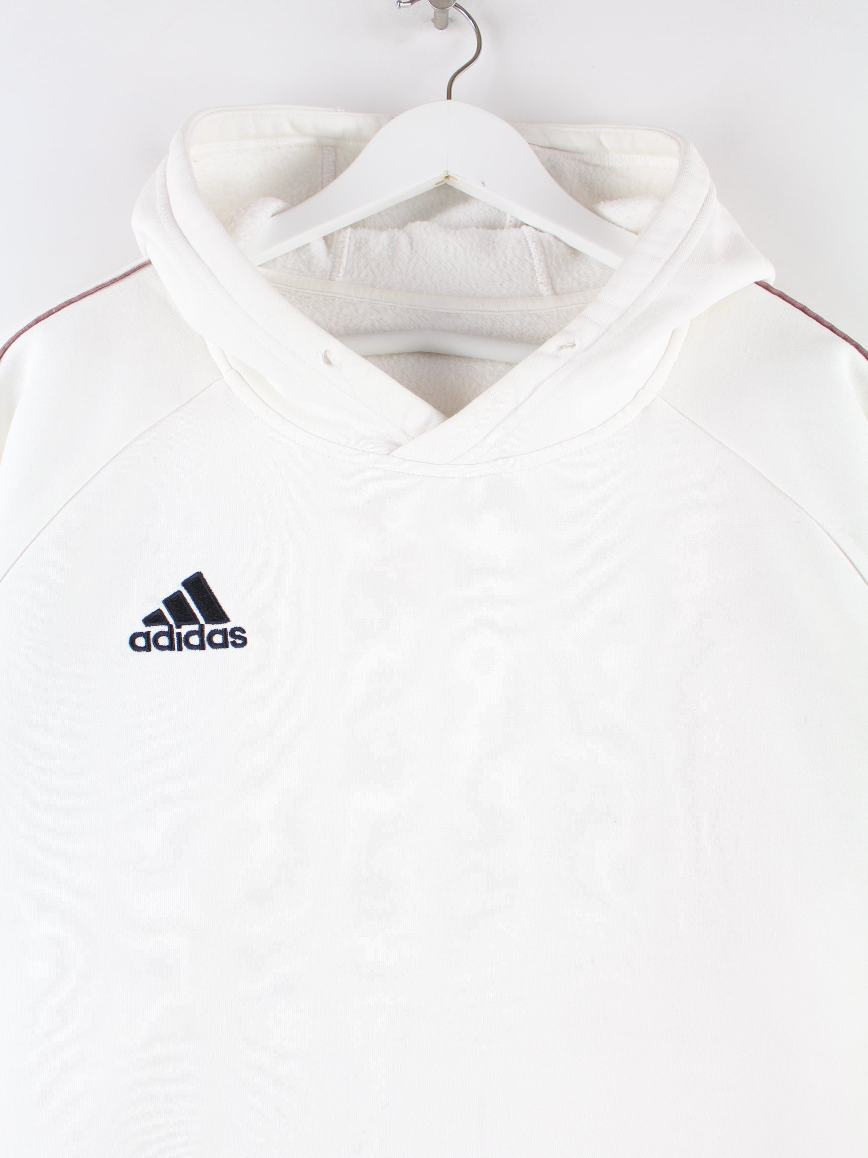 White hoodie from the brand Adidas in size XL. It is made from a cotton blend. We would describe the condition as 'fine' (see pictures).