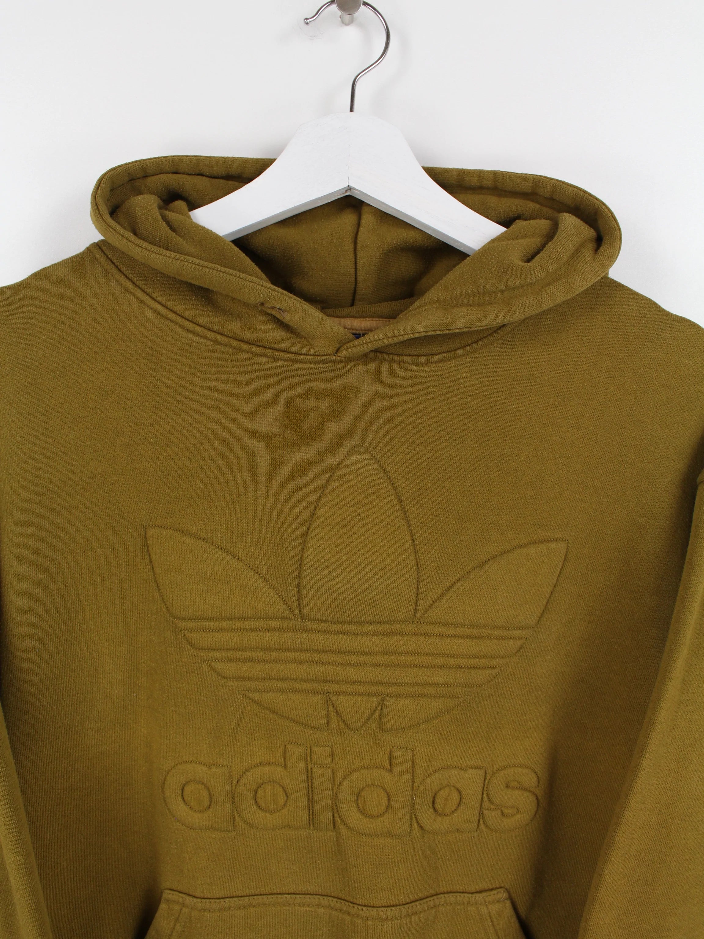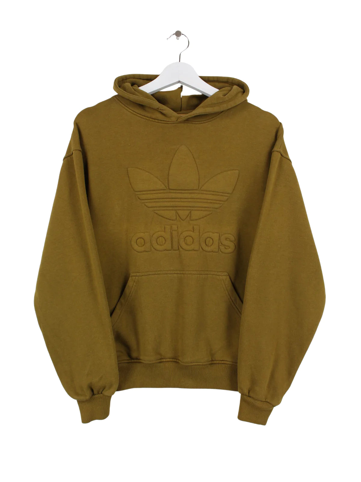 Brown Adidas Originals Trefoil Hoodie with a large logo on the chest.