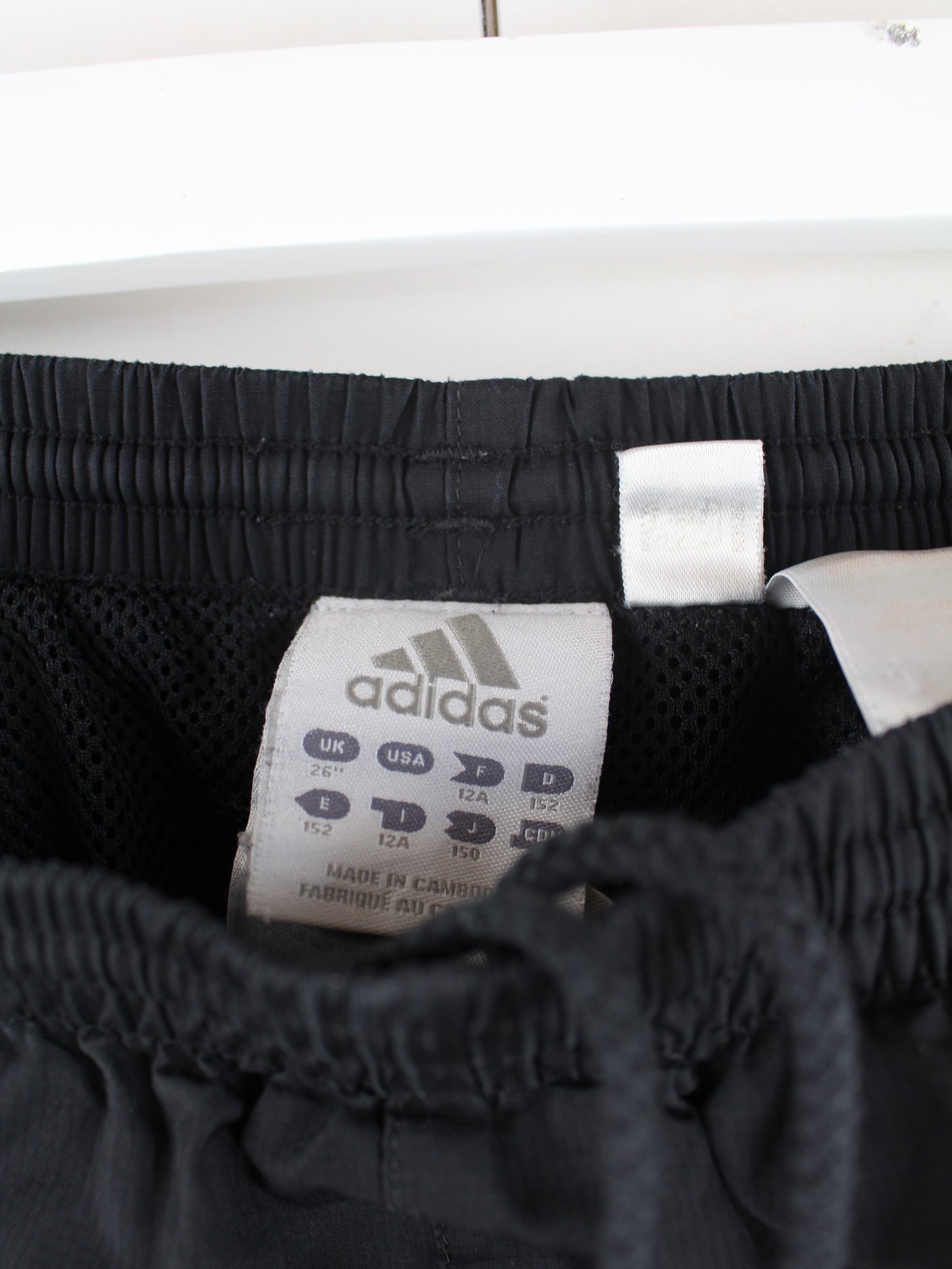 Black shorts from the brand Adidas in size XS. They are made of synthetic material and are in good condition in stock.