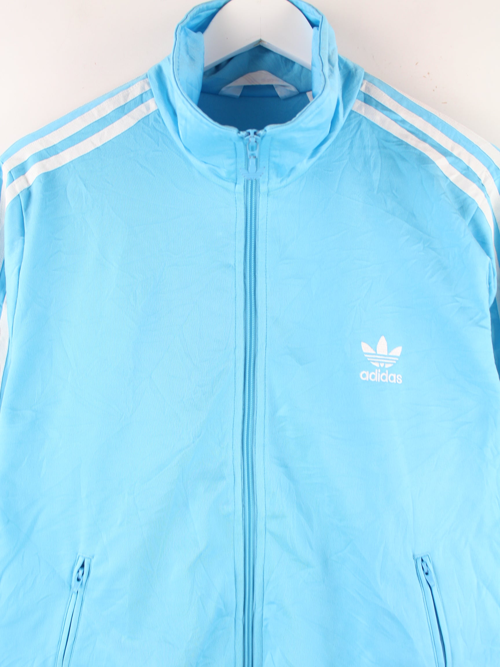 Trainingsjacke des Labels Adidas in Größe L. Sie ist aus Synthetik und in Blau in Stock.