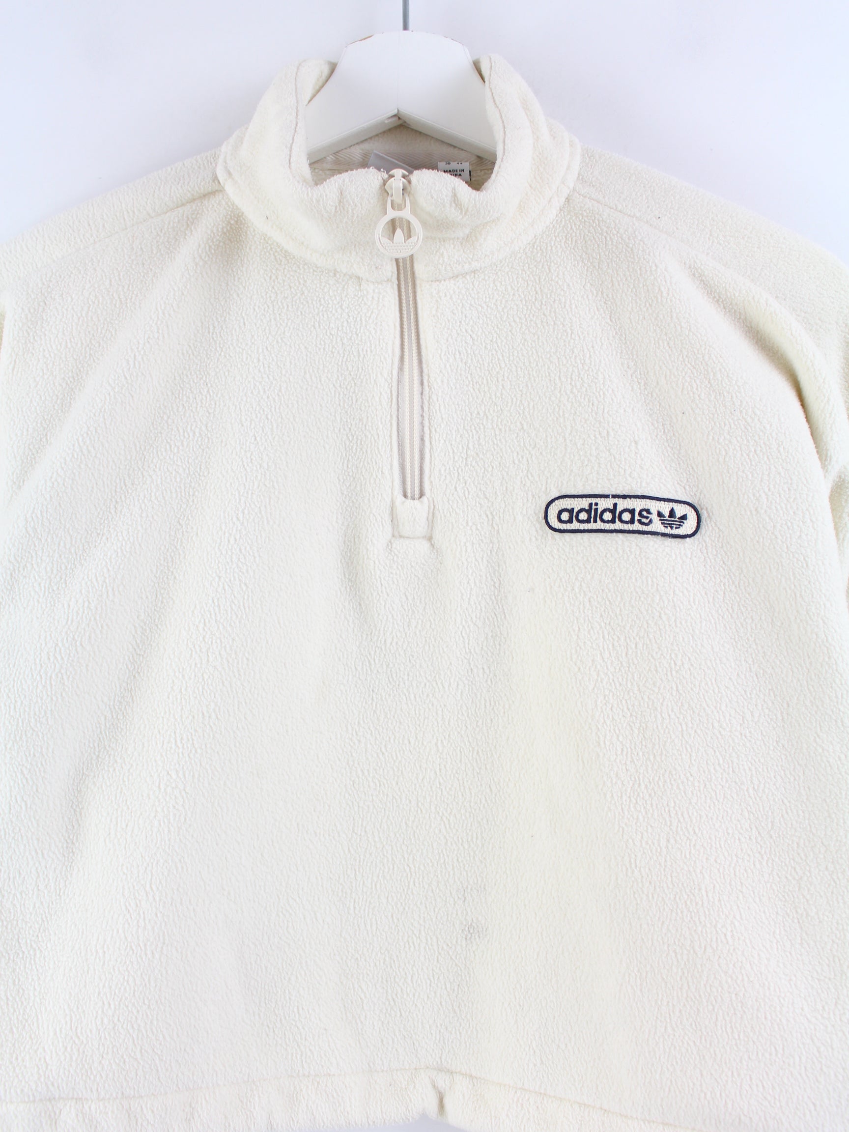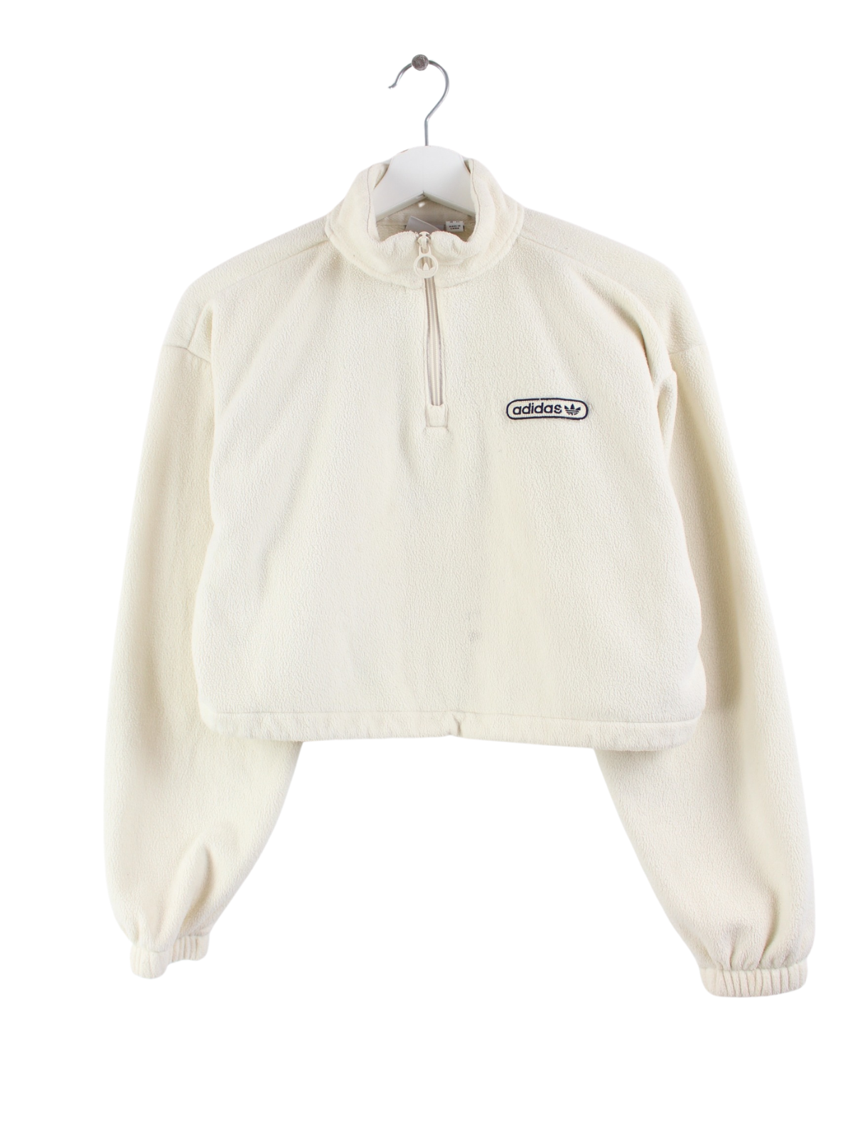 Adidas Women's Embroidered Fleece Half Zip Crop Sweater Beige M