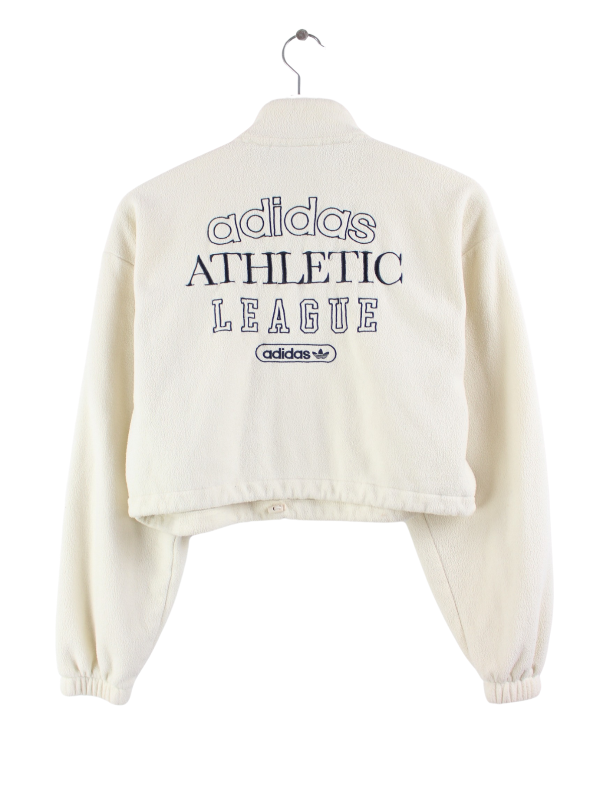 Sweater from Adidas with embroidery and half zipper in size M. It is made of comfortable fleece and is available in beige.
