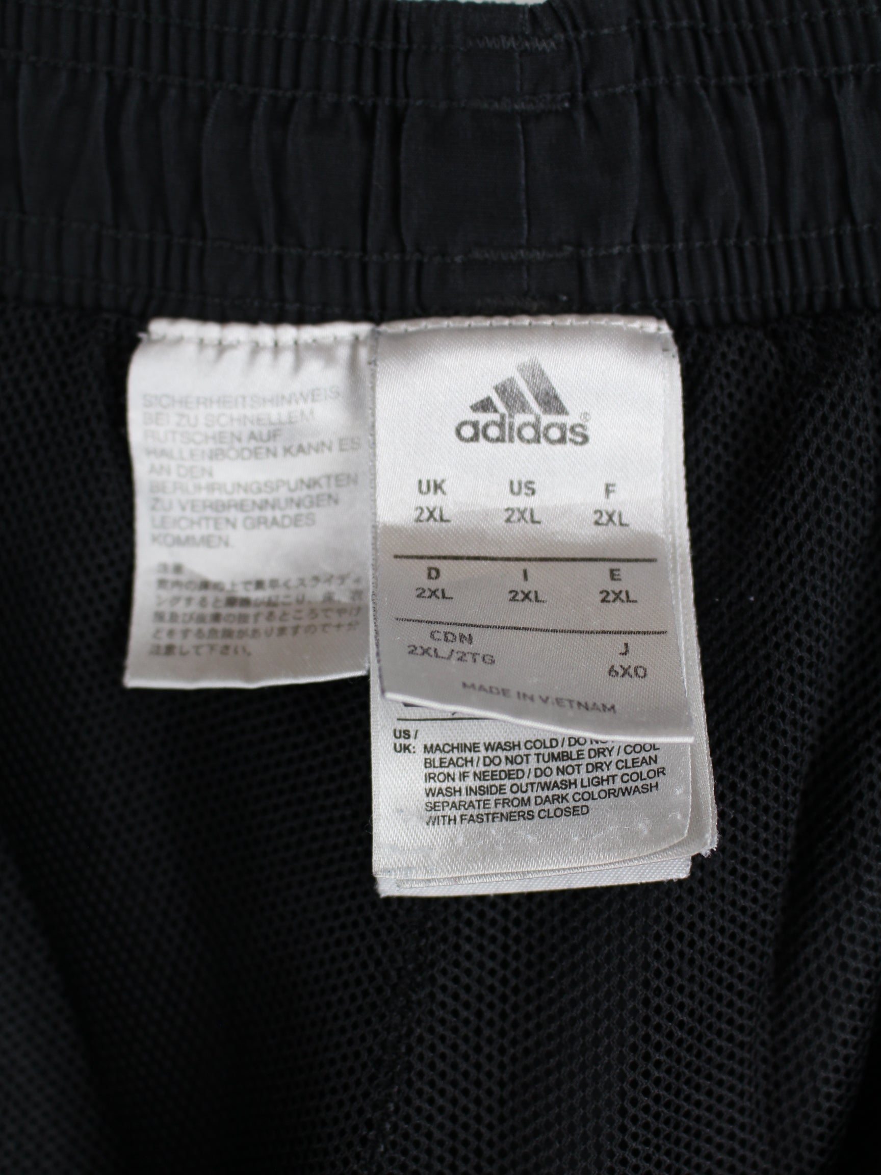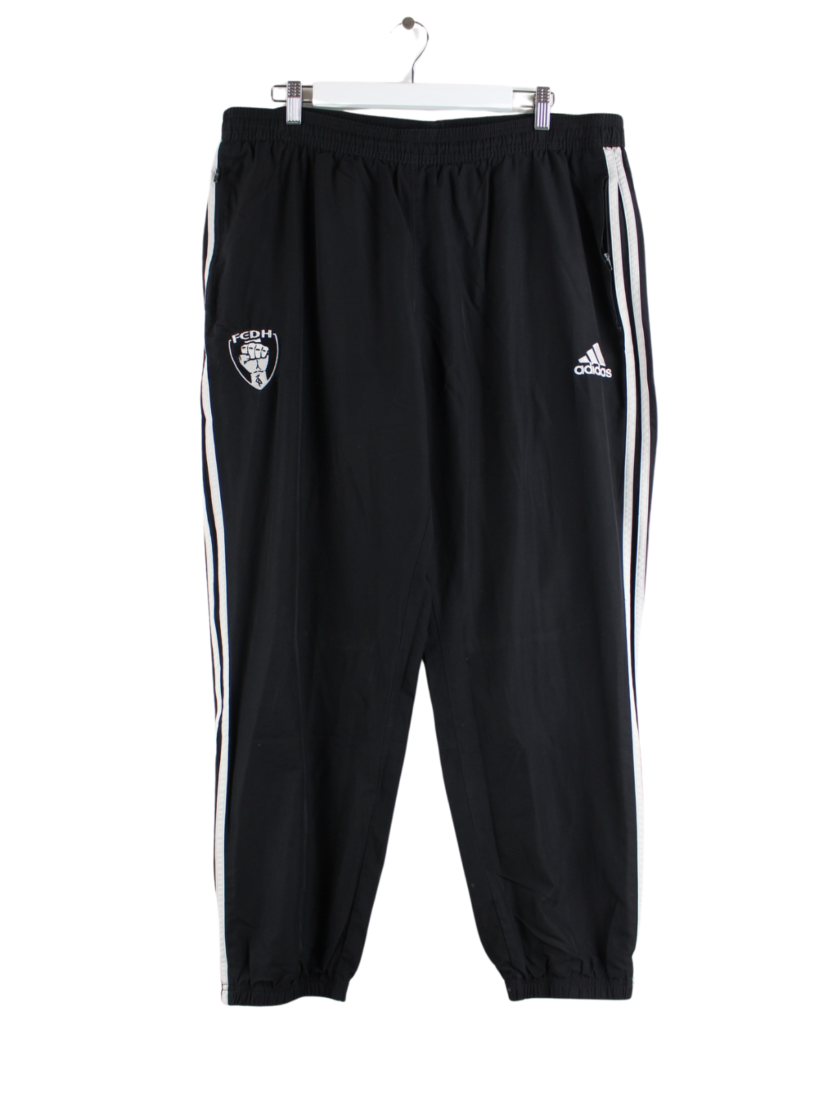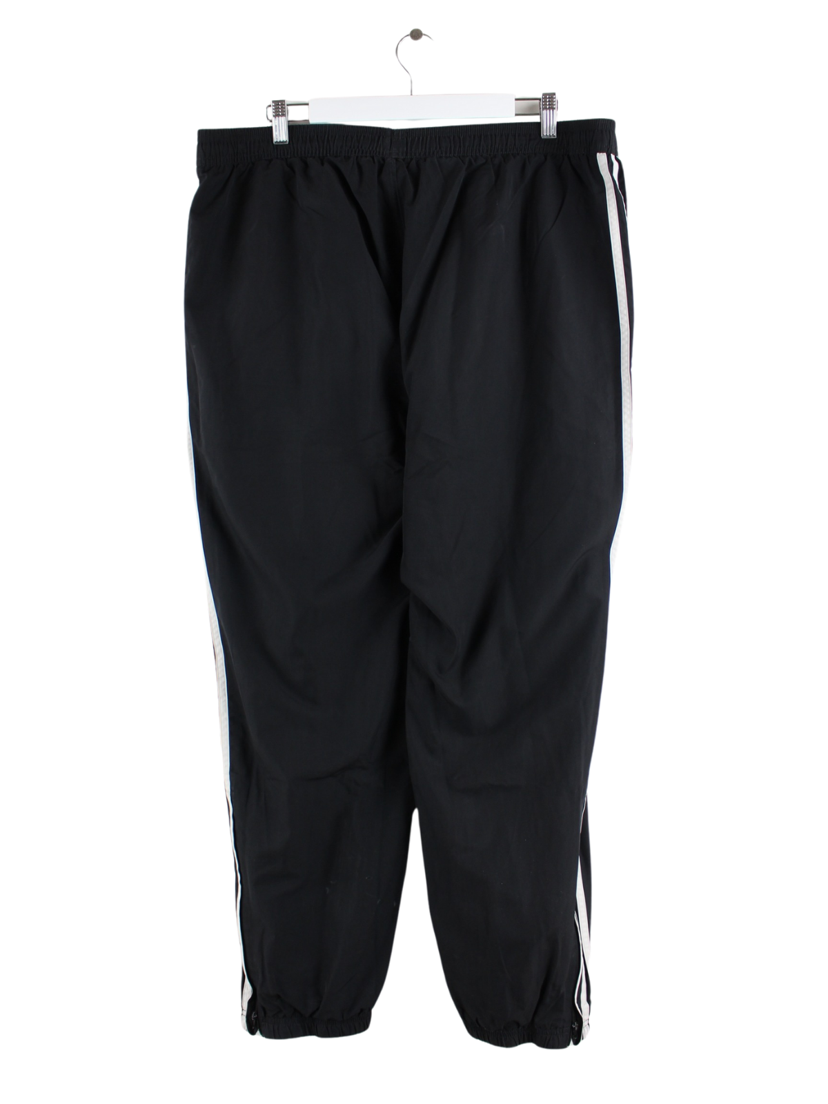 Schwarze Track Pants mit gesticktem Logo vom Brand Adidas in Größe XXL. Sie sind aus Synthetik . Den Zustand würden wir als 'In Ordnung' bezeichnen (vergl. Bilder).