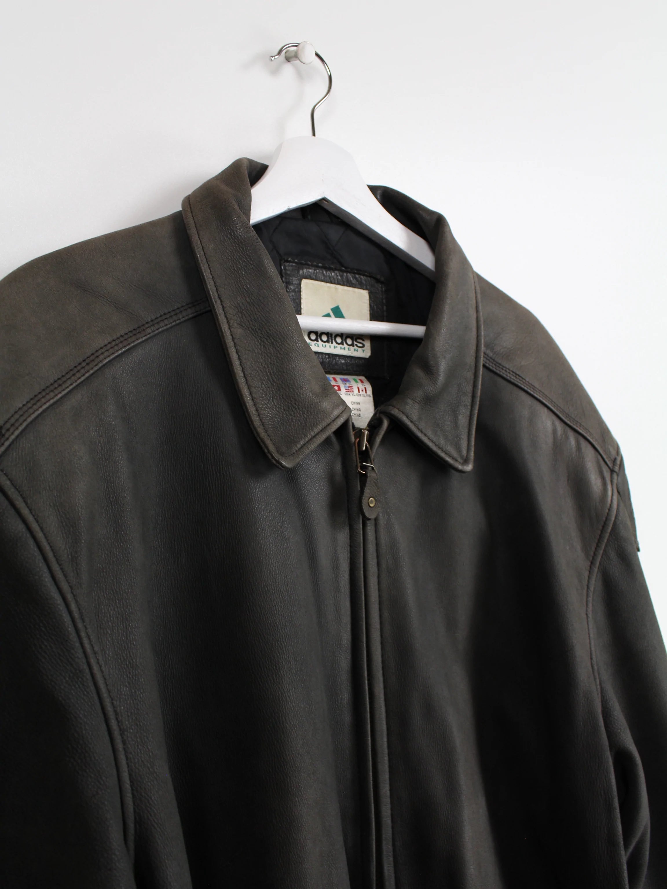 Rare leather jacket from Adidas Equipment, with a large back spellout.