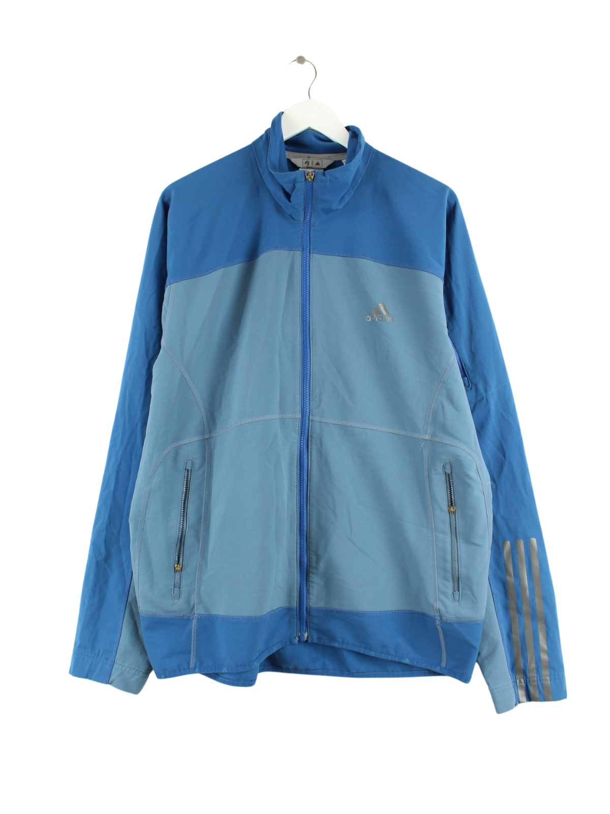Blue light jacket from Adidas in size L. It is made of synthetic material. We would describe the condition as 'fine' (see pictures).