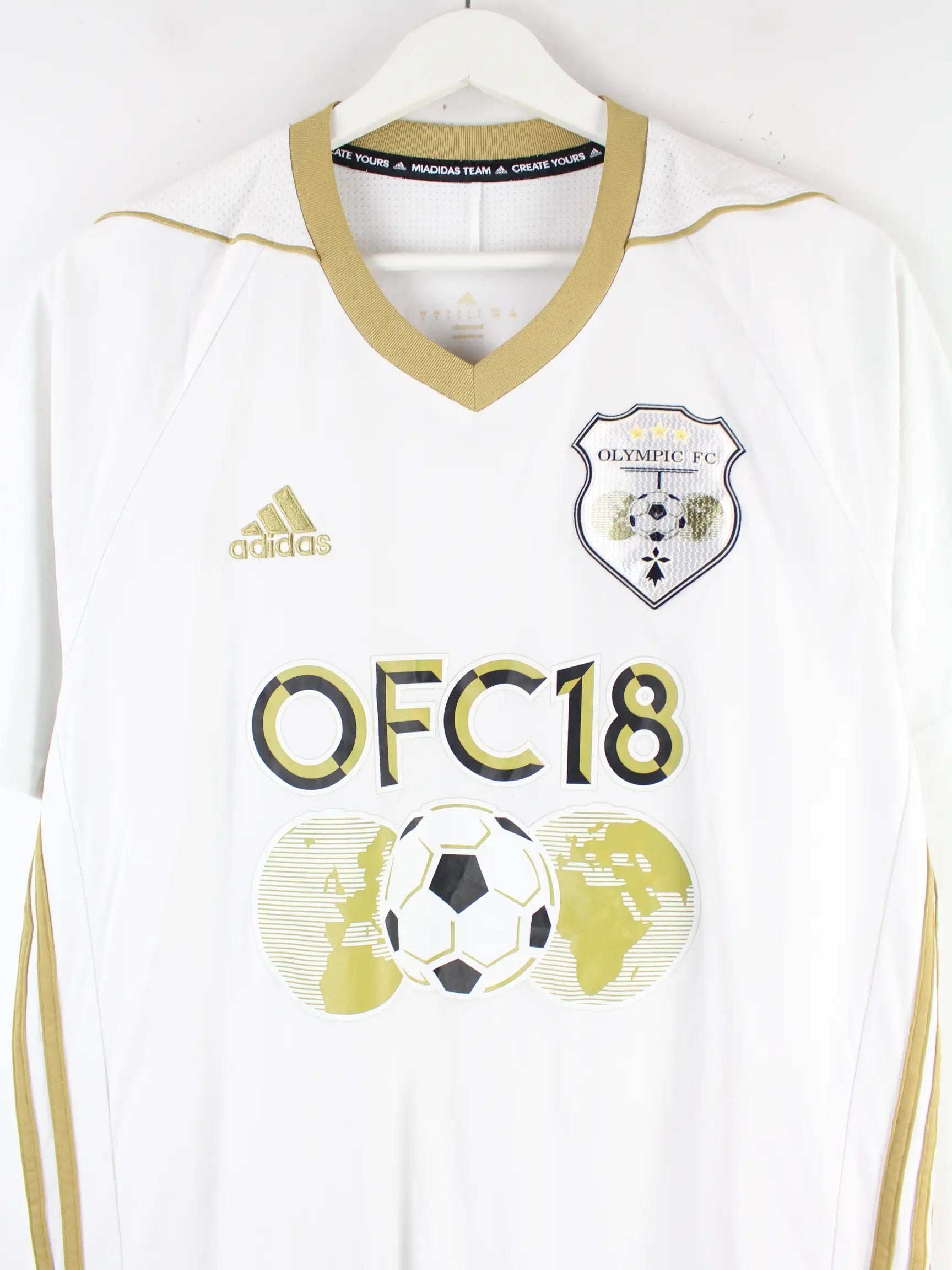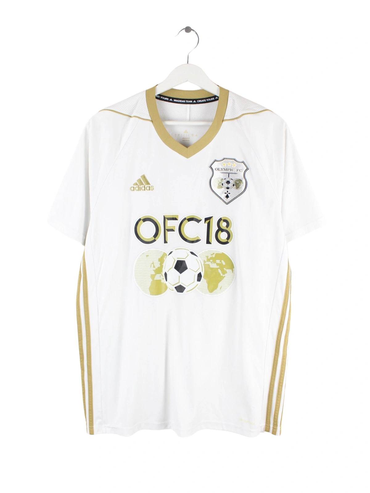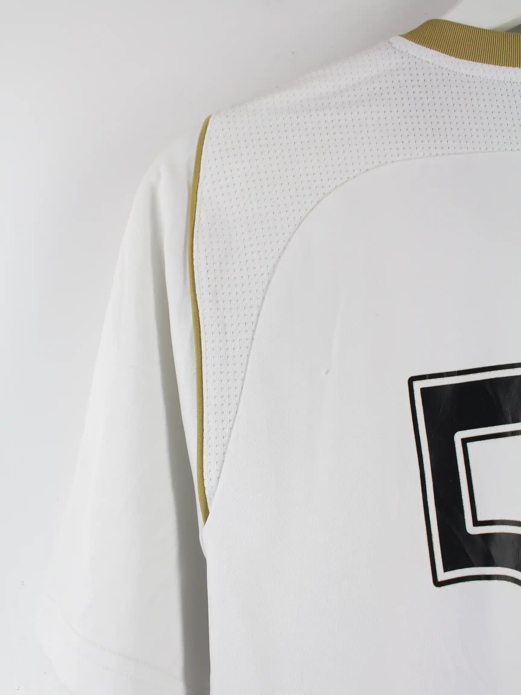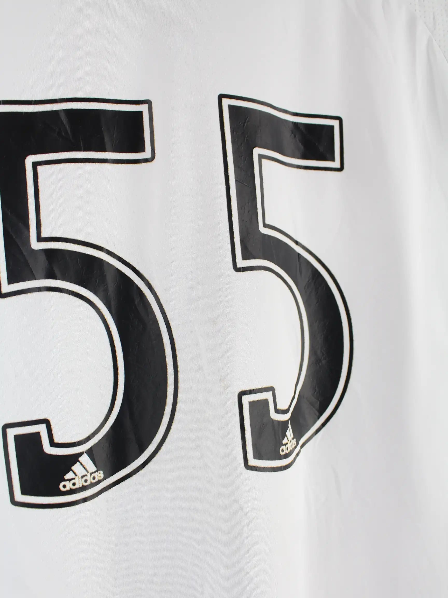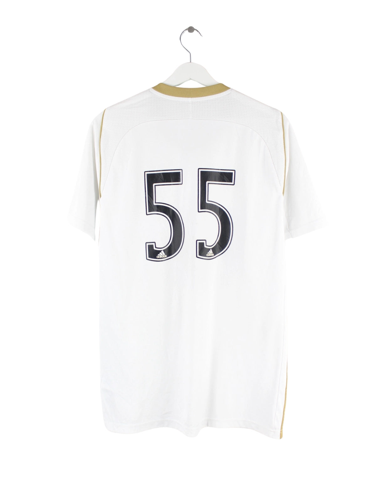 Weißes Trikot der Brand Adidas in Größe L. Es ist aus Synthetik hergestellt und in gutem Zustand im Bestand.