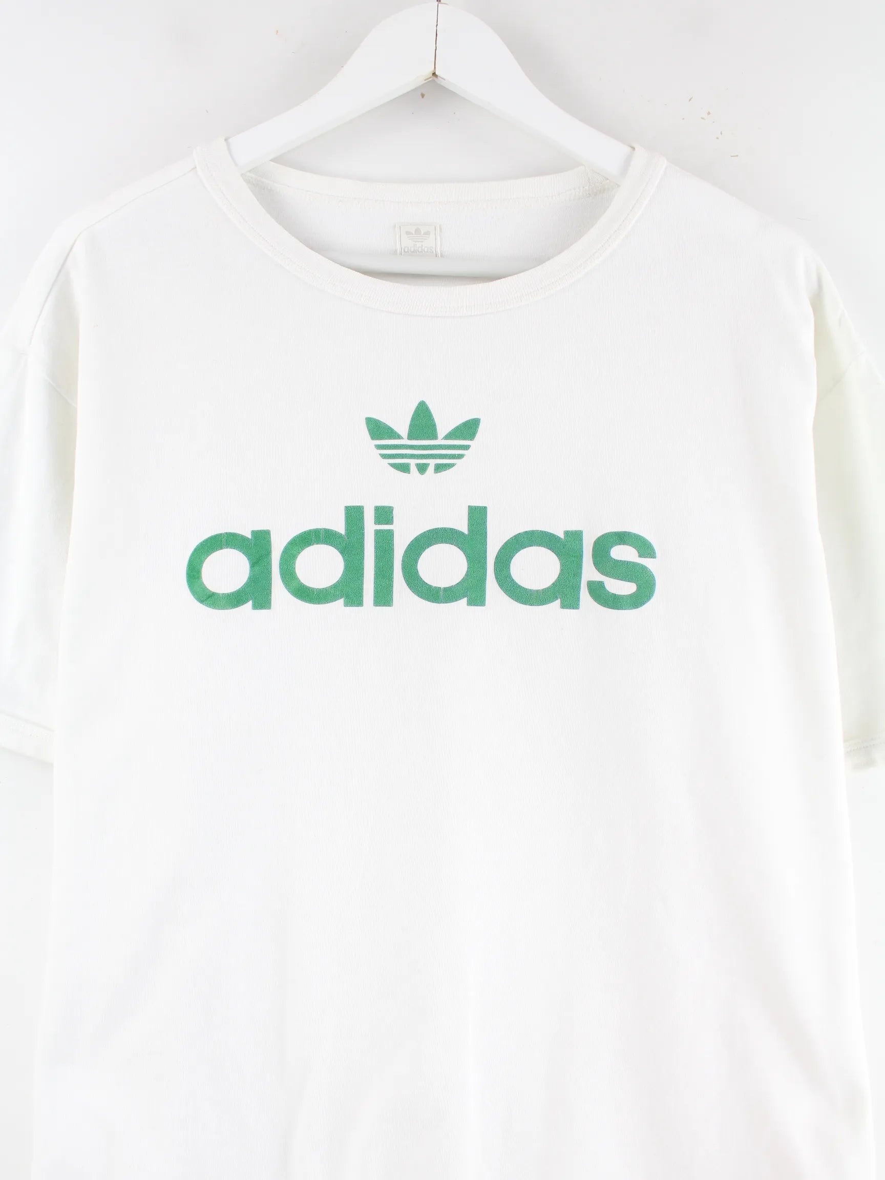 T-Shirt vom Brand Adidas in Größe XXL. Es ist aus Baumwolle produziert und in Weiß bei uns vorrätig. Mit tollem 00s Print.