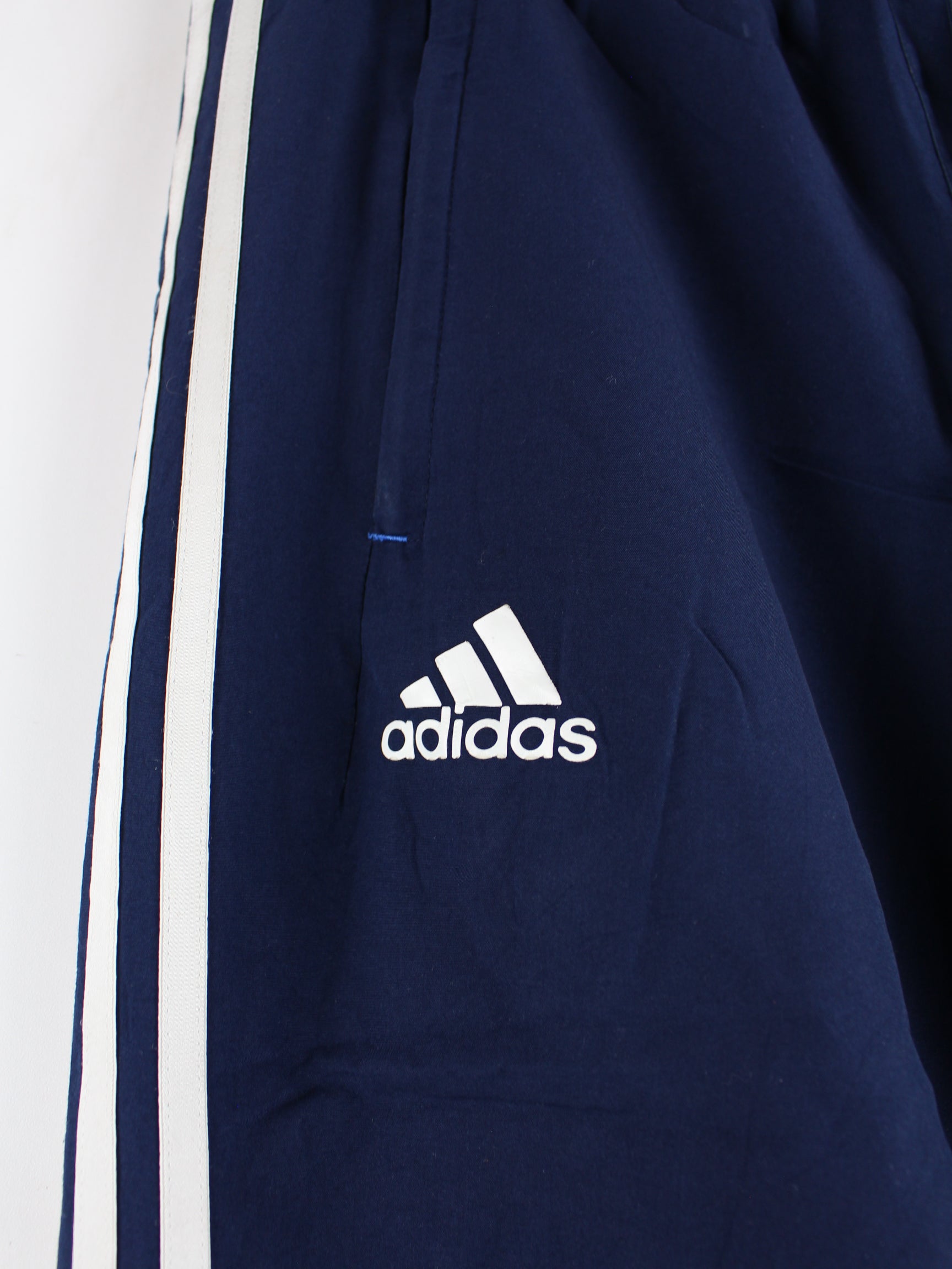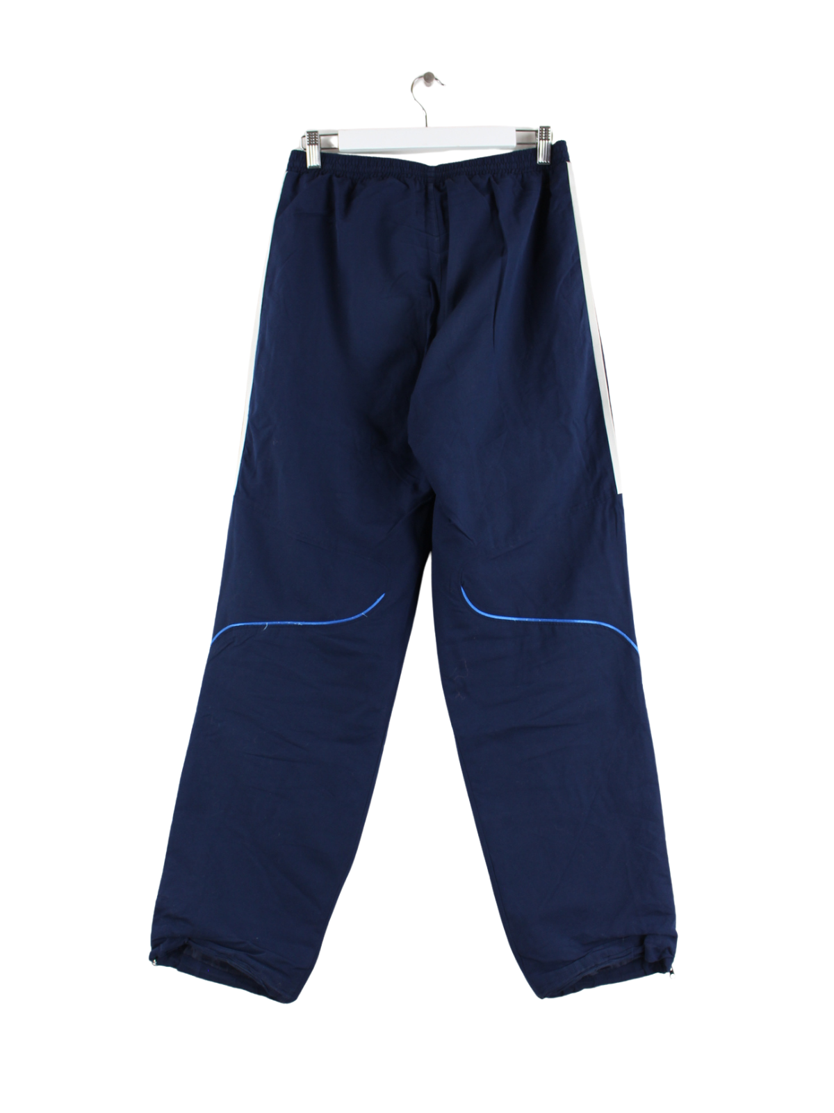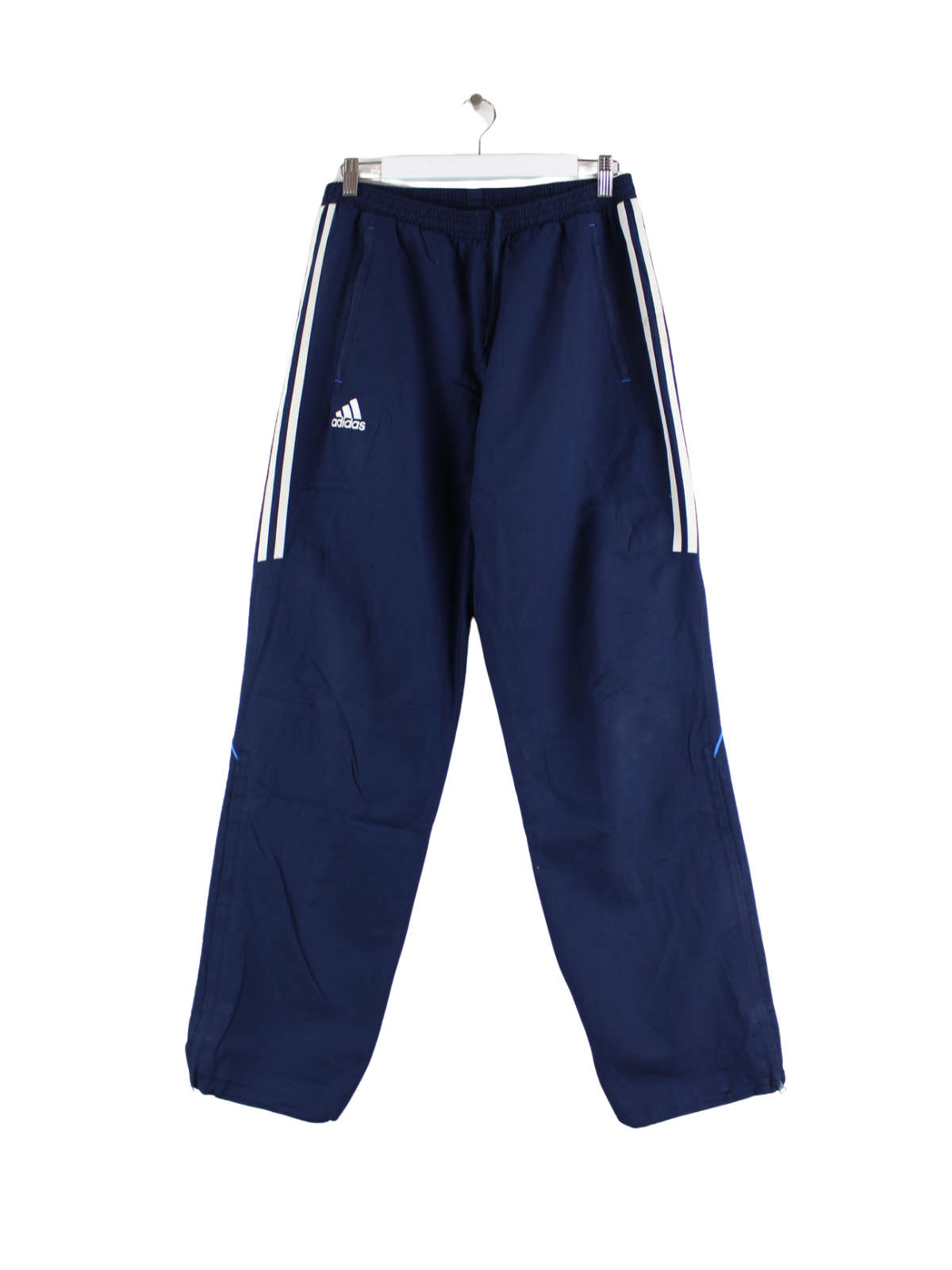 Track pants from the brand Adidas in size M. They are made of synthetic material and come in blue.
