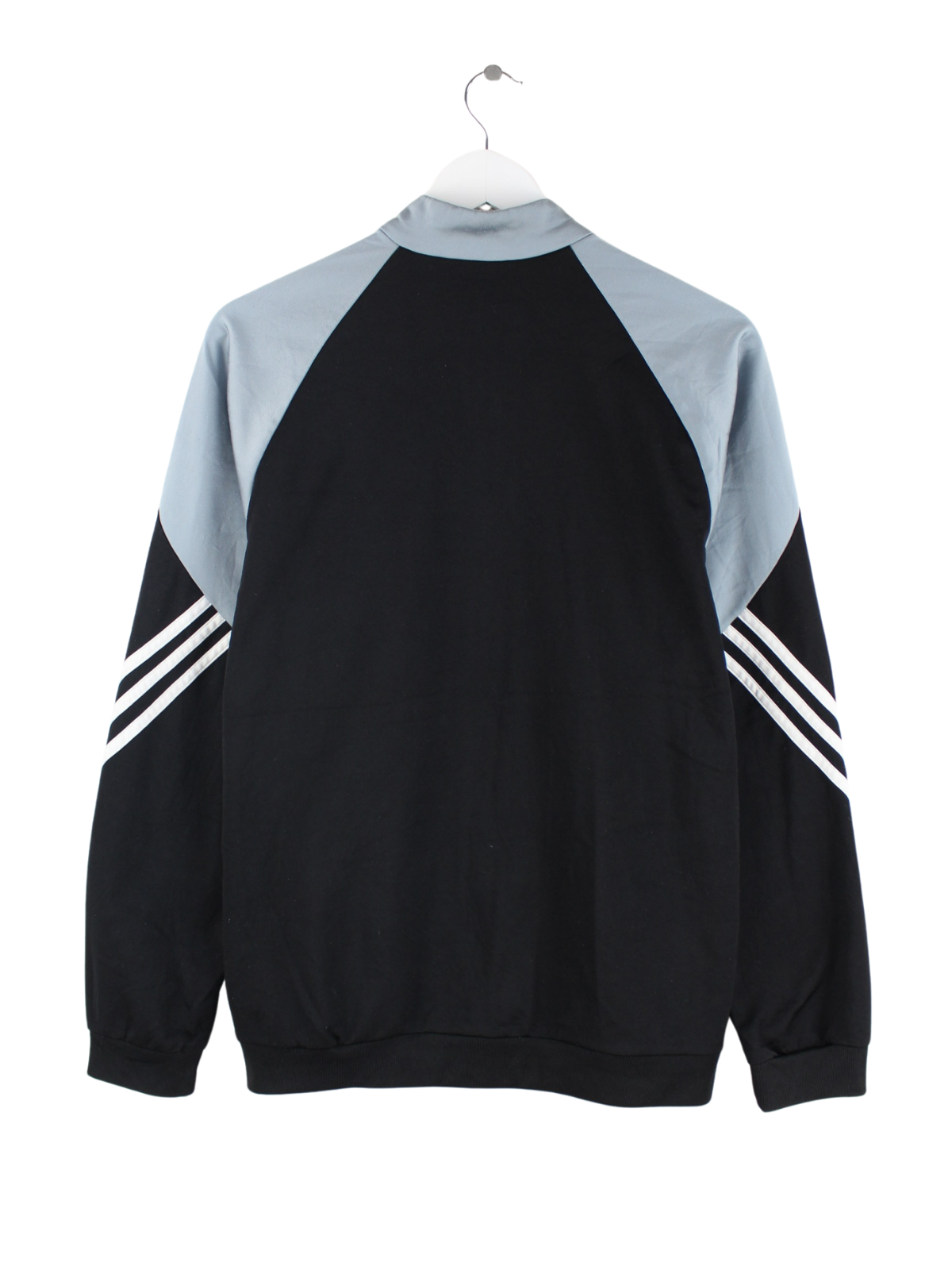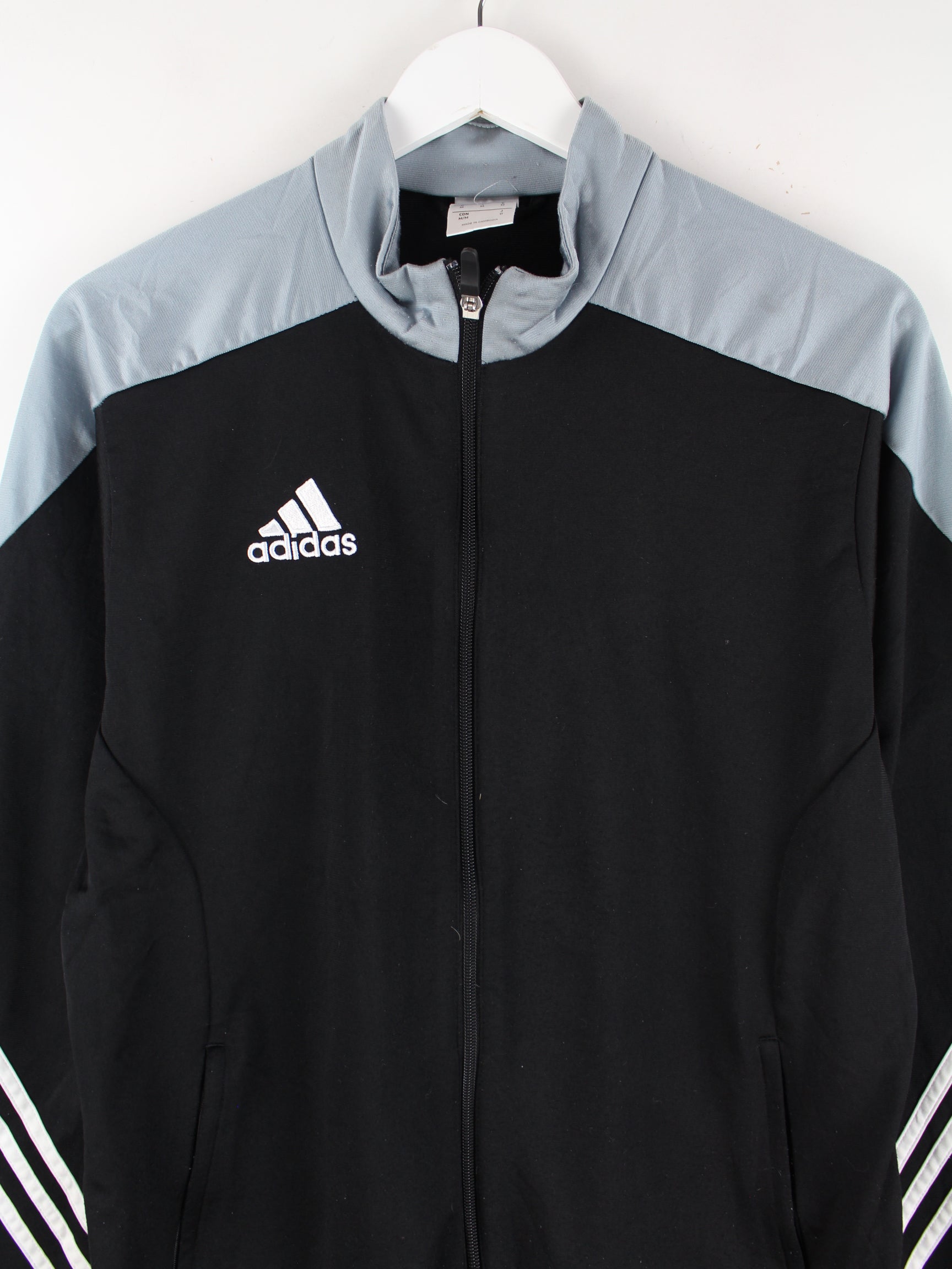 Schwarze Trainingsjacke der Brand Adidas in Größe M. Sie ist aus Synthetik produziert und in gutem Zustand zu haben.