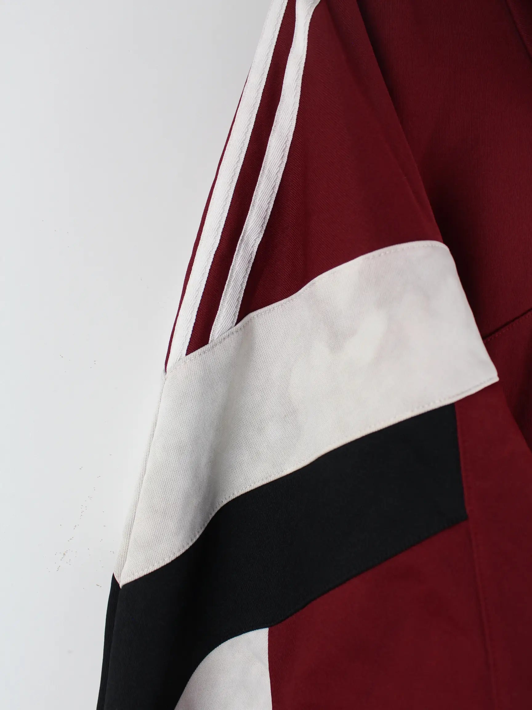 Trainingsjacke aus dem Hause Adidas in Größe XXL. Sie ist aus Synthetik gemacht und in Rot vorrätig.