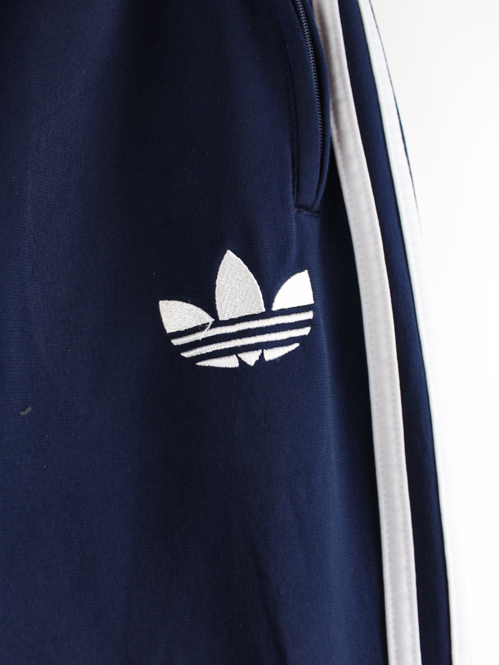 Track pants from the brand Adidas with embroidered logo in size S. They are made of synthetic material and come in blue.