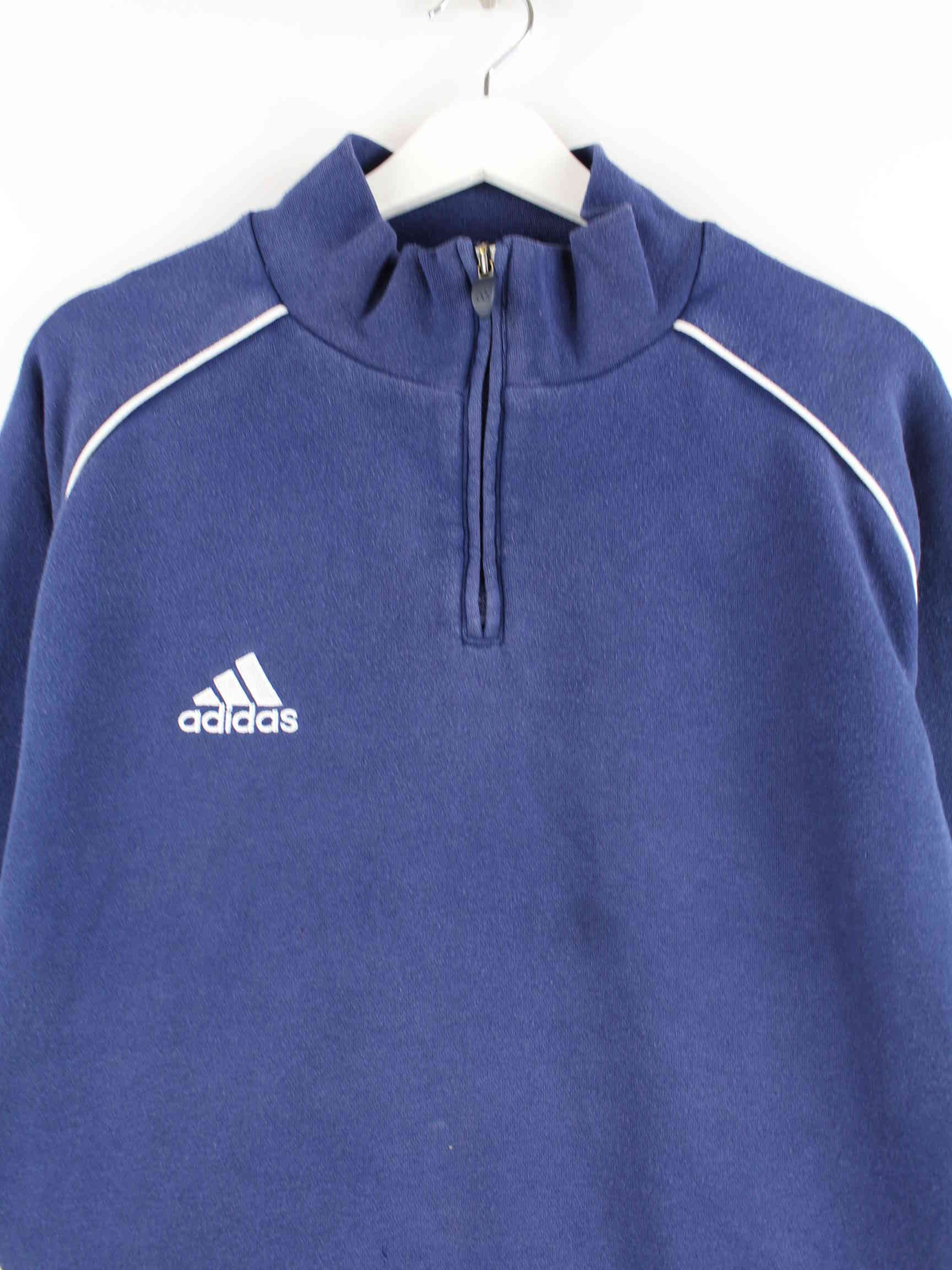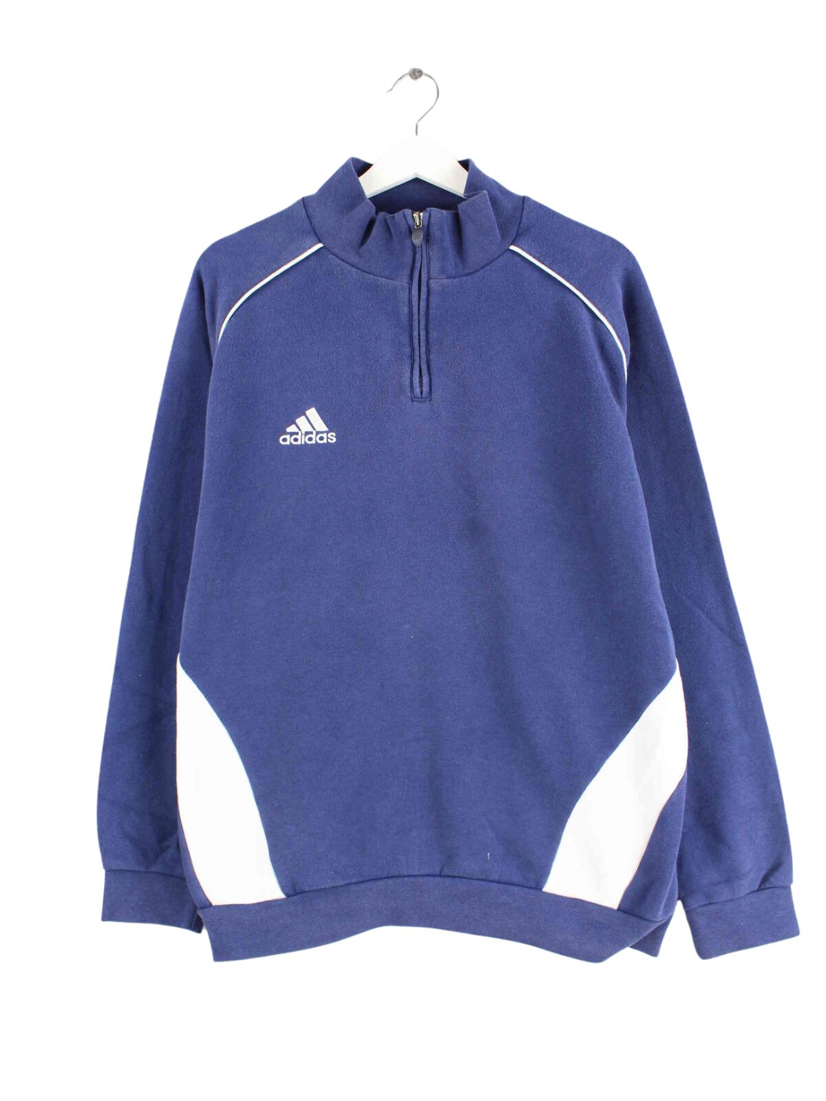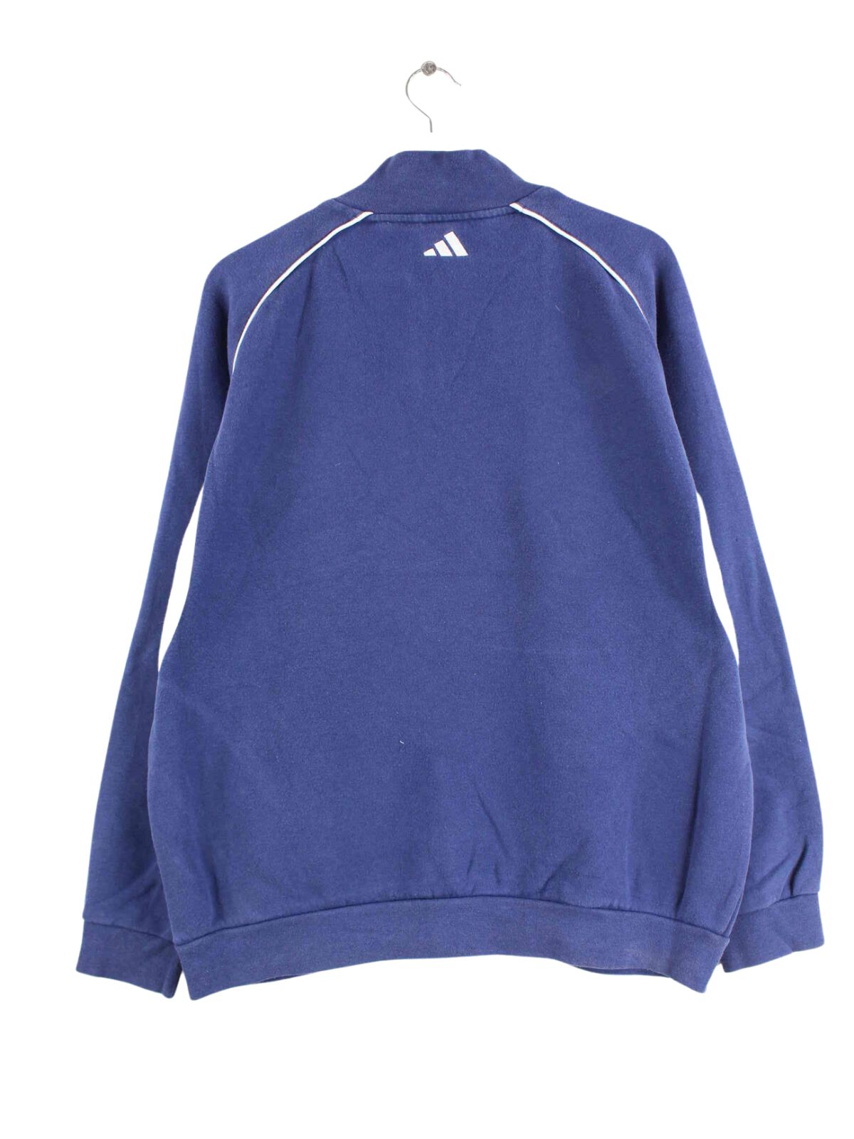 Sweater from the Adidas label with embroidery and a short zipper in size M from the beginning of the 2000s. It is made from a cotton blend and is available in blue.