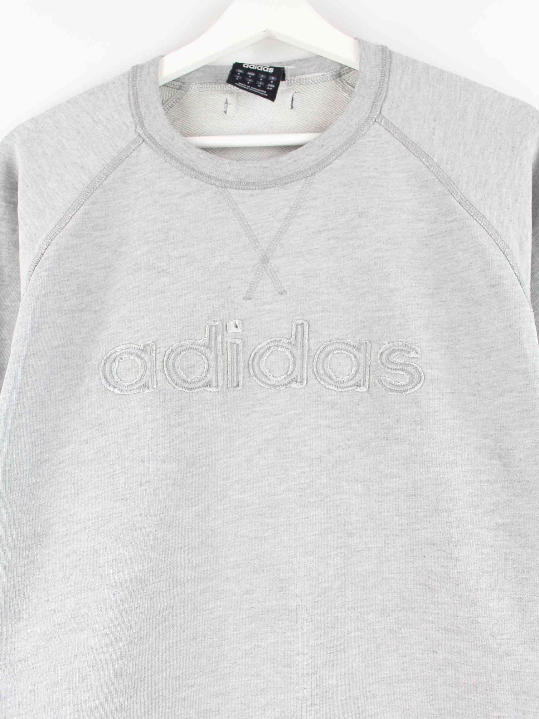 Sweater from Adidas with embroidery in size M from the early 2000s. It's made from a cotton blend and is stocked in gray.