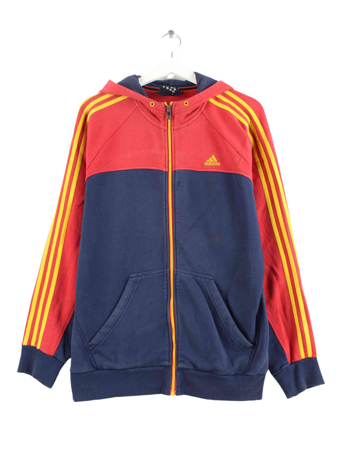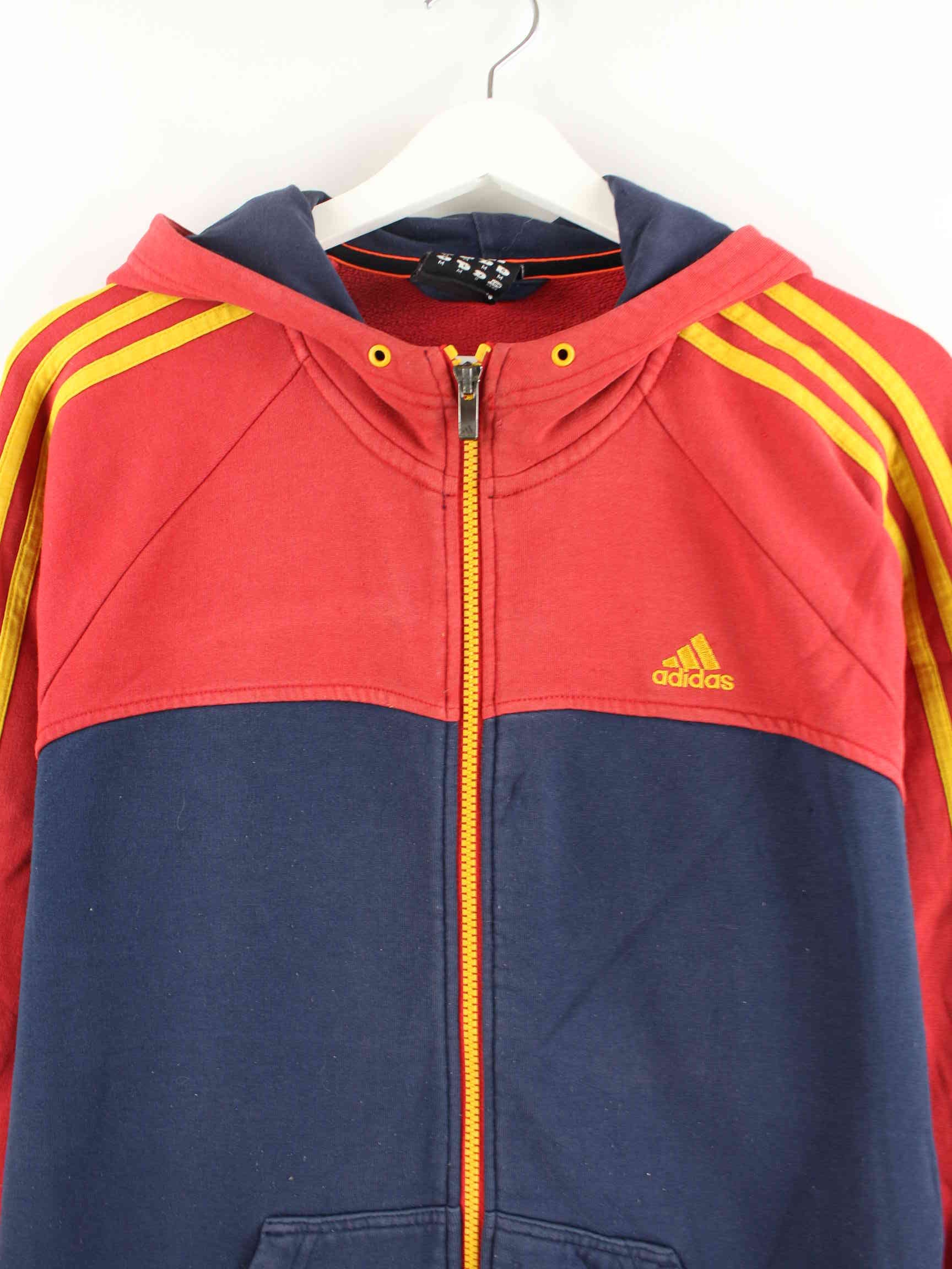 Multicolored hoodie with a full-length zip from the Adidas brand from the early 2000s in size M. It is made from a cotton blend and is on offer in good condition.