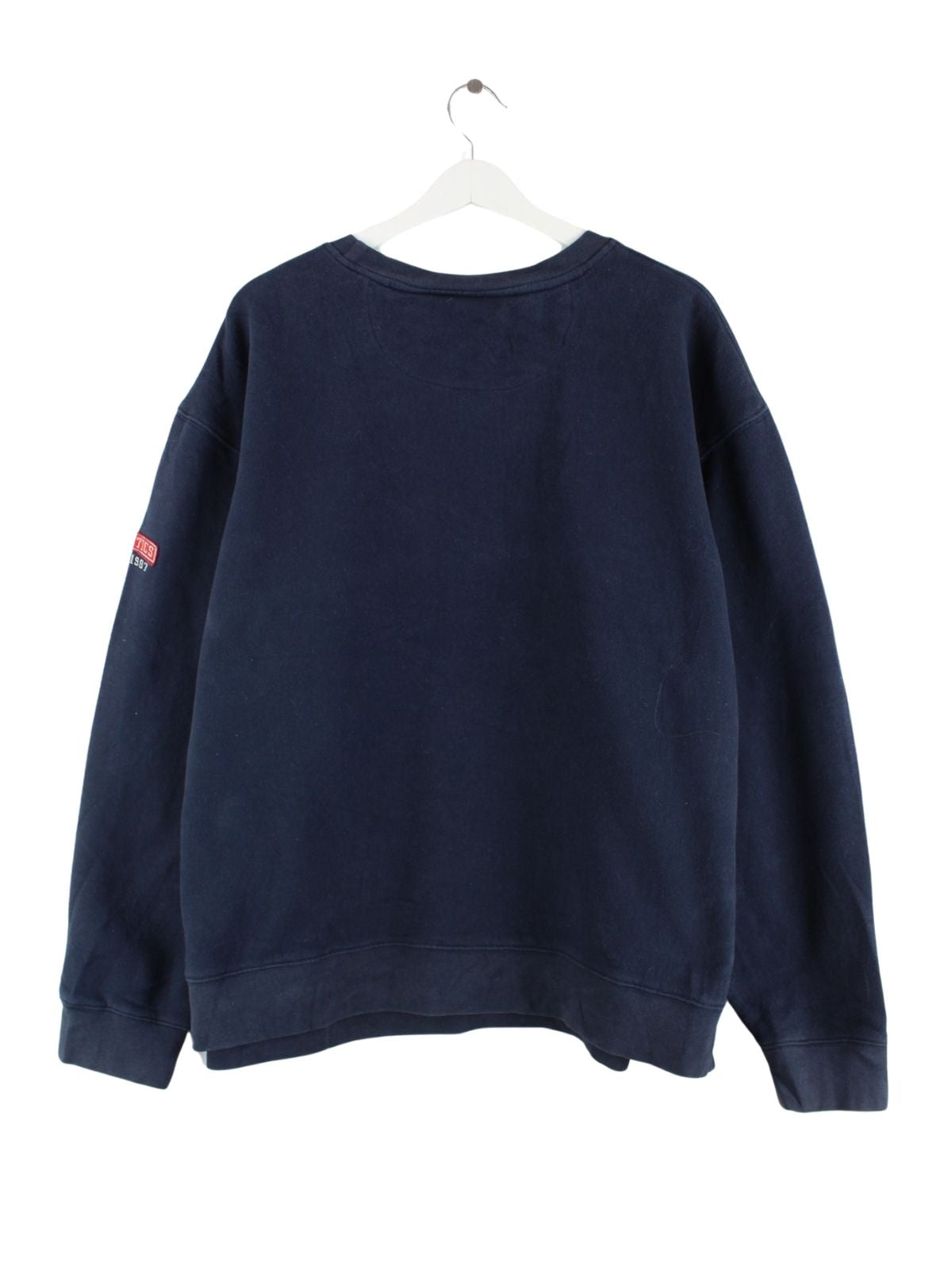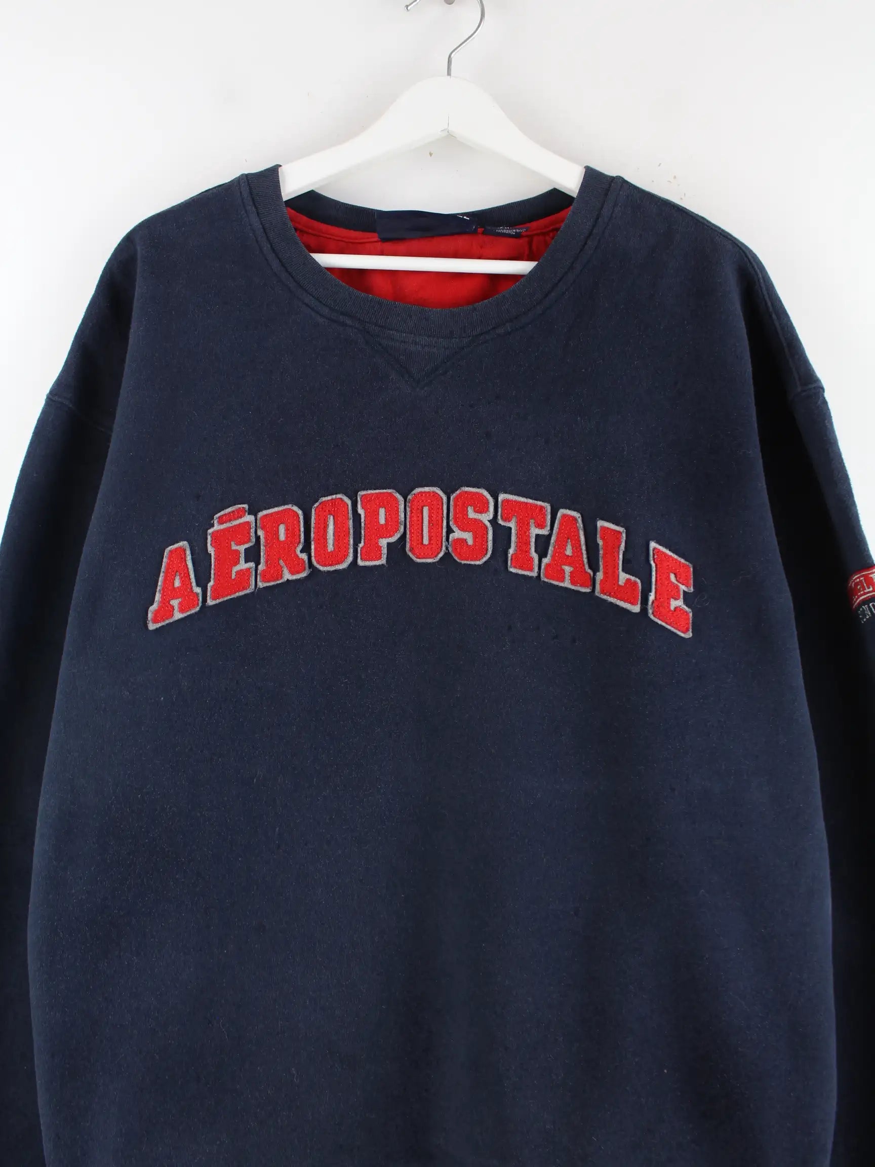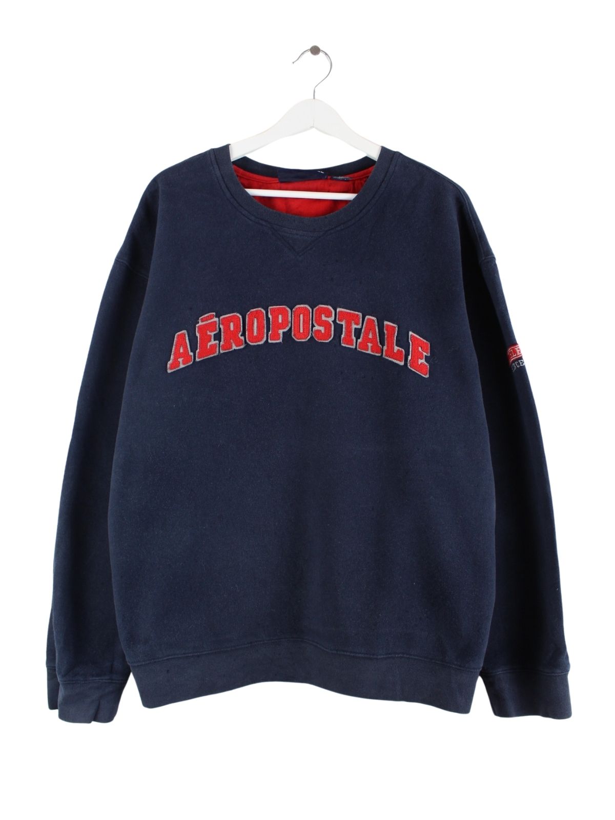 Sweater der Marke Aeropostale mit Stickereien in Größe XL. Er ist aus einer Baumwollmischung hergestellt und in Blau zu bekommen.