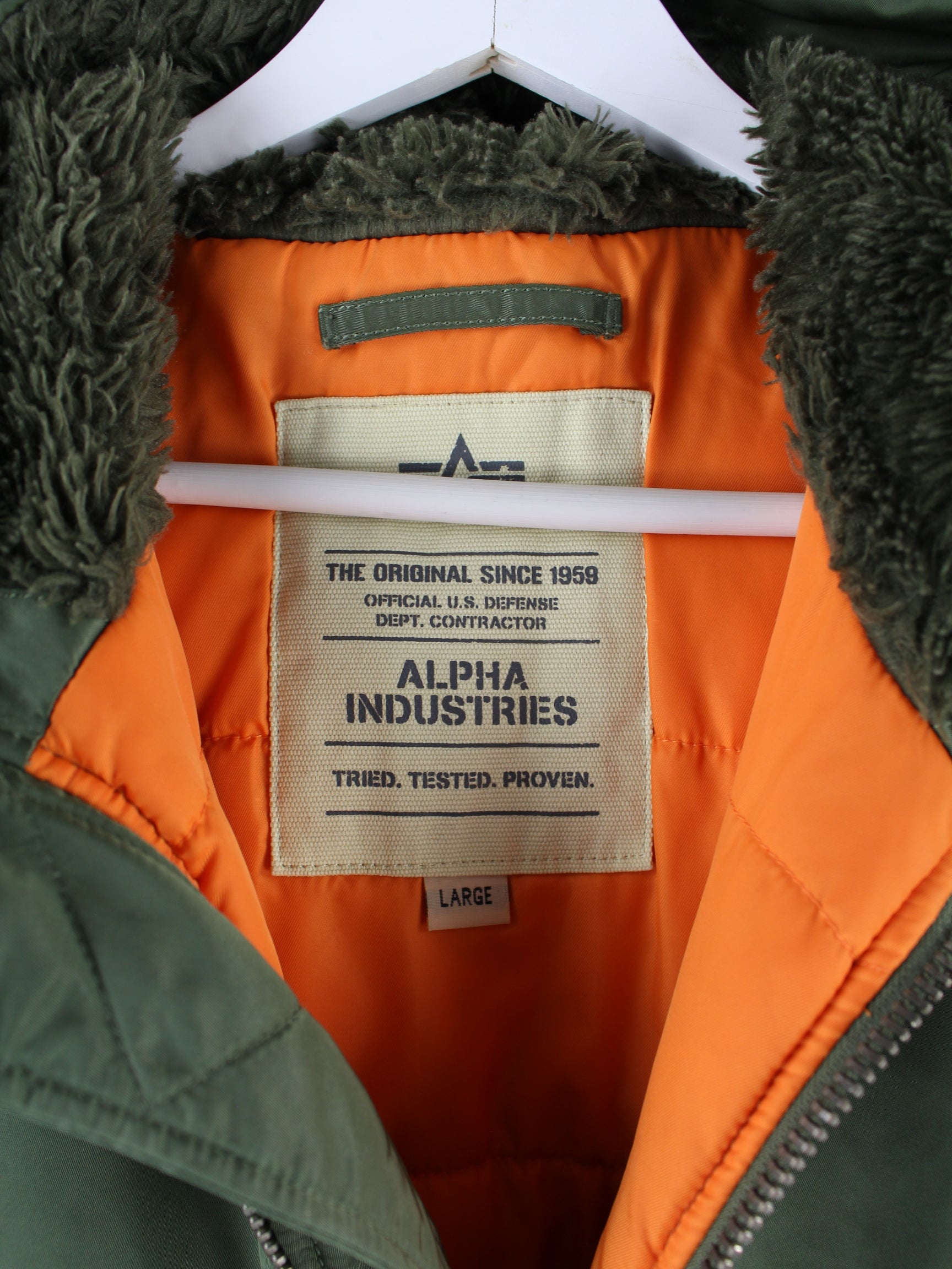 Jacke der Marke Alpha Industries in Größe L. Sie ist aus Synthetik produziert und in Grün im Angebot.