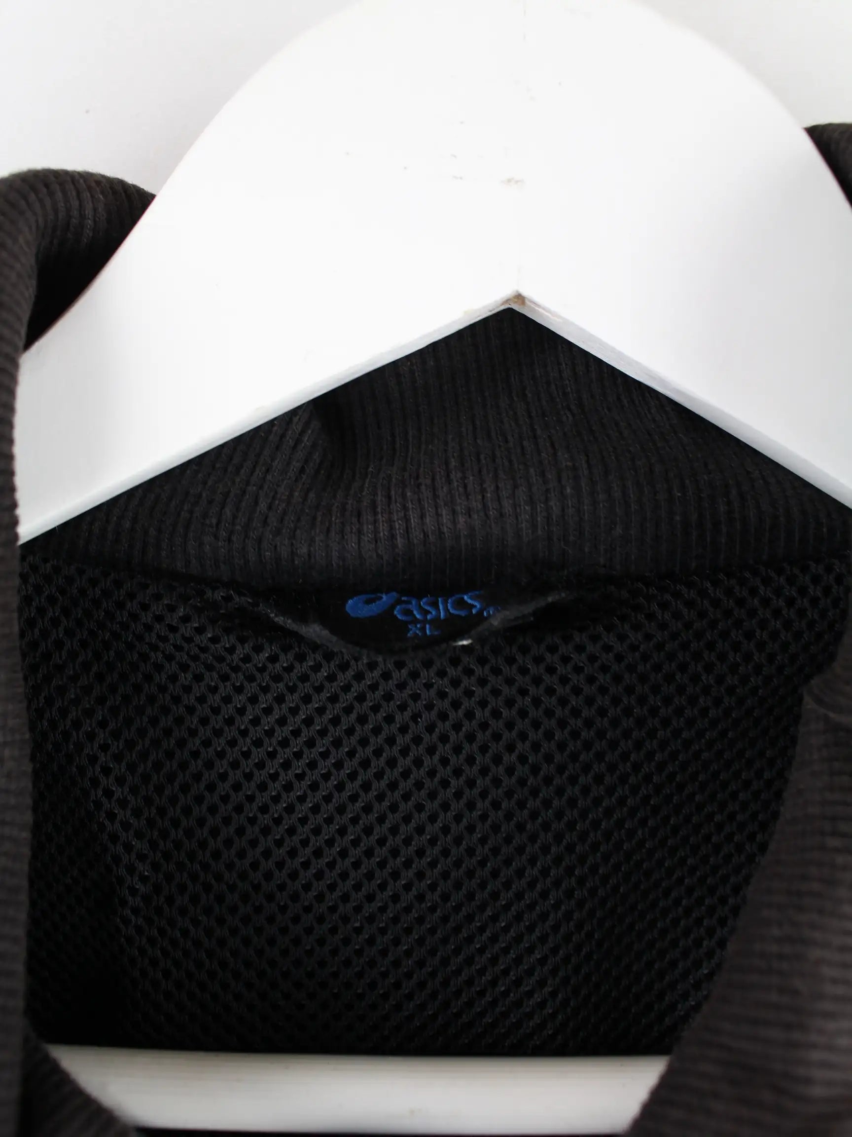 Leichte Jacke von Asics mit Stick in Größe XL. Sie ist aus Synthetik produziert und in Schwarz lieferbar.