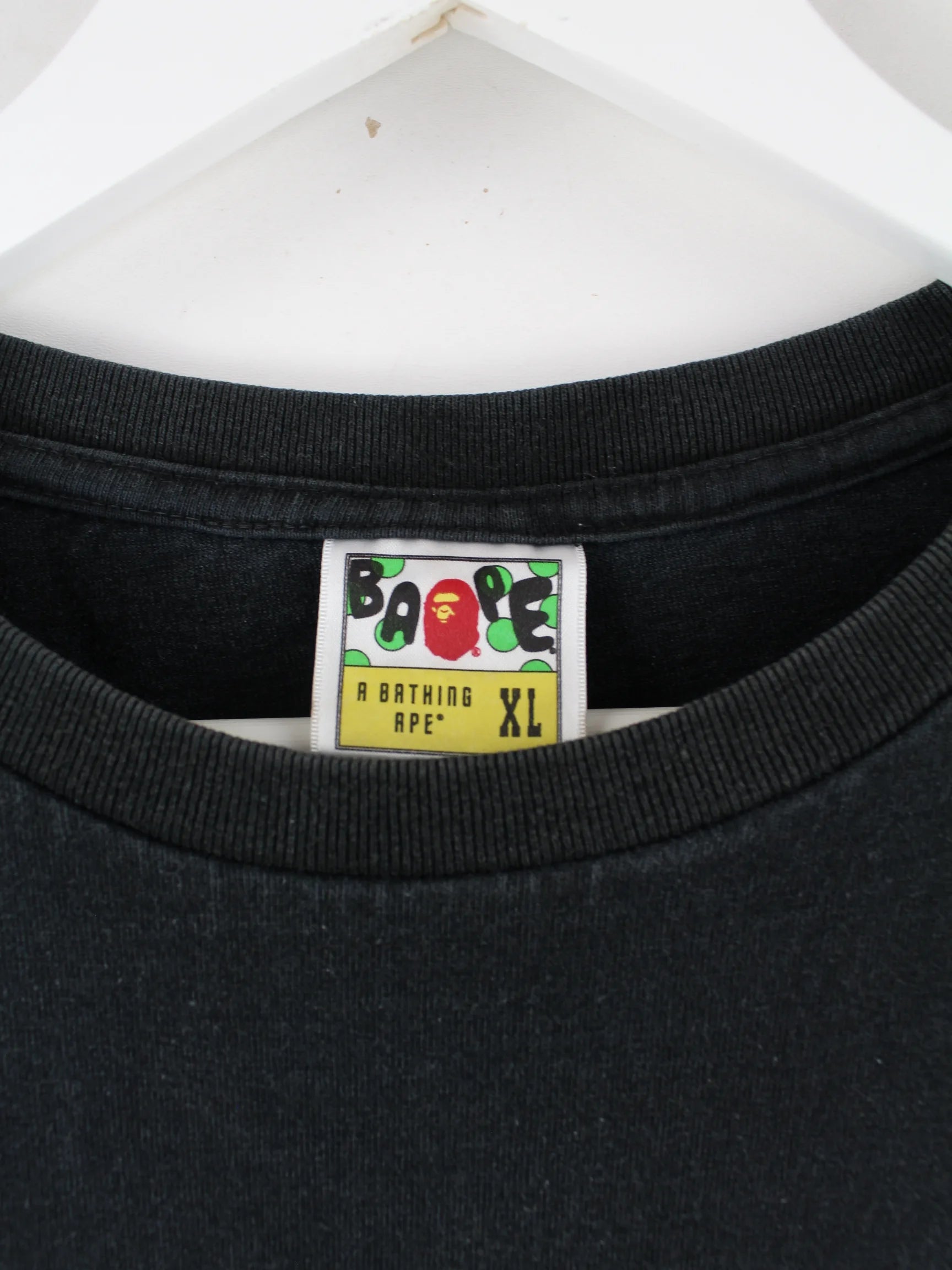 T-Shirt aus dem Hause Bape in Größe XL. Es ist aus einer Baumwollmischung und in Schwarz vorrätig. Mit chiquem undefined Print.