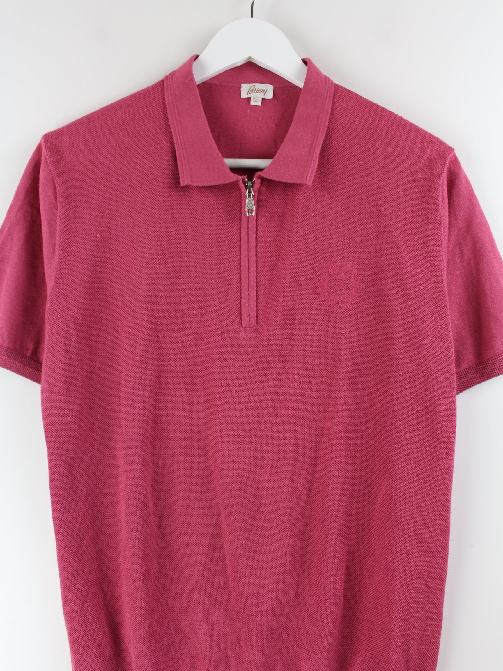 Polo shirt from the Brioni brand with a half zip in size S. It is made of silk and is available in red.