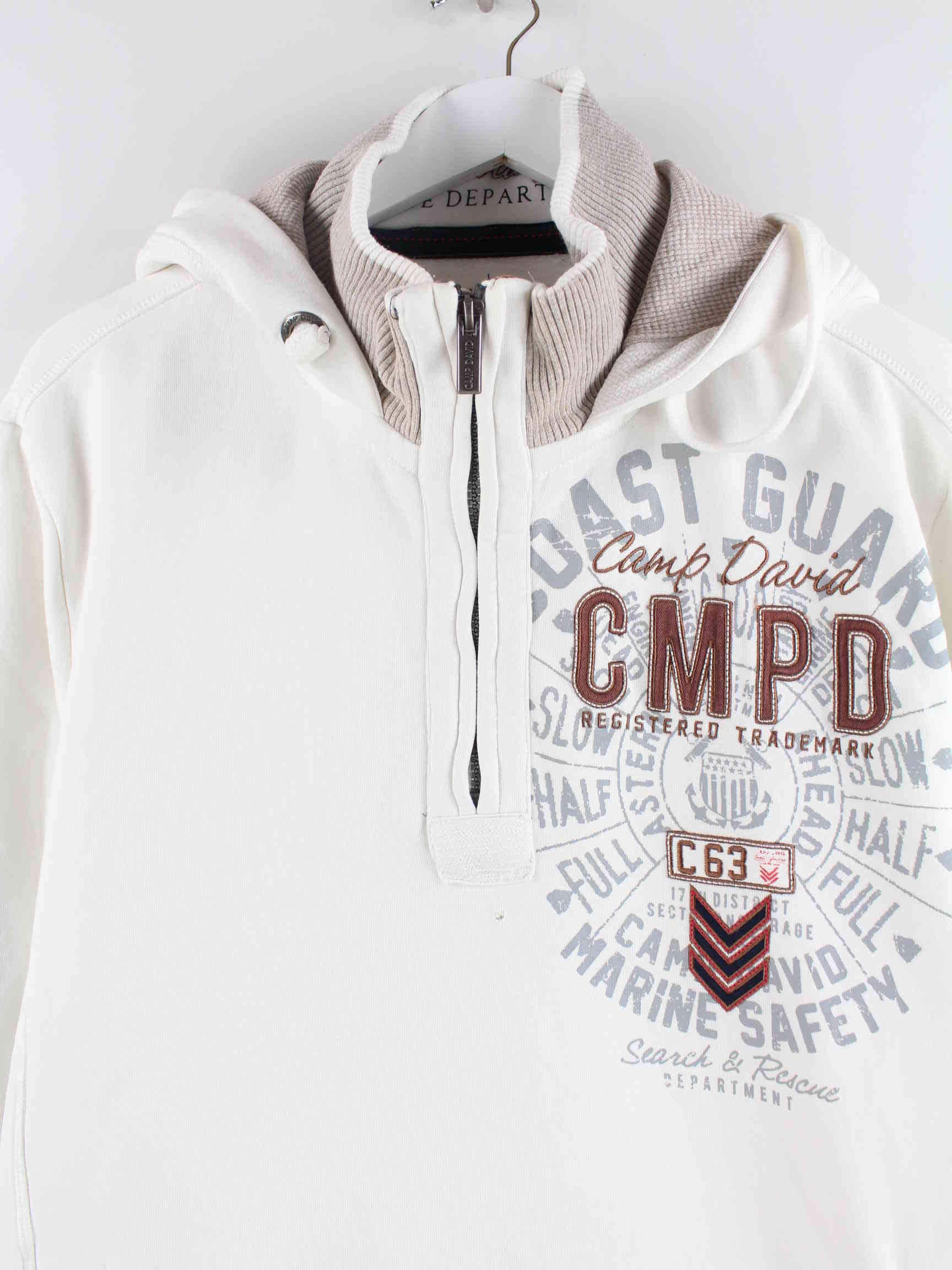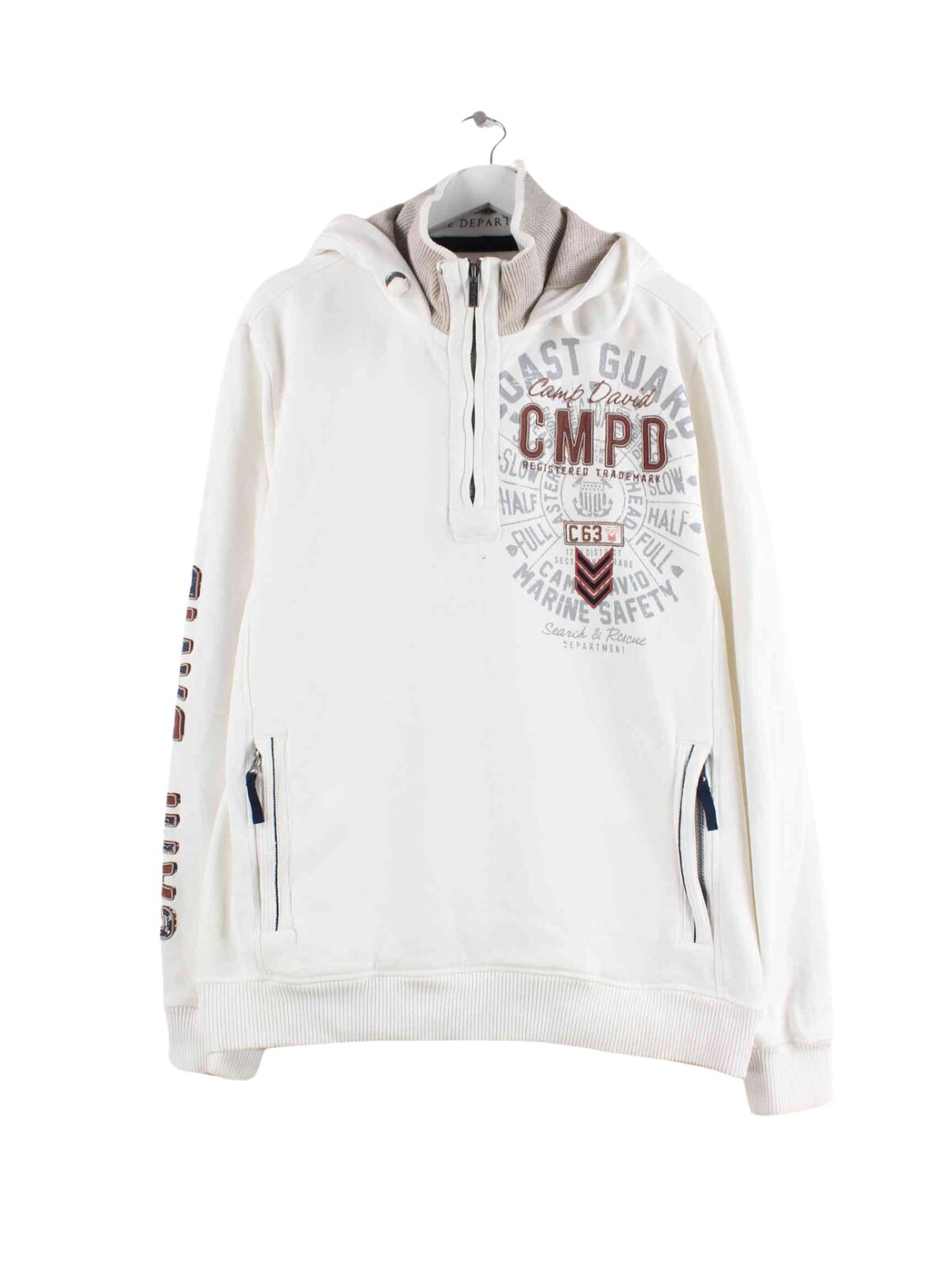 White half-zip hoodie from Camp David in size L. It is made of a cotton blend and is in good condition.