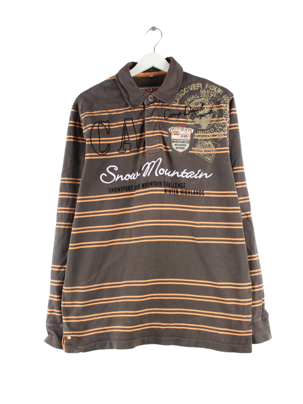 Brown sweater with embroidery from the label Camp David from the early 2000s in size L. It is made of a cotton blend and is in very good condition.