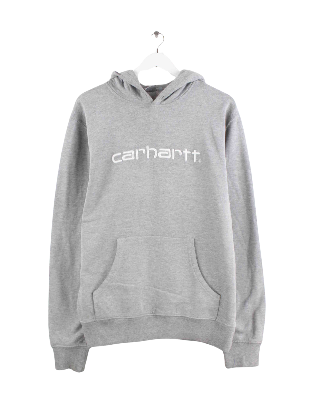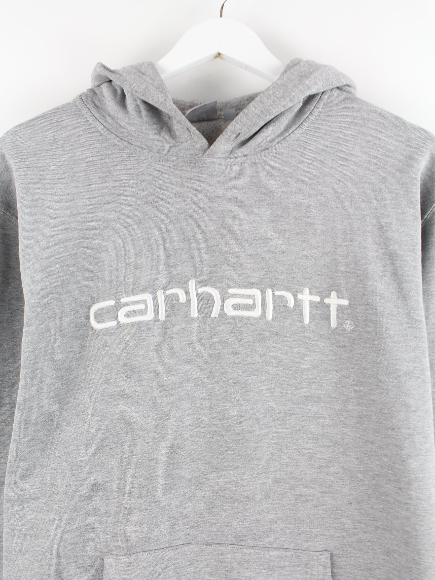 Hoodie from Carhartt with embroidered logo in size M. It is made of a cotton blend and is available in gray.