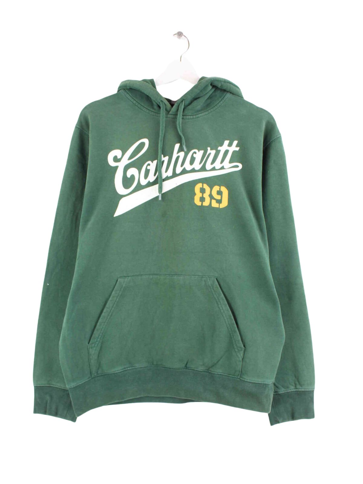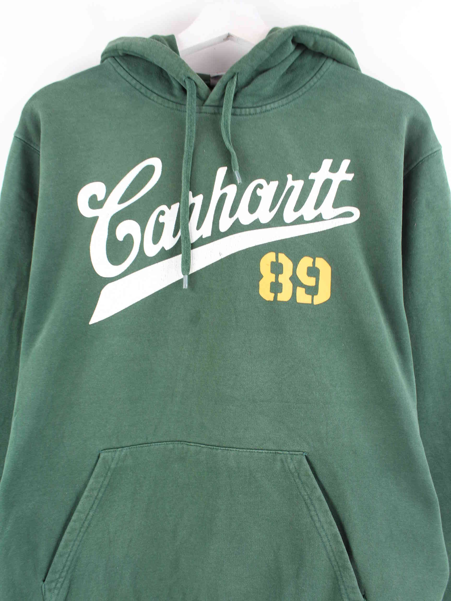 Green hoodie from the Carhartt brand from the early 2000s in size M. It is made from a cotton blend and is on offer in good condition. With a chic y2k print.