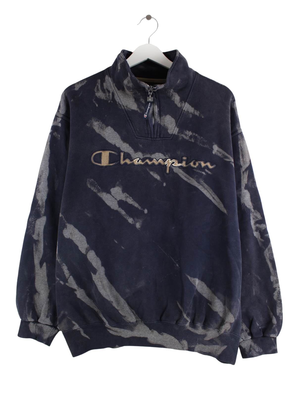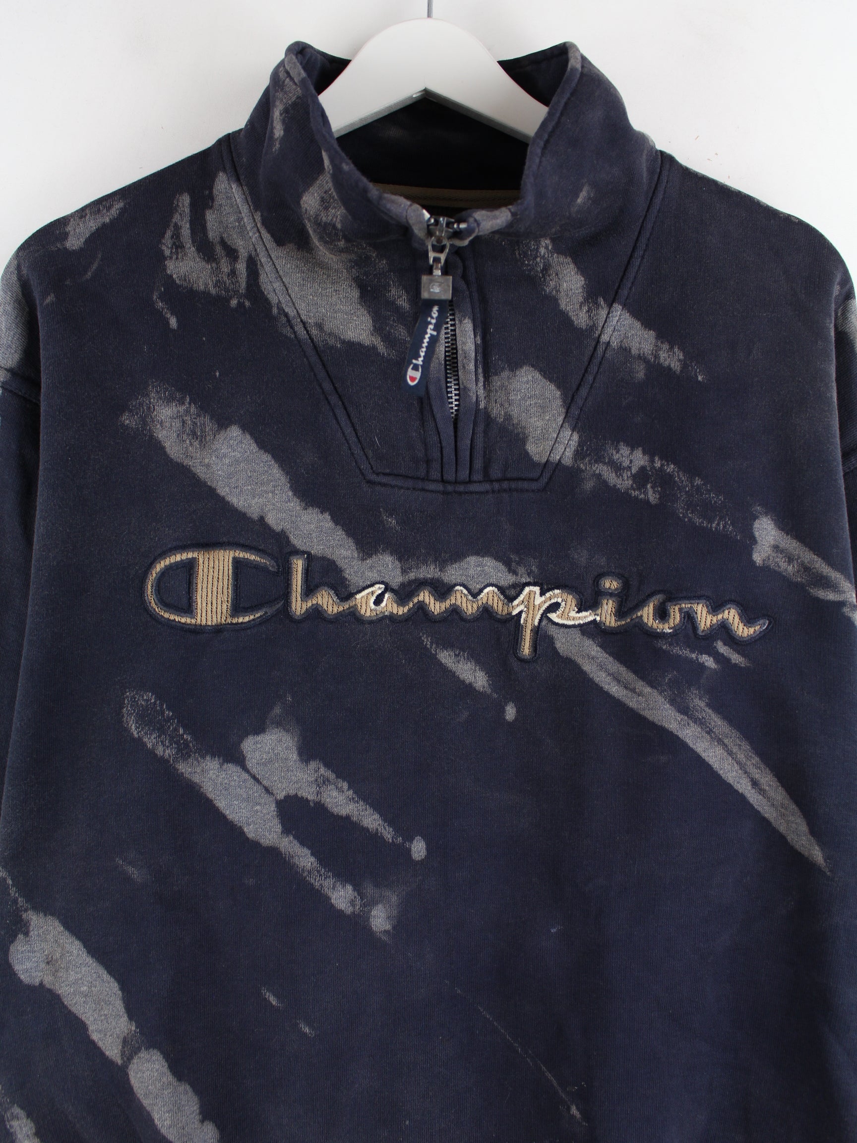 Champion 00s Embroidered Tie Dye Half Zip Sweater Grau L