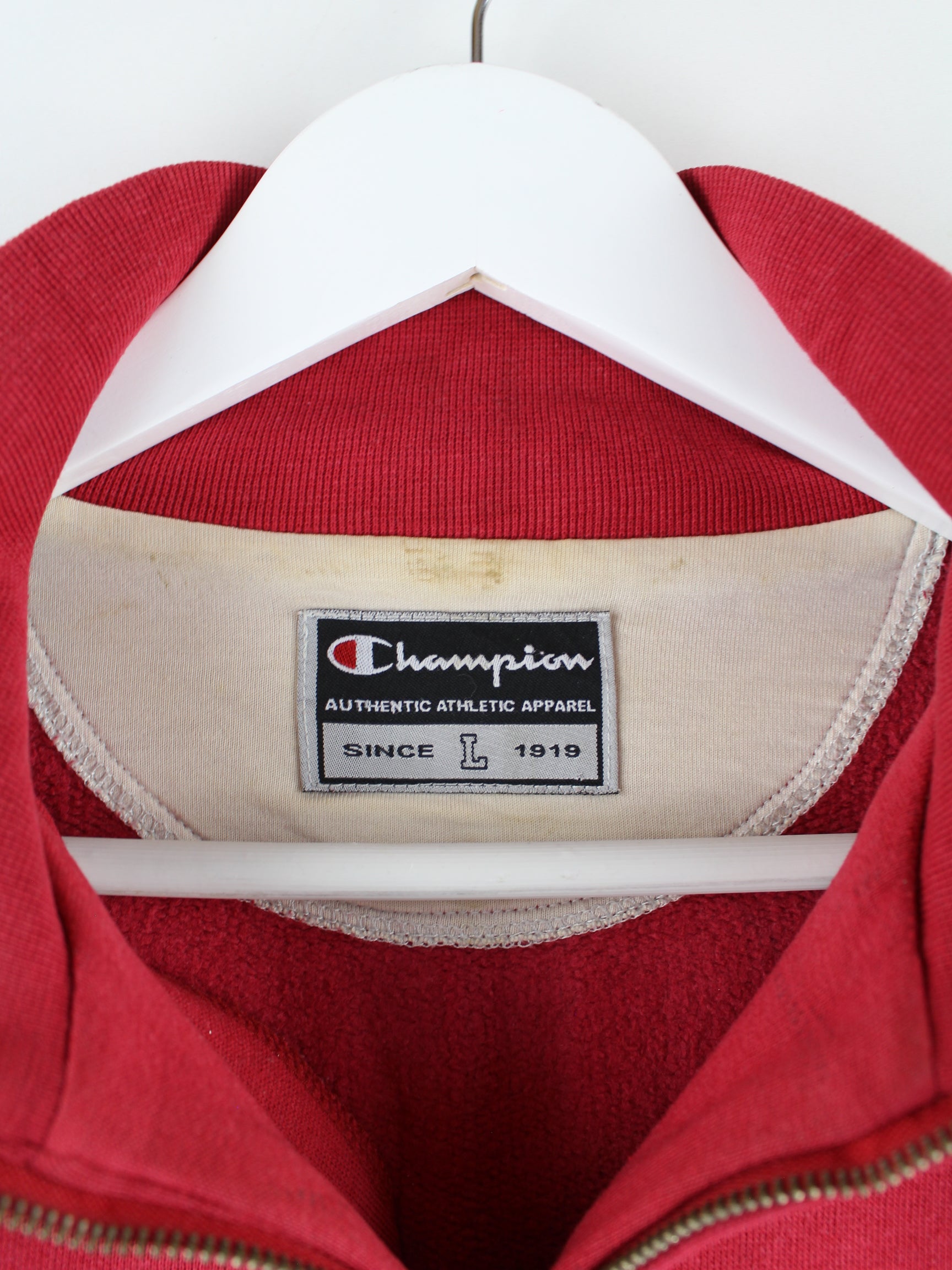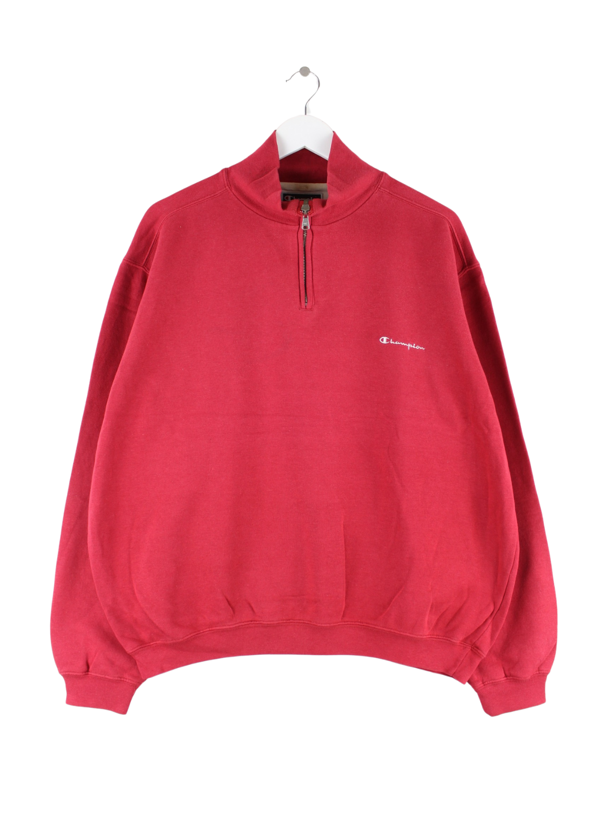 Red sweater with short zip from the brand Champion in size L. It is made of a cotton blend and is in good condition.
