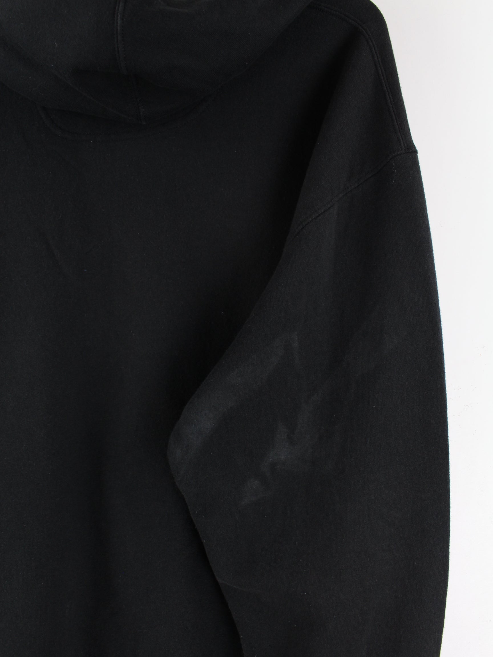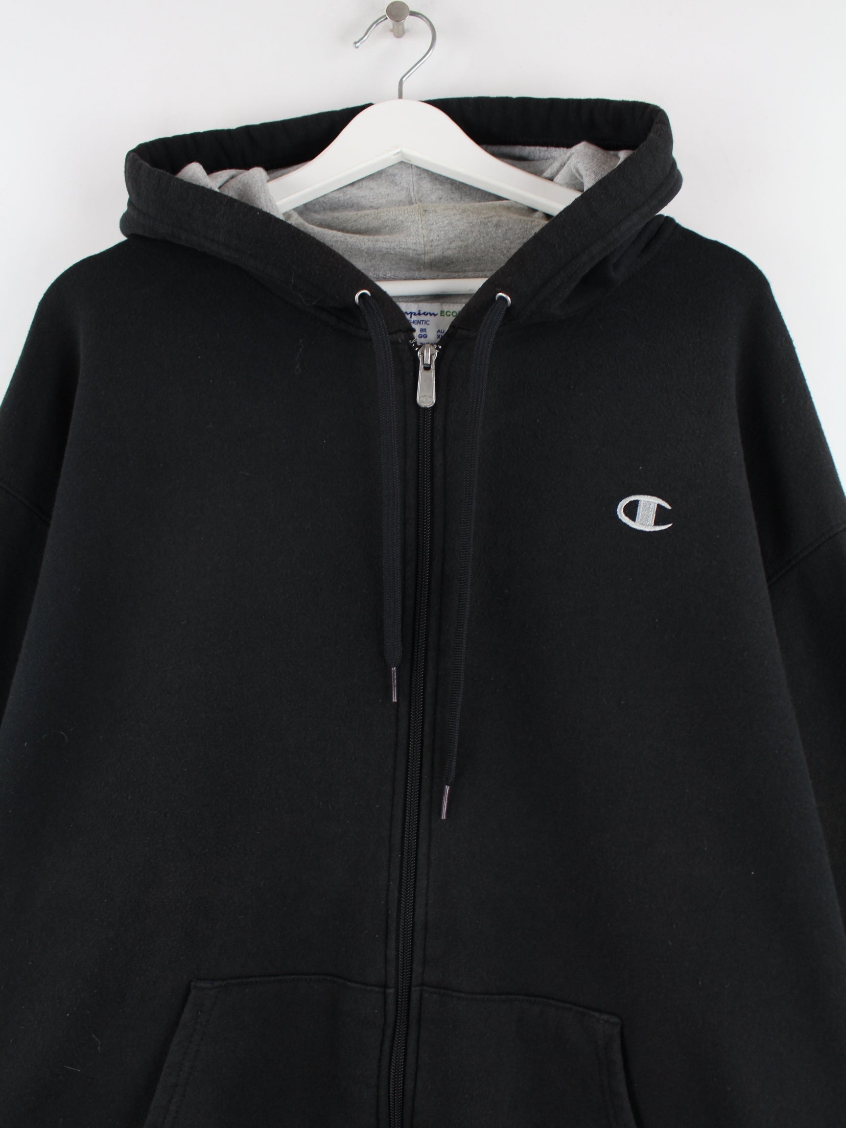 Schwarzer Hoodie mit Reißverschluß der Marke Champion in Größe XL. Er ist aus einer Baumwollmischung gemacht. Den Zustand würden wir als 'In Ordnung' bezeichnen (vergl. Bilder).