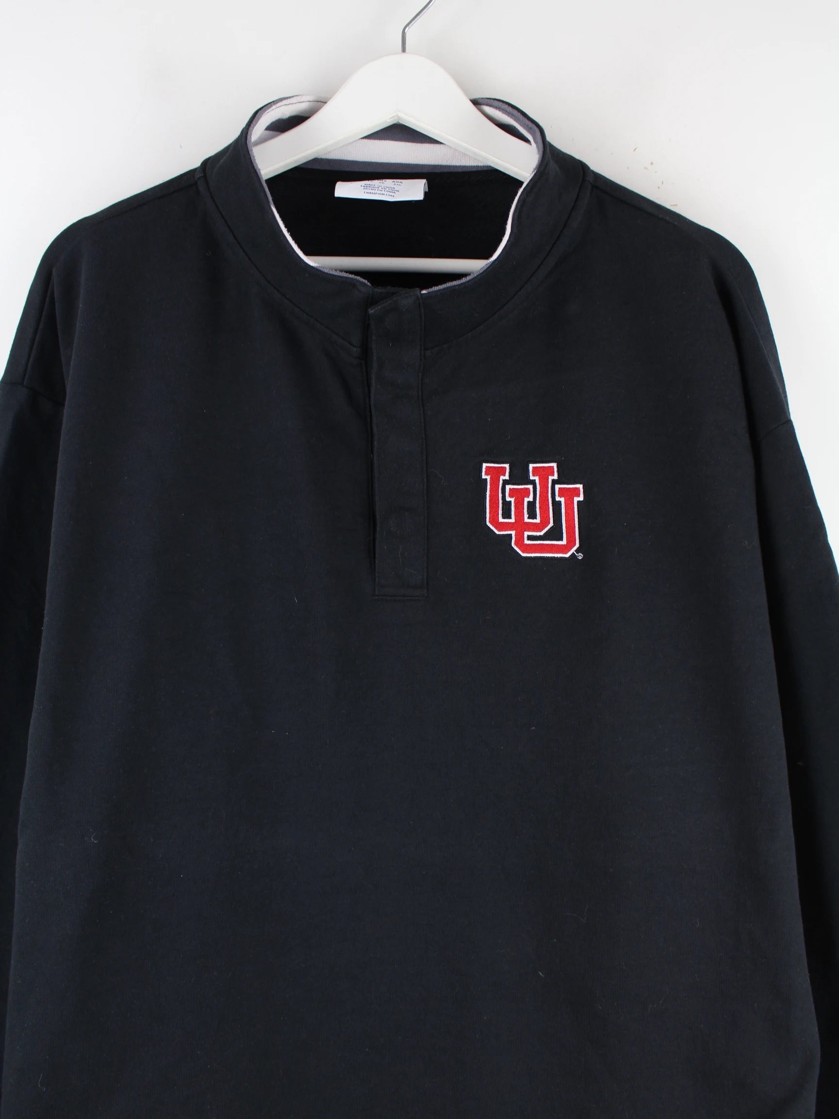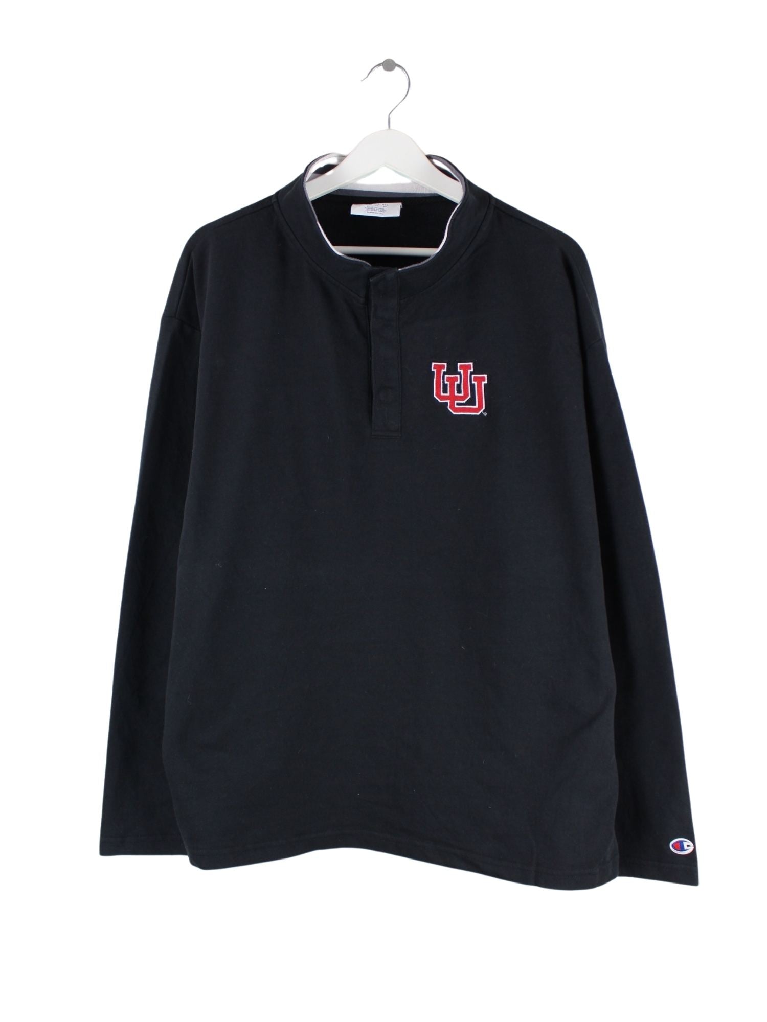 Schwarzer Sweater mit gestickten Motiven des Labels Champion in Größe XL. Er ist aus einer Baumwollmischung gemacht und in sehr gutem Zustand lieferbar.