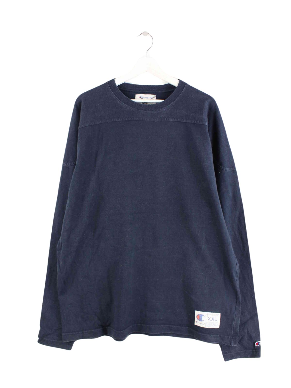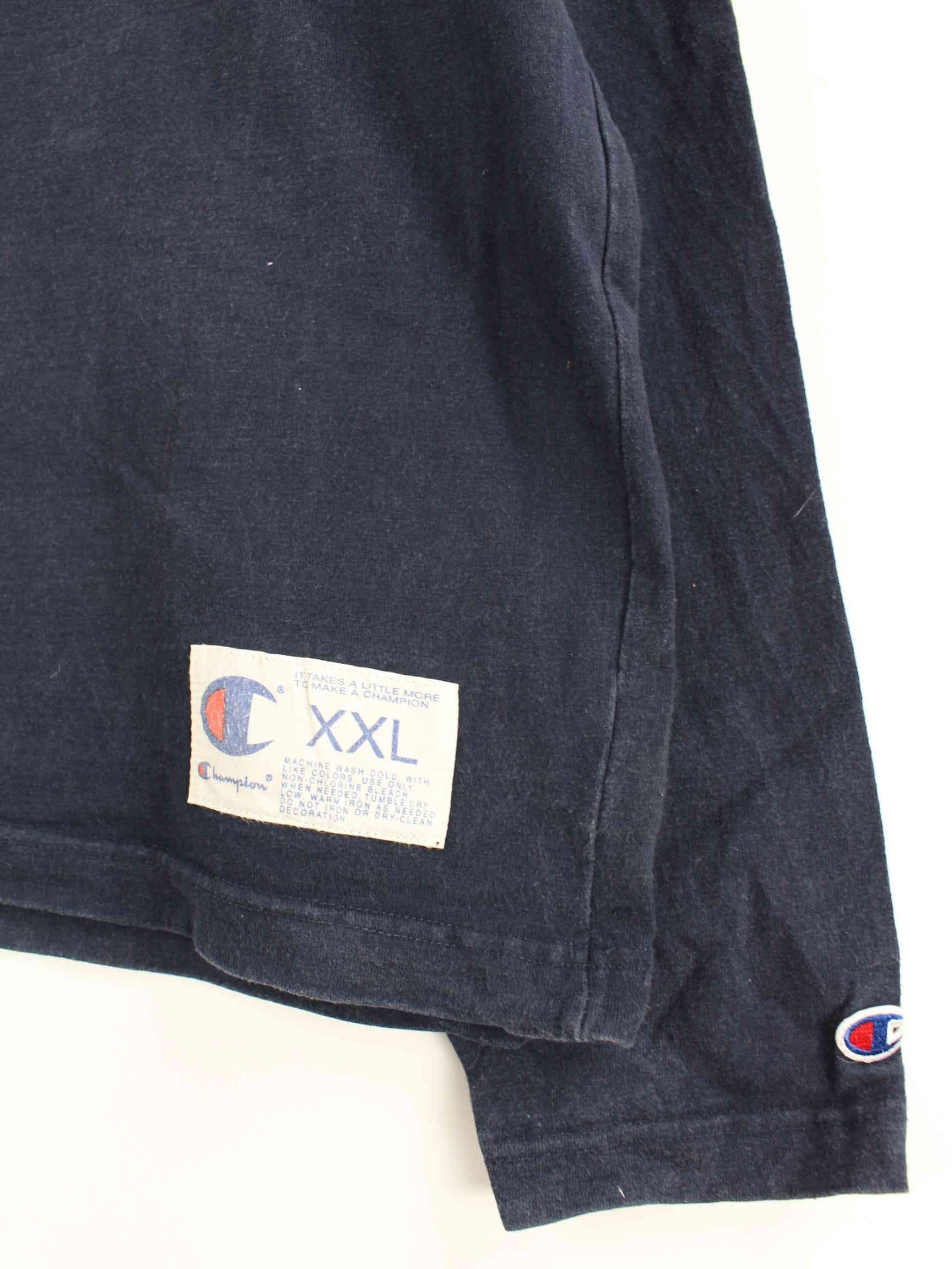 Blue sweater from the Champion brand from the early 2000s in size 3XL. It is made from a cotton blend and is in very good condition in stock.
