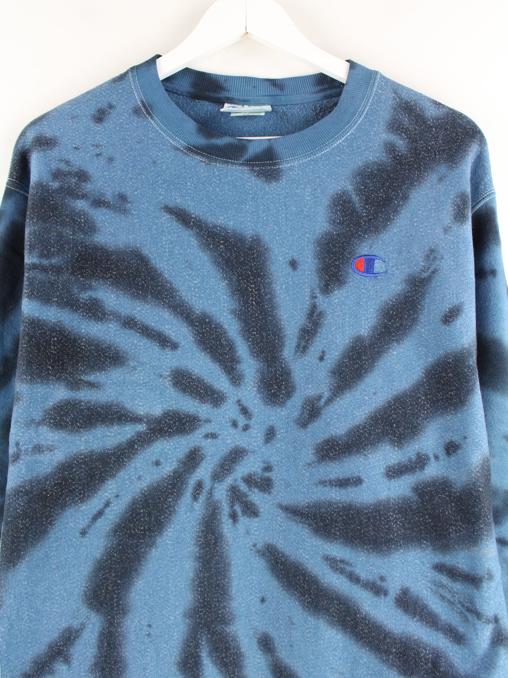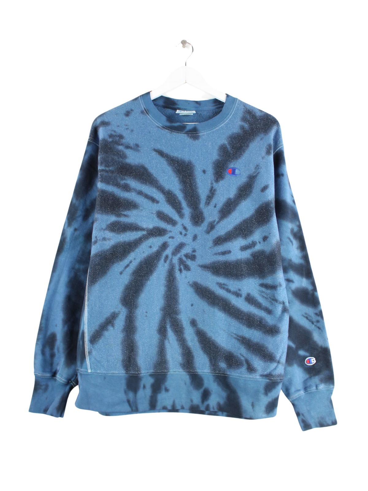 Champion y2k Reverse Weave Tie Dye Sweater Blue L